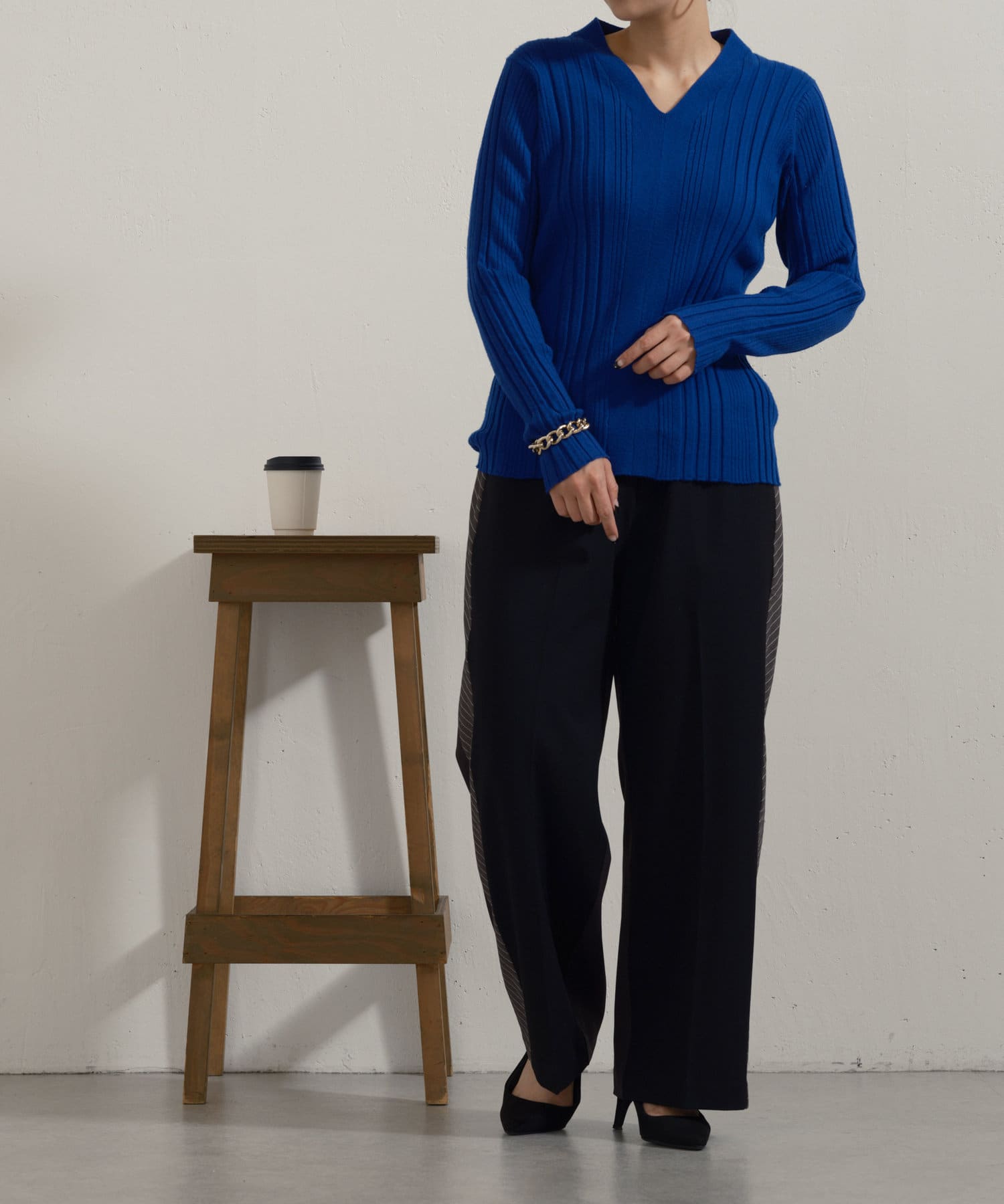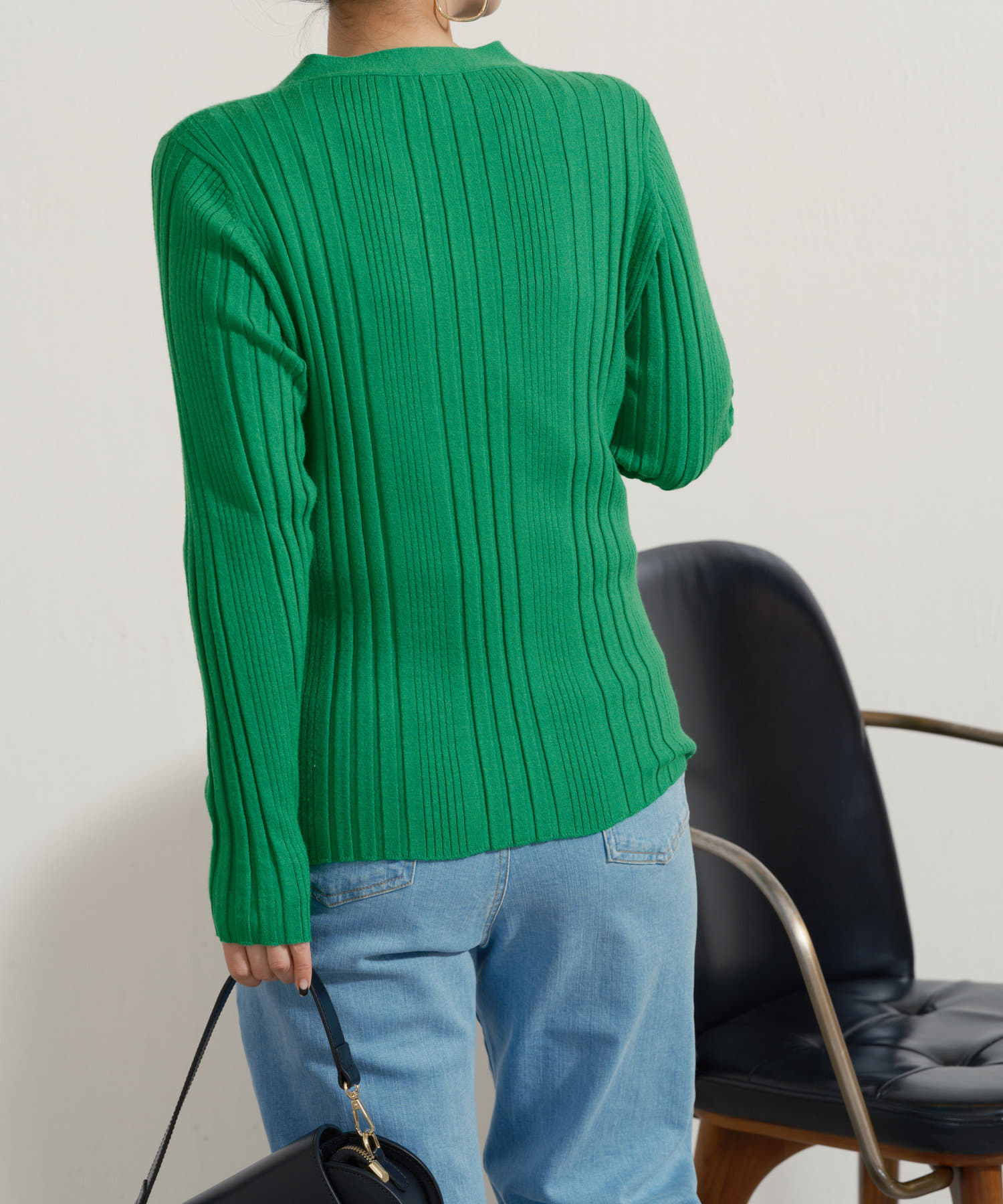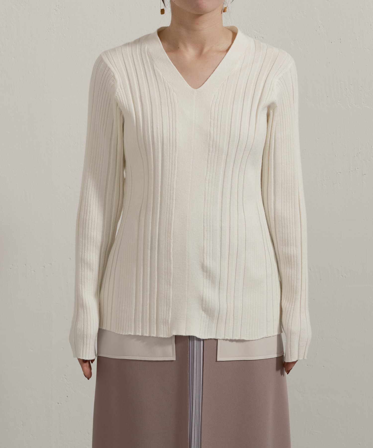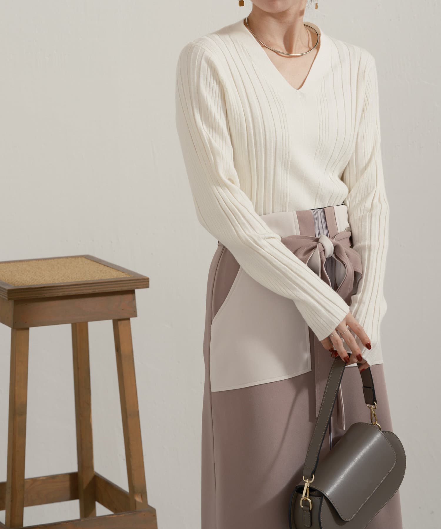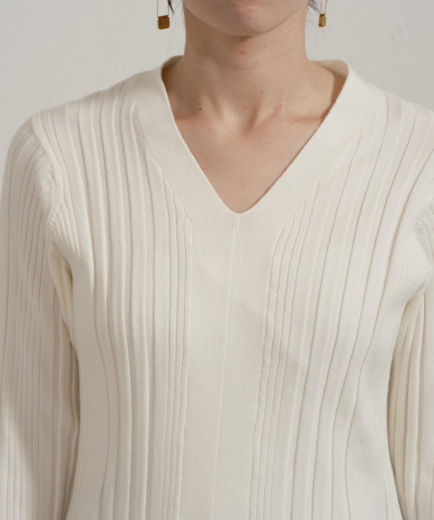 ・アウターの中に着込んでも着ぶくれしにくく、一枚持っておくと万能アイテムリブニット。