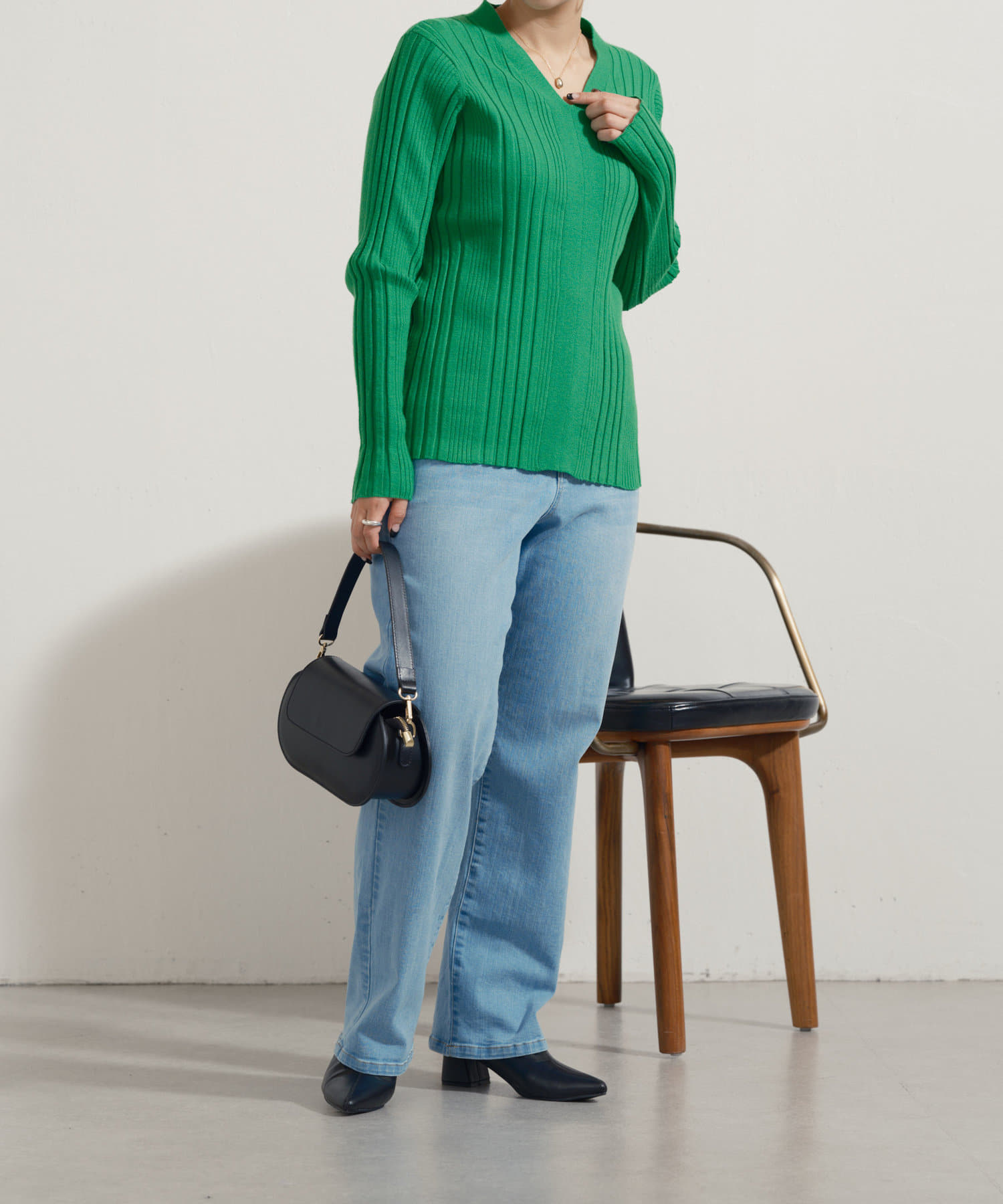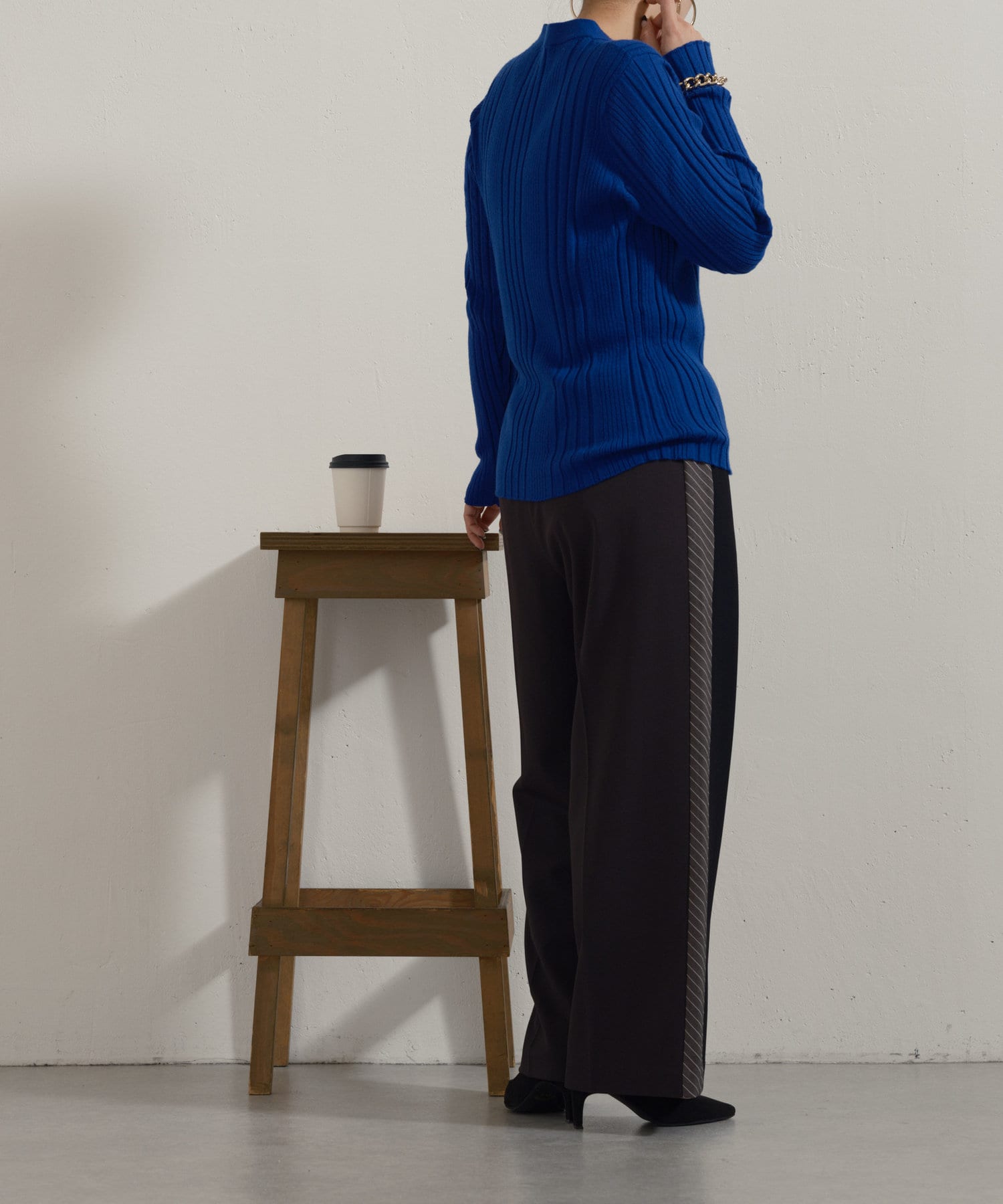 ・幅の違うリブが細見え効果に、一枚で映えるデザイン◎