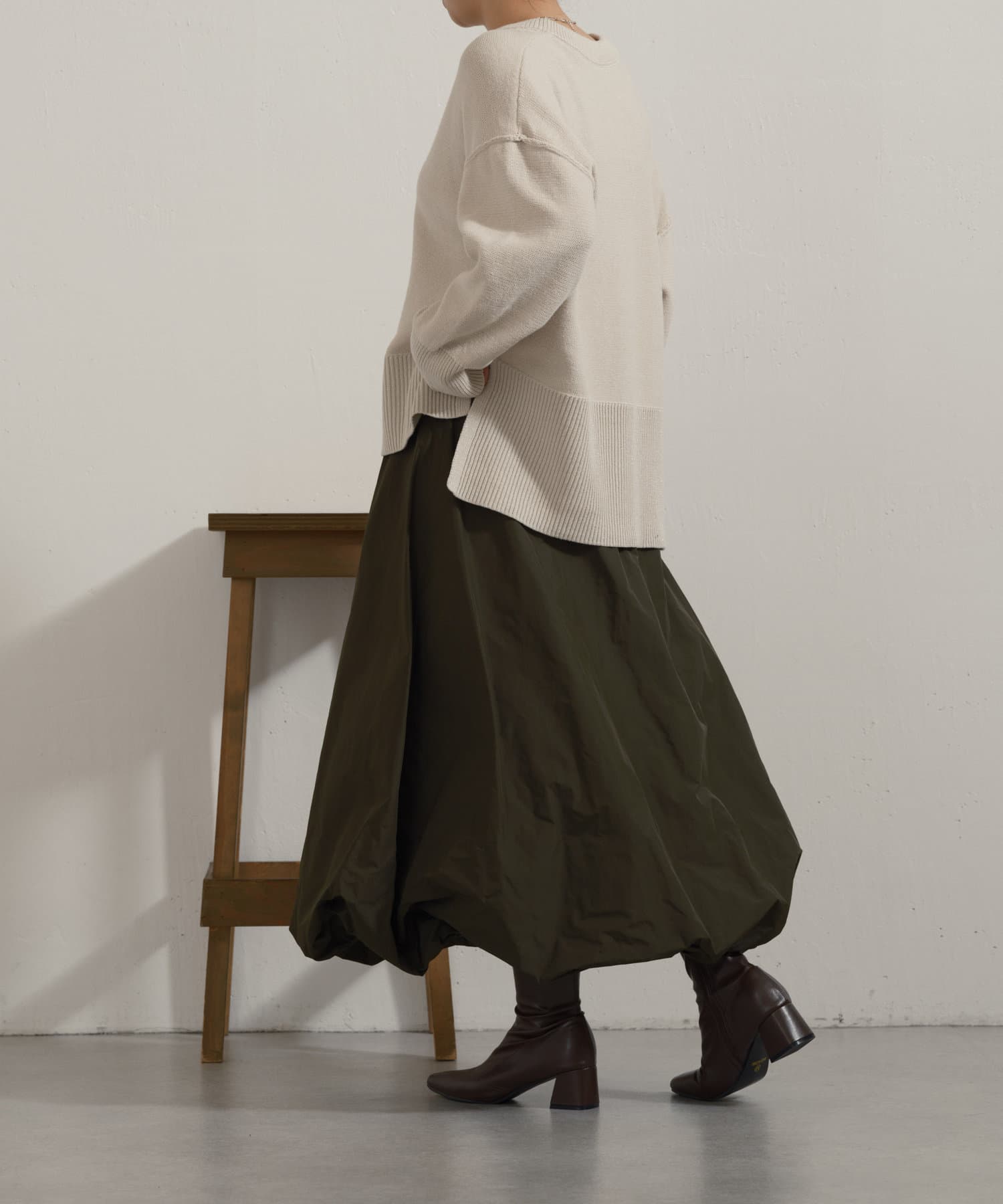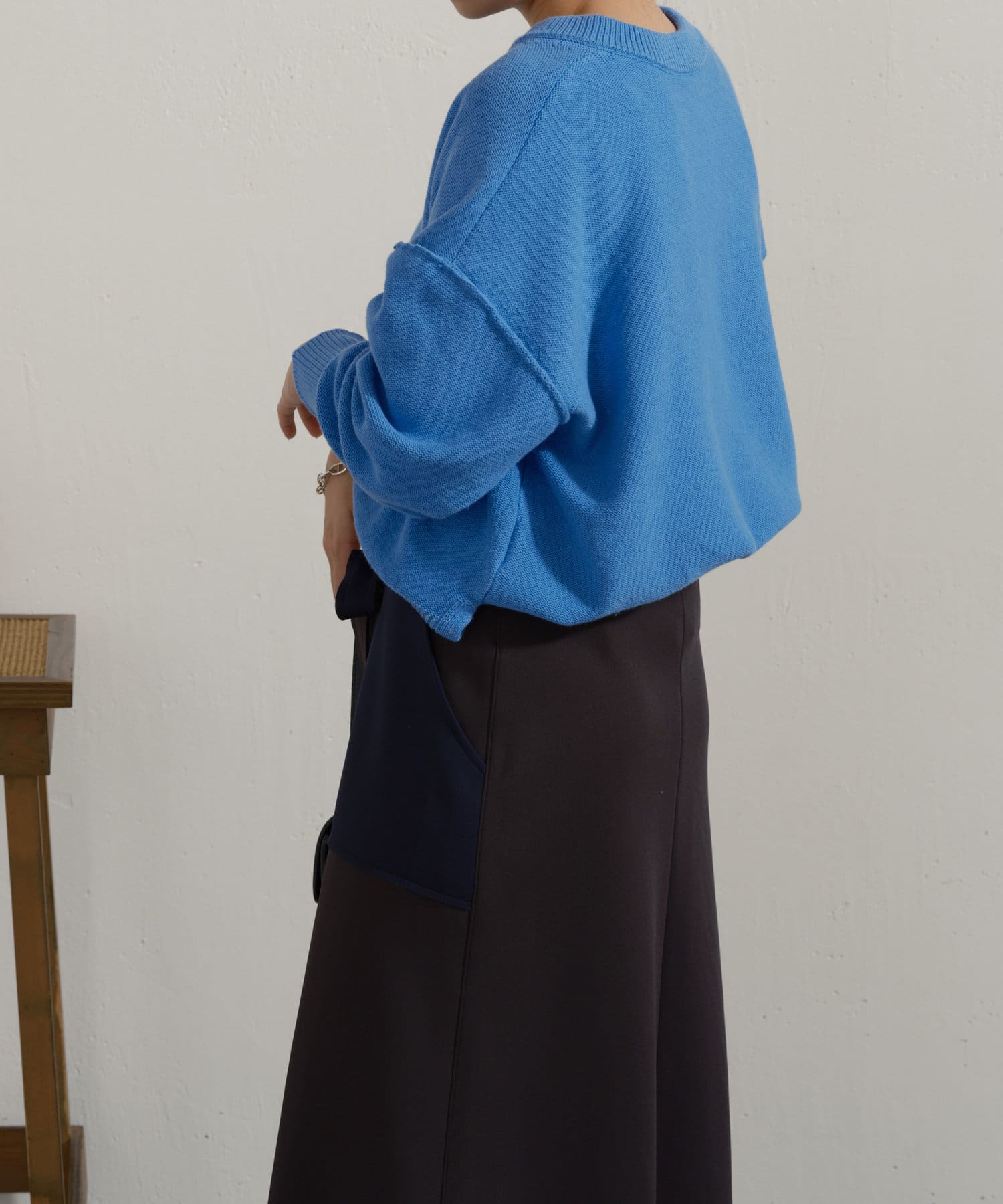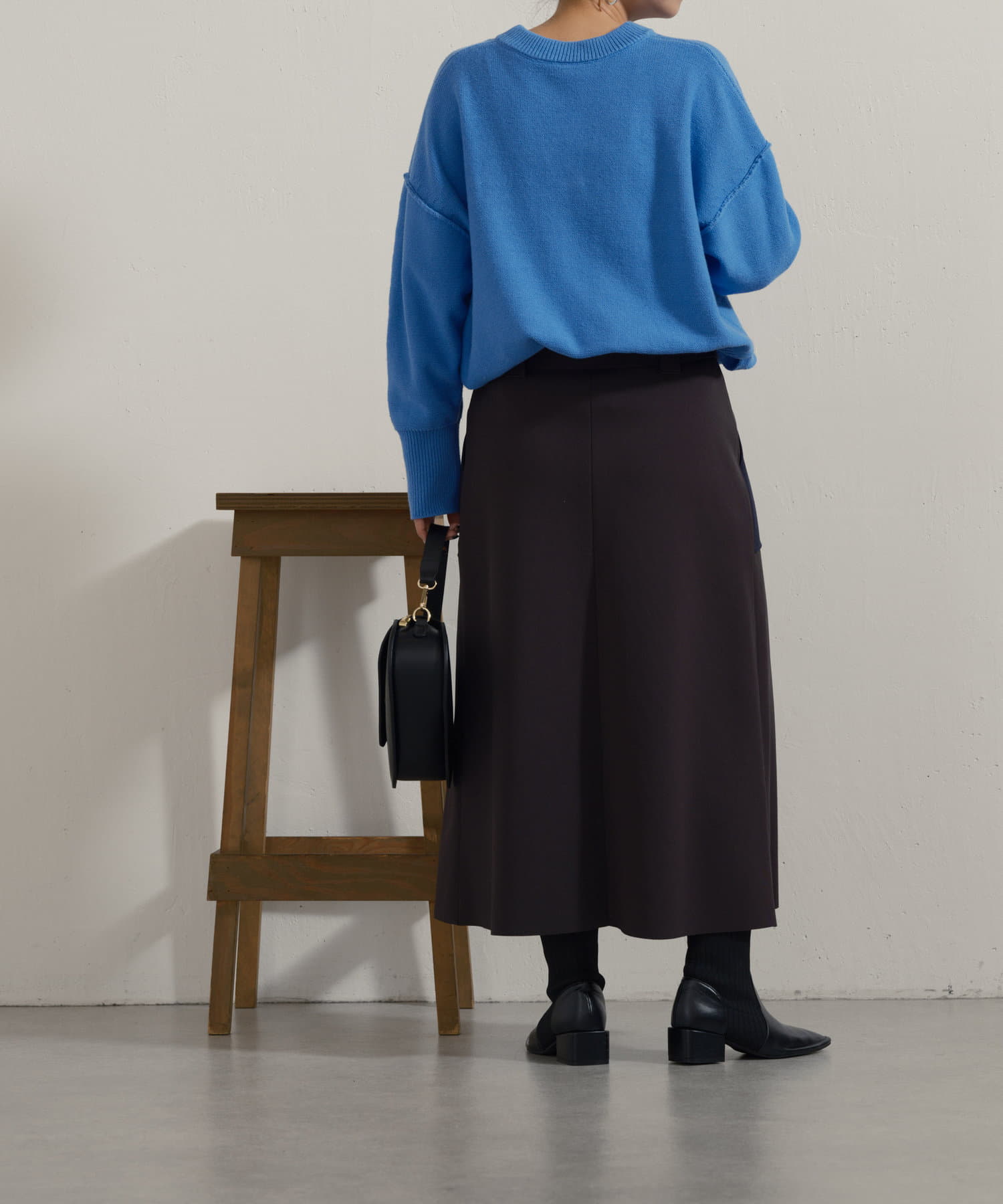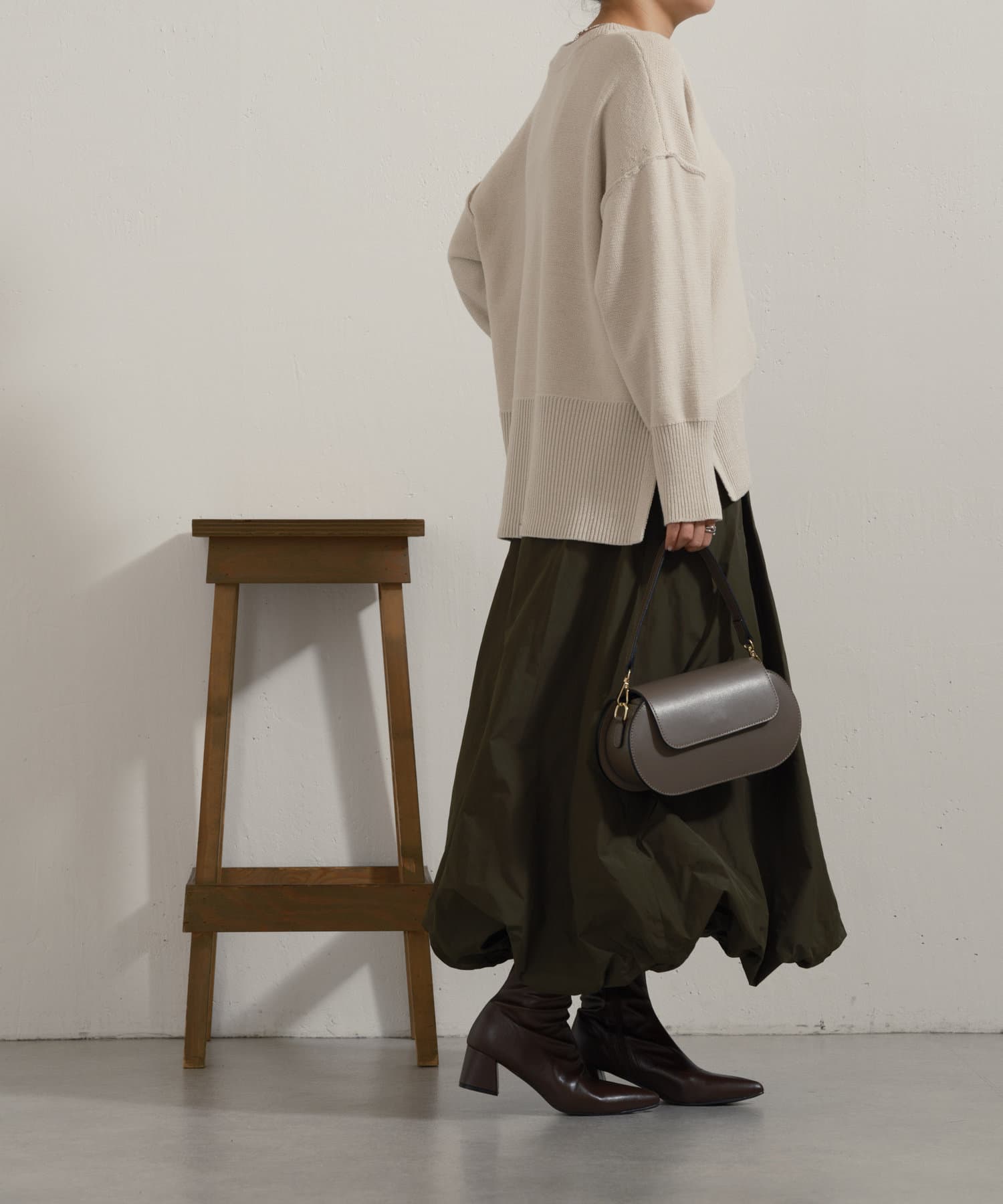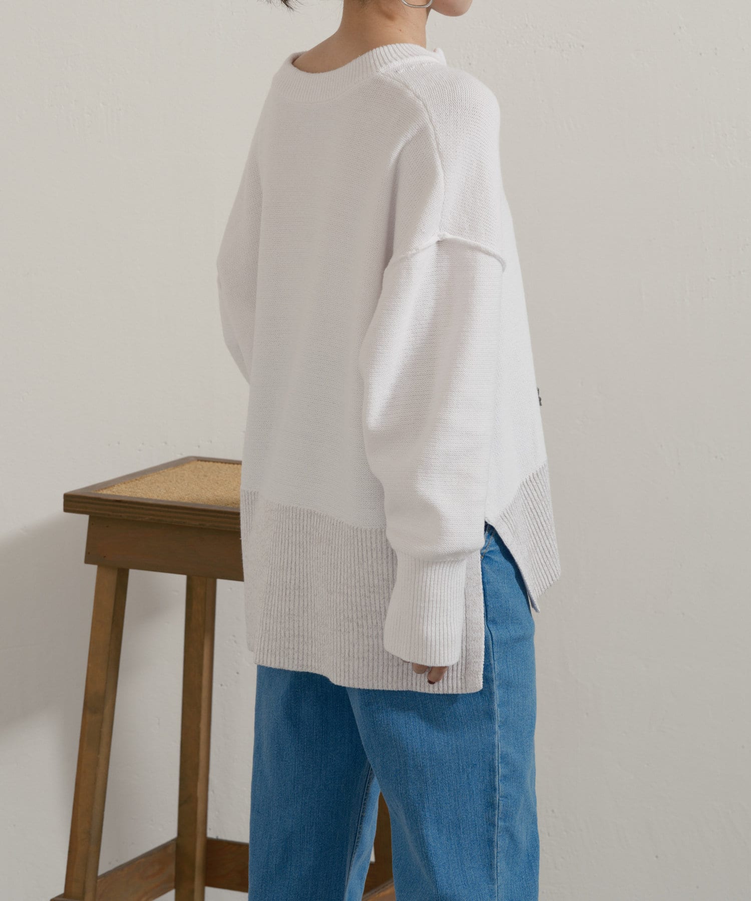 ・首元と裾に施されたさりげないラメがポイントのニット。