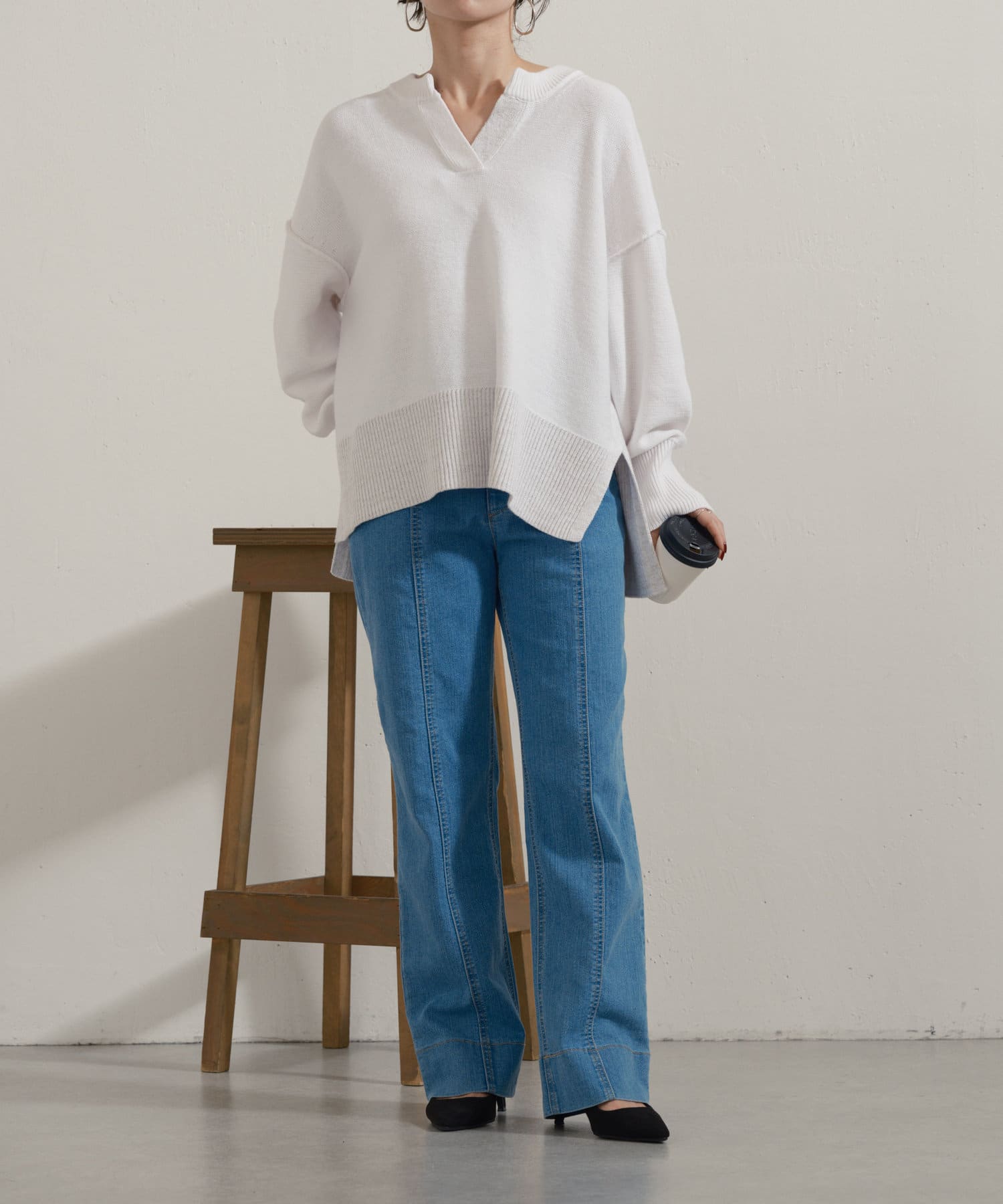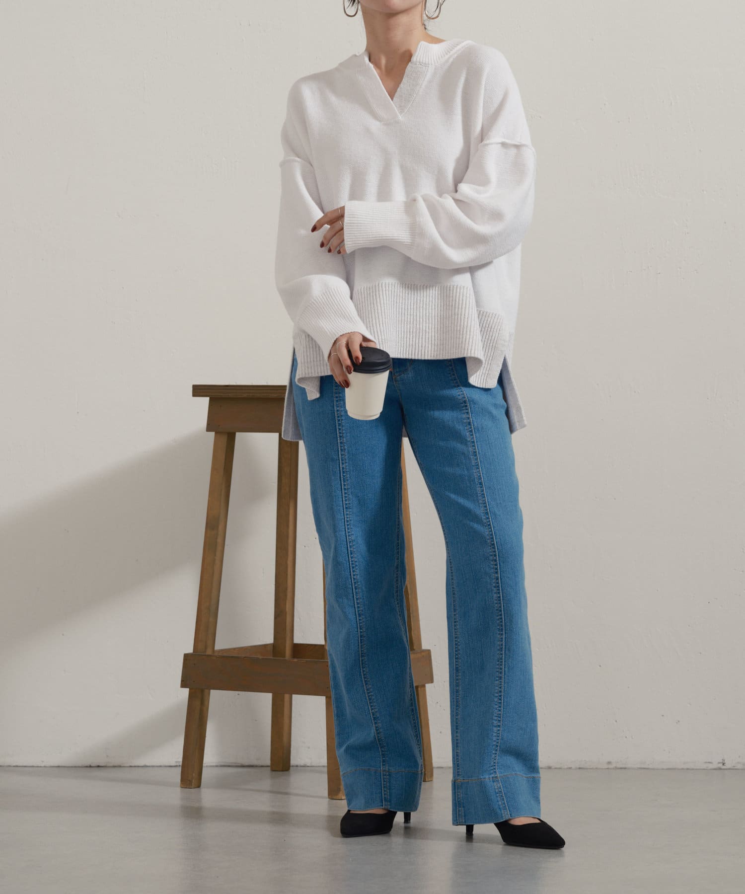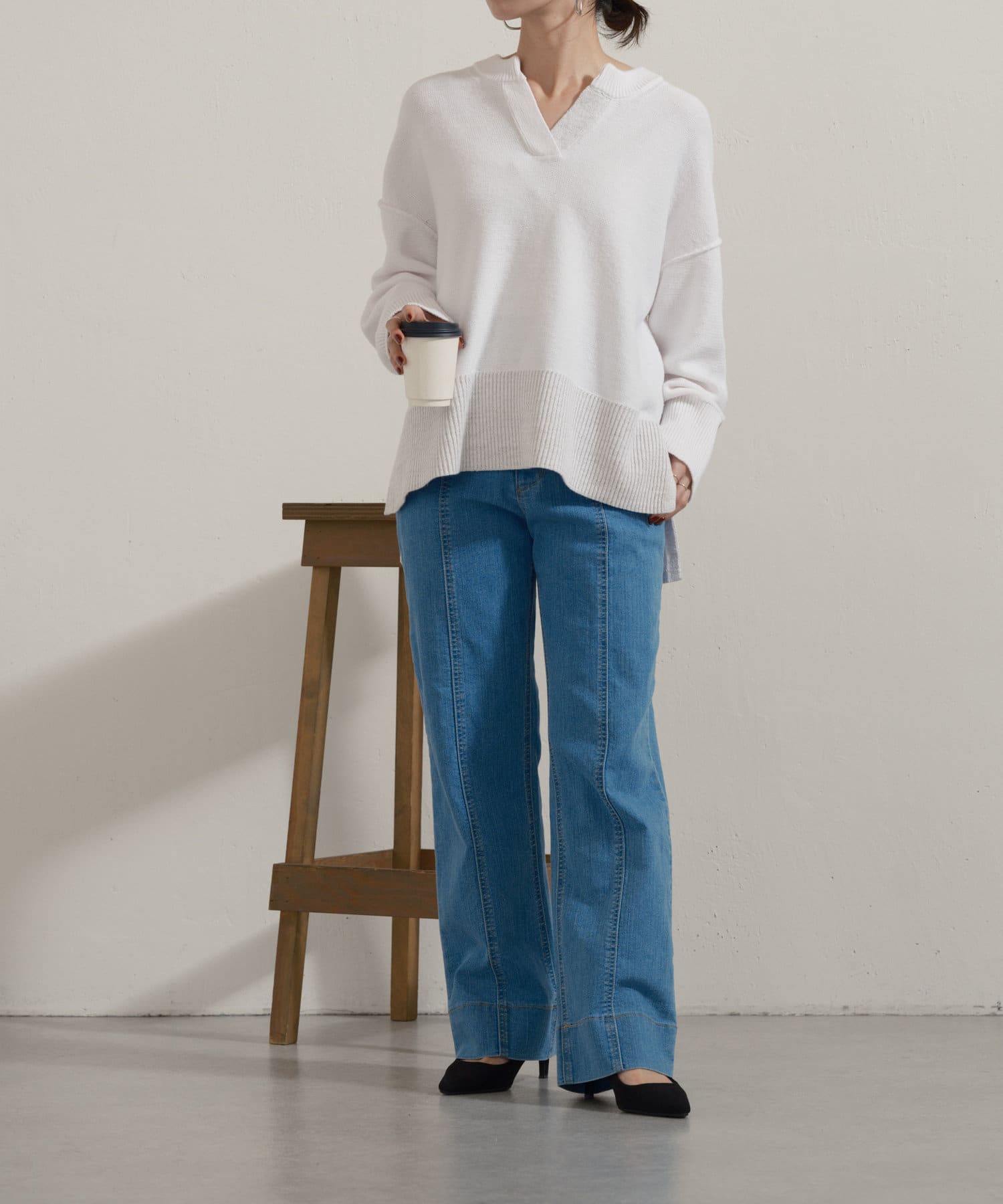・程よく開いた首元が自然な抜け感を演出してくれます。