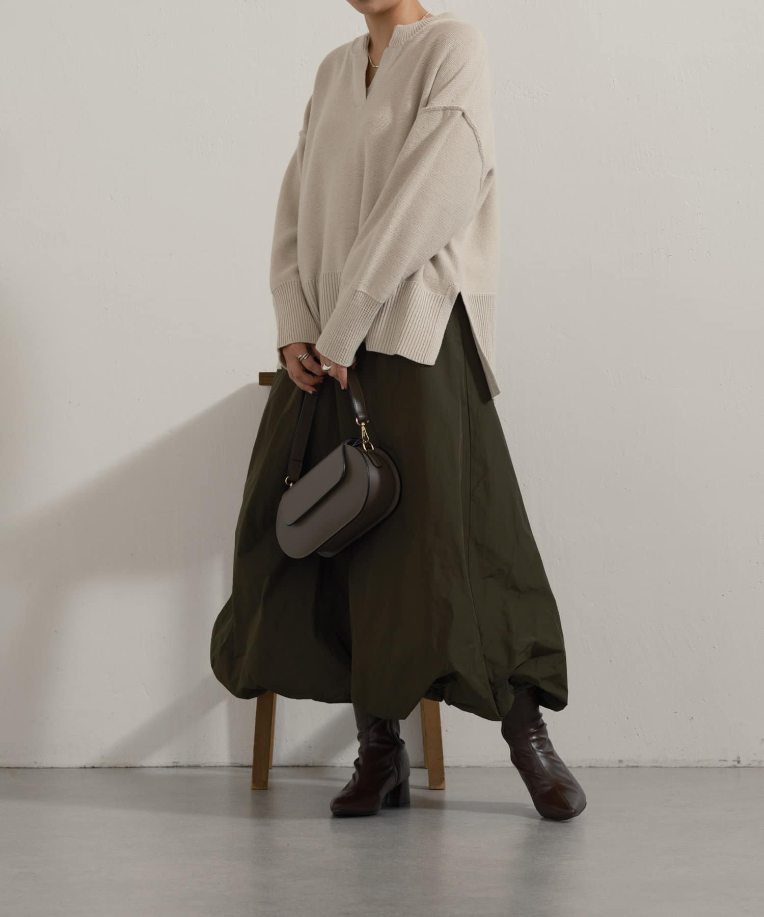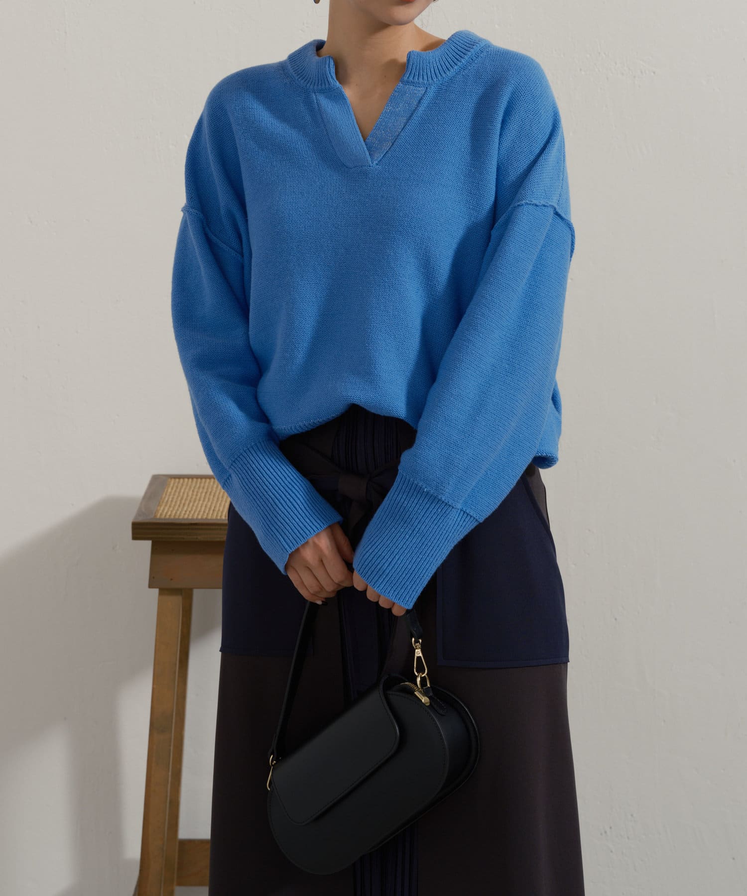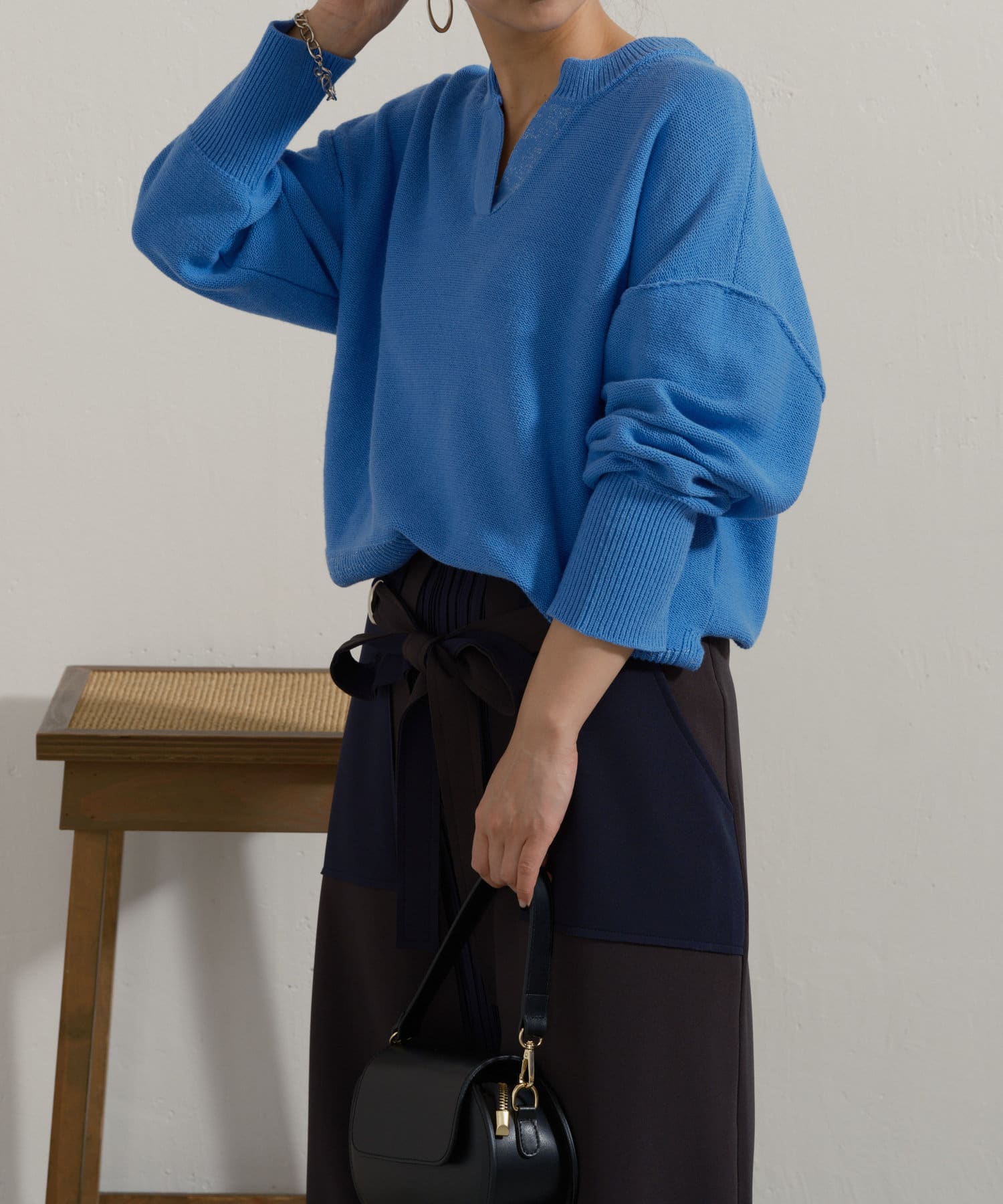 ・程よく開いた首元が自然な抜け感を演出してくれます。