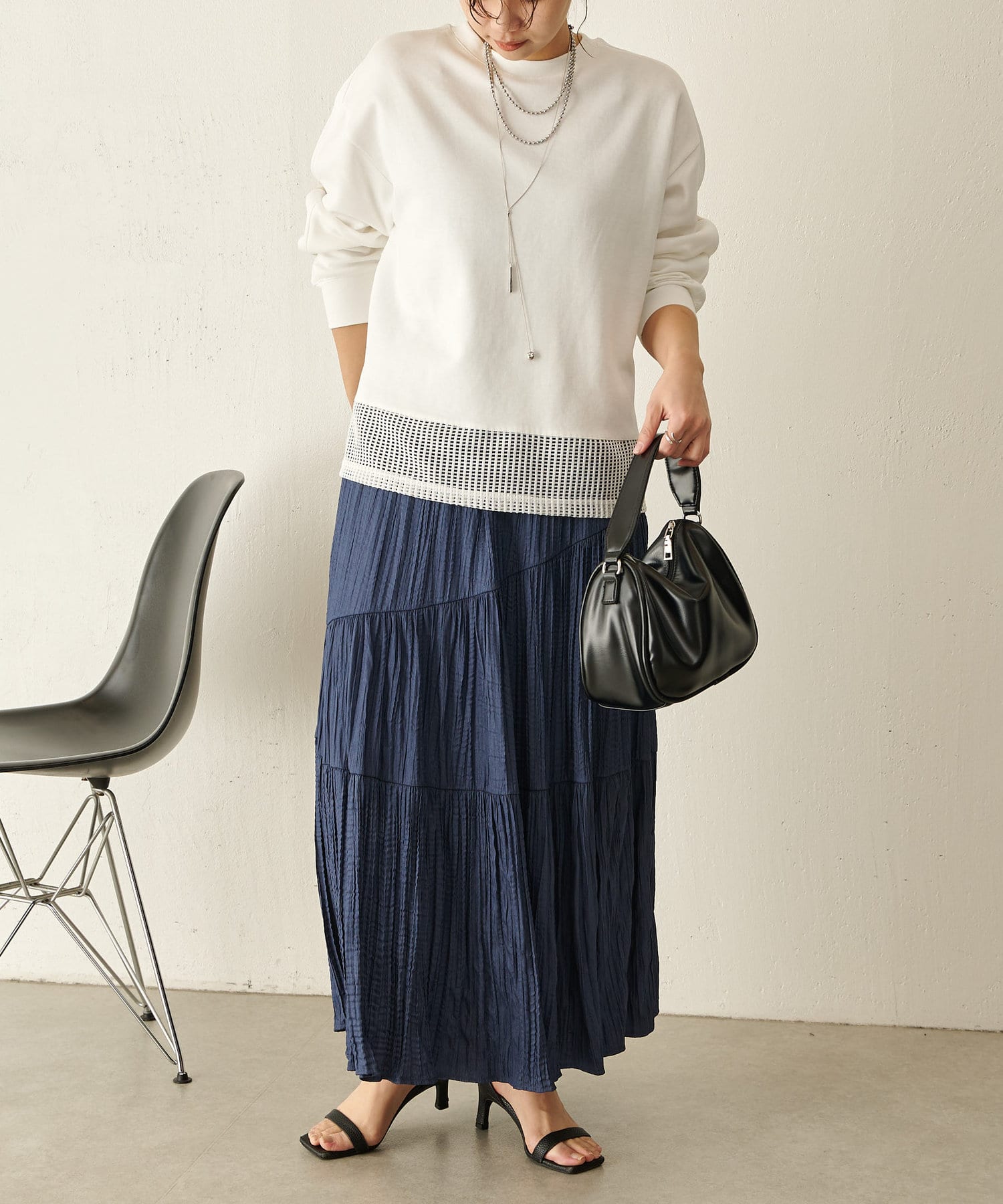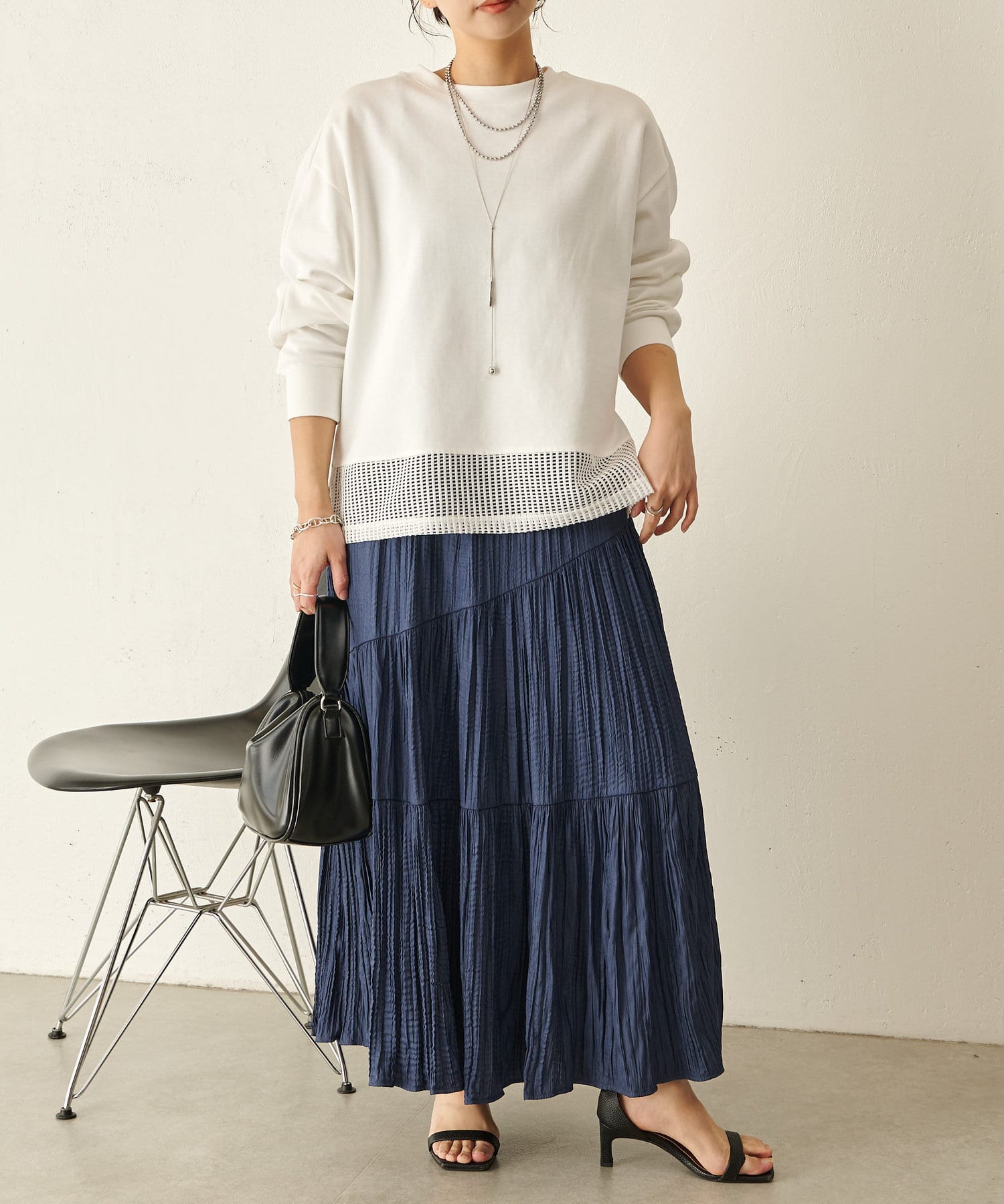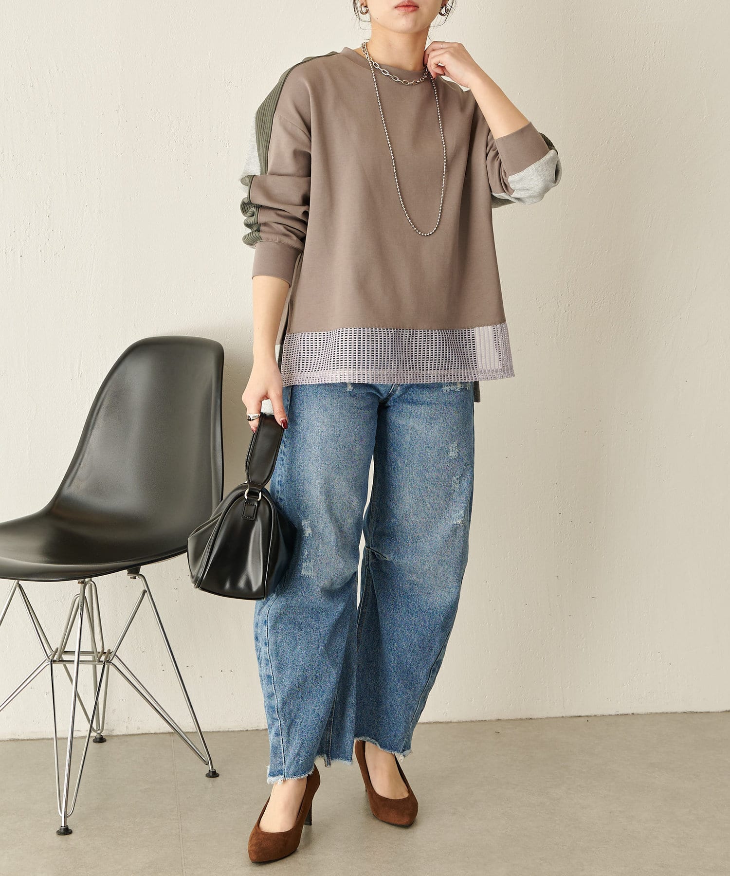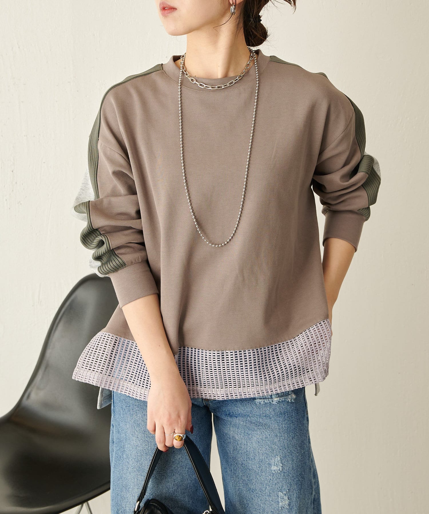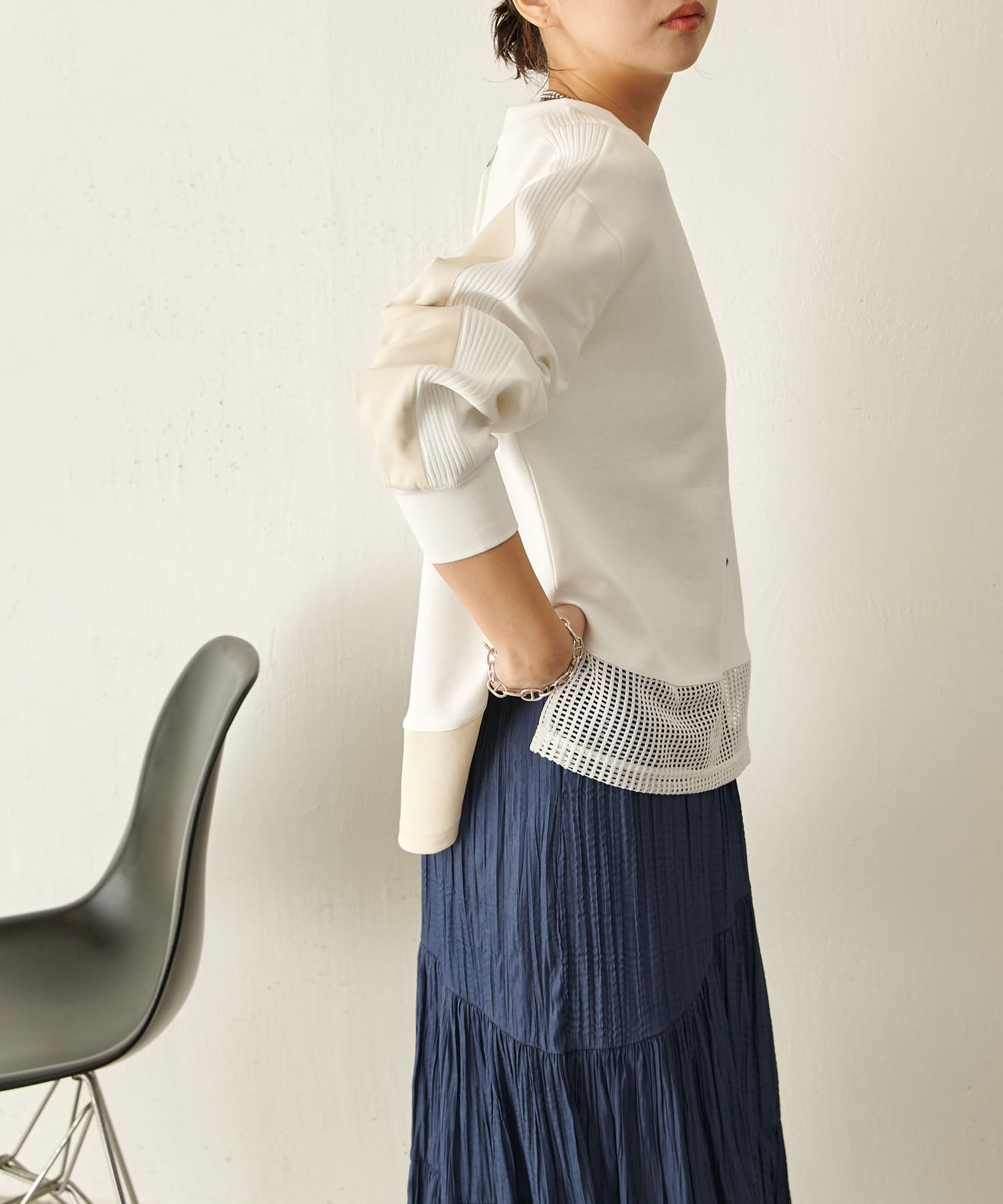 ・裾のメッシュ素材が自然な抜け感になり春らしい印象に◎