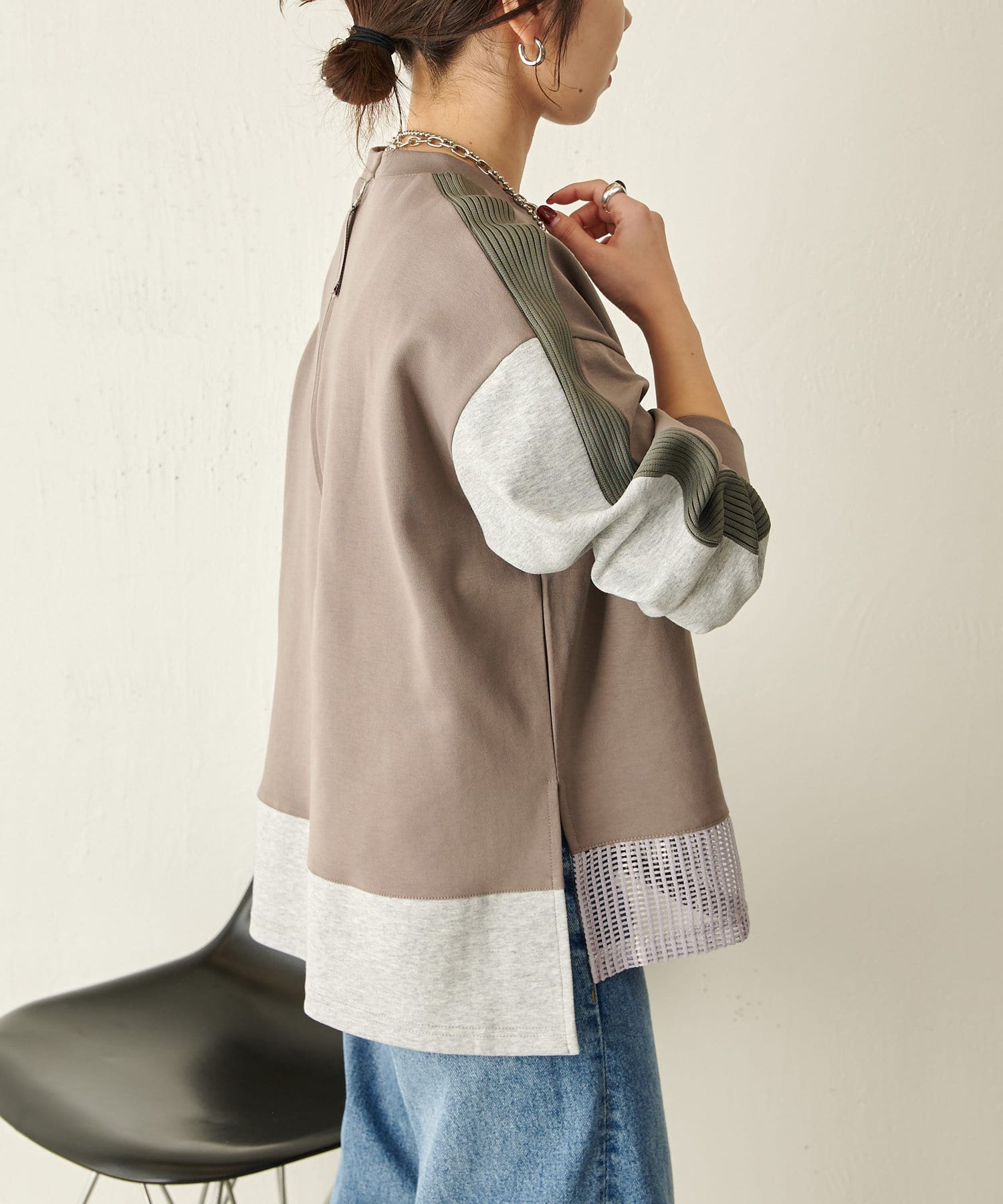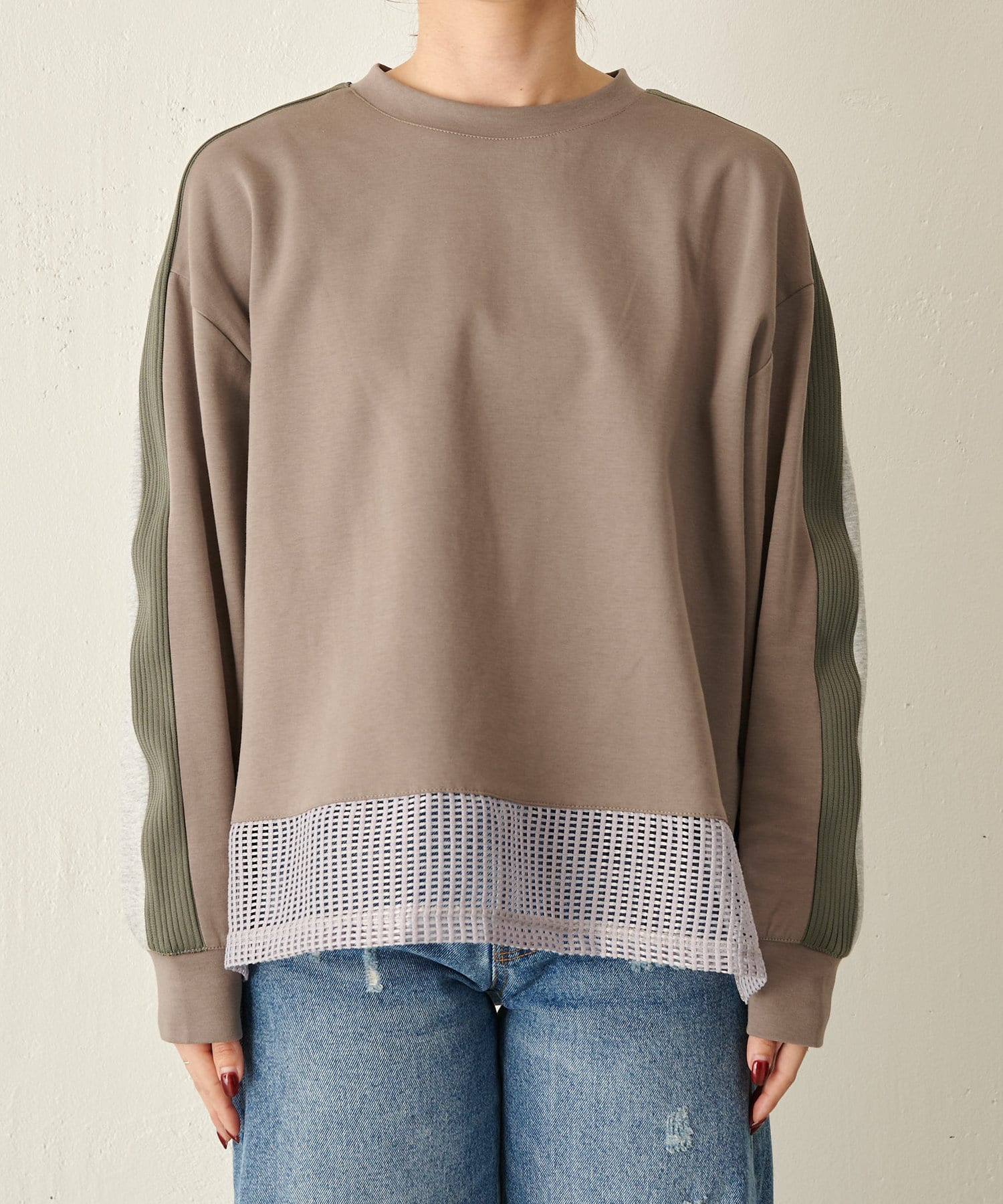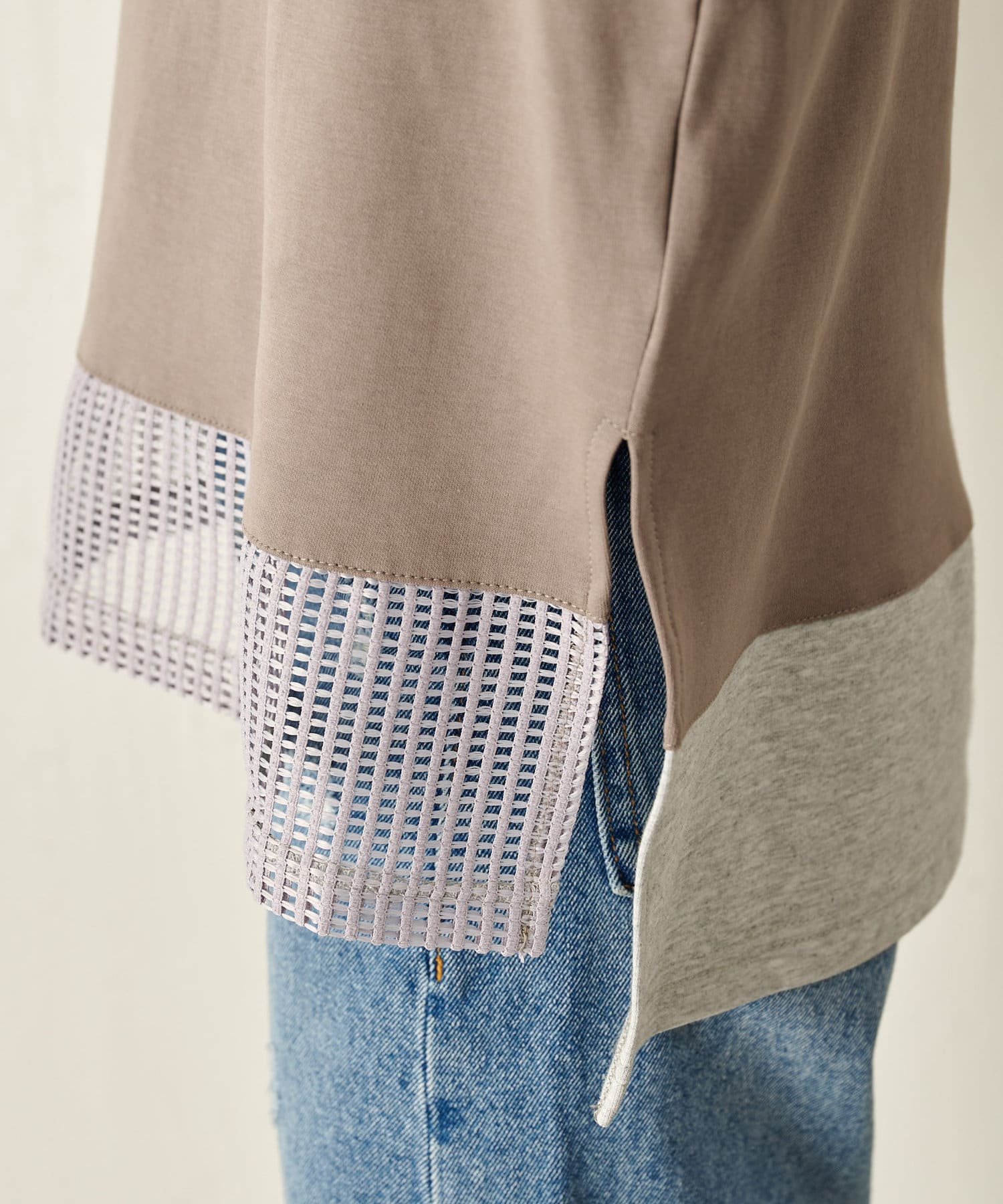 裾メッシュ配色カットソー