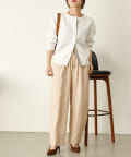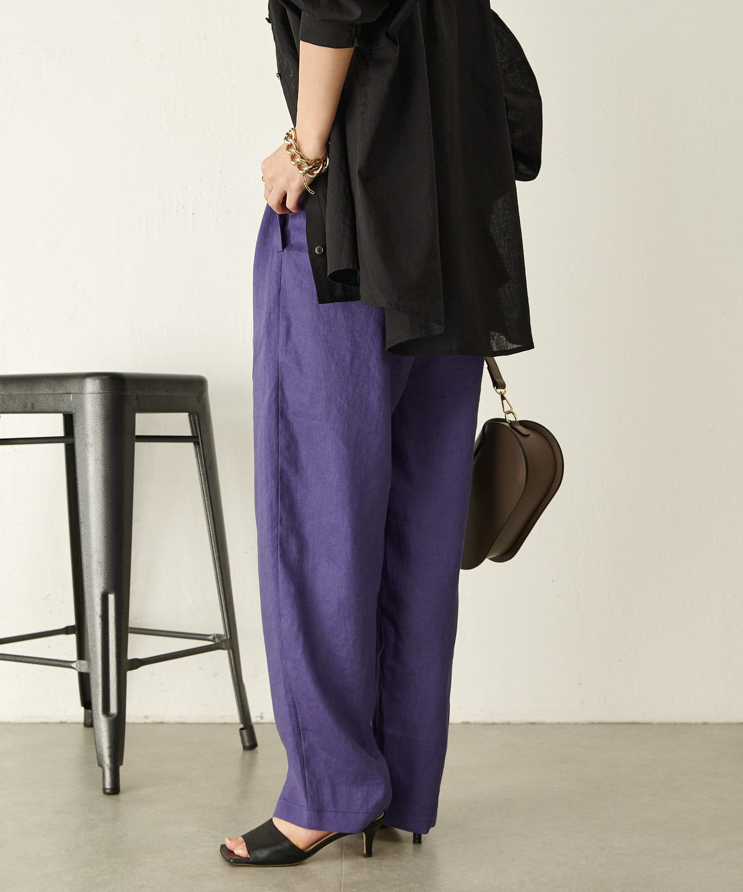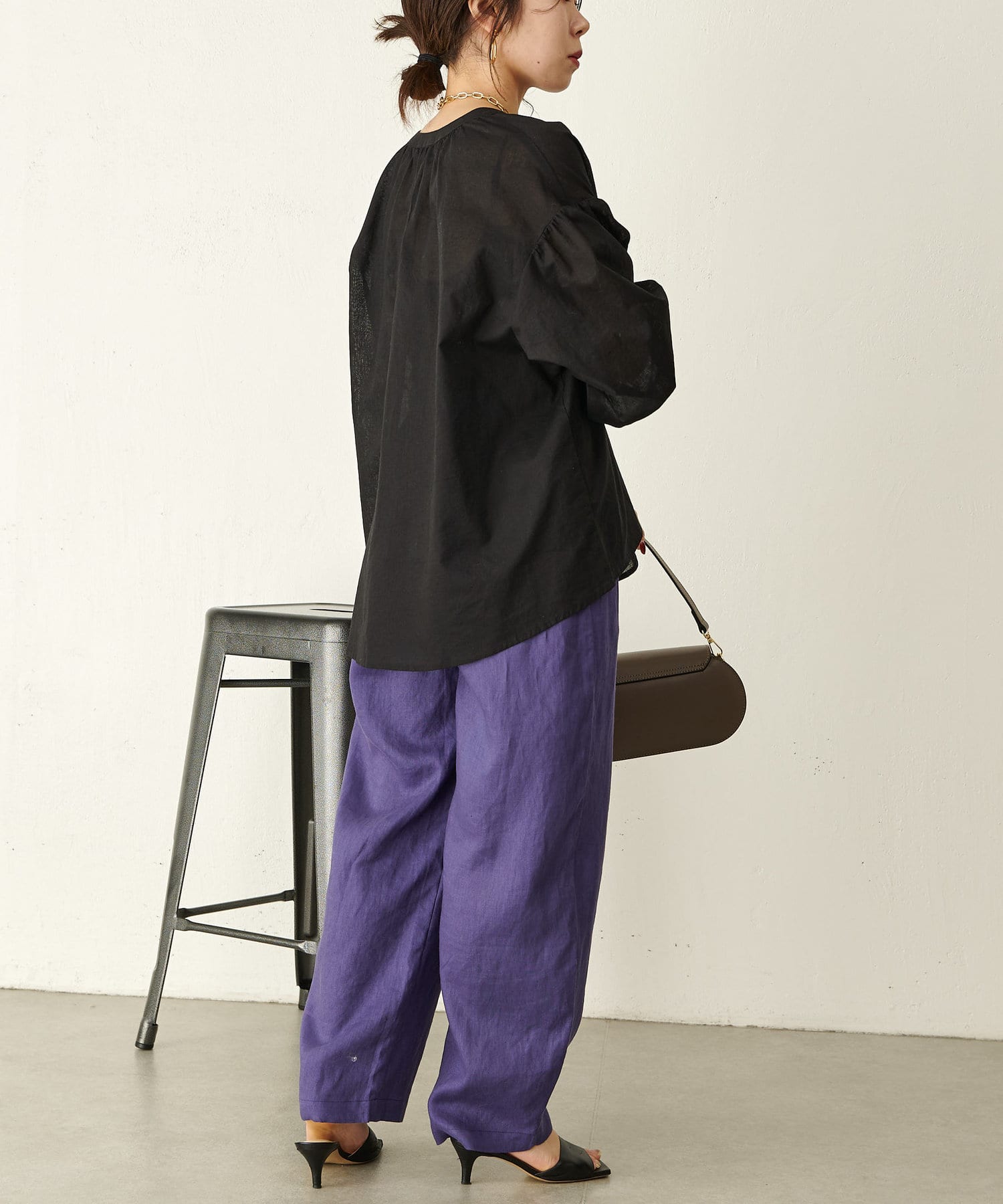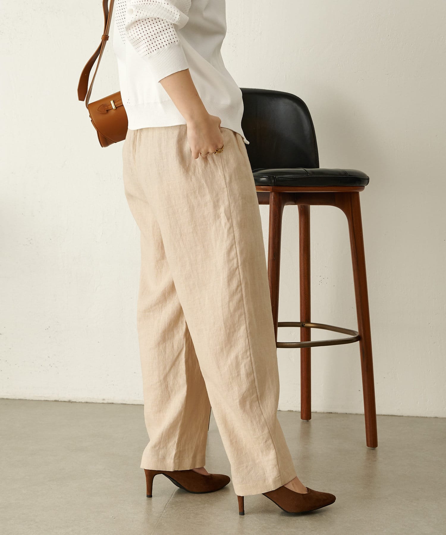 ・適度にハリのあるリネン素材なのでナチュラルになりすぎず、シックに着こなせます。