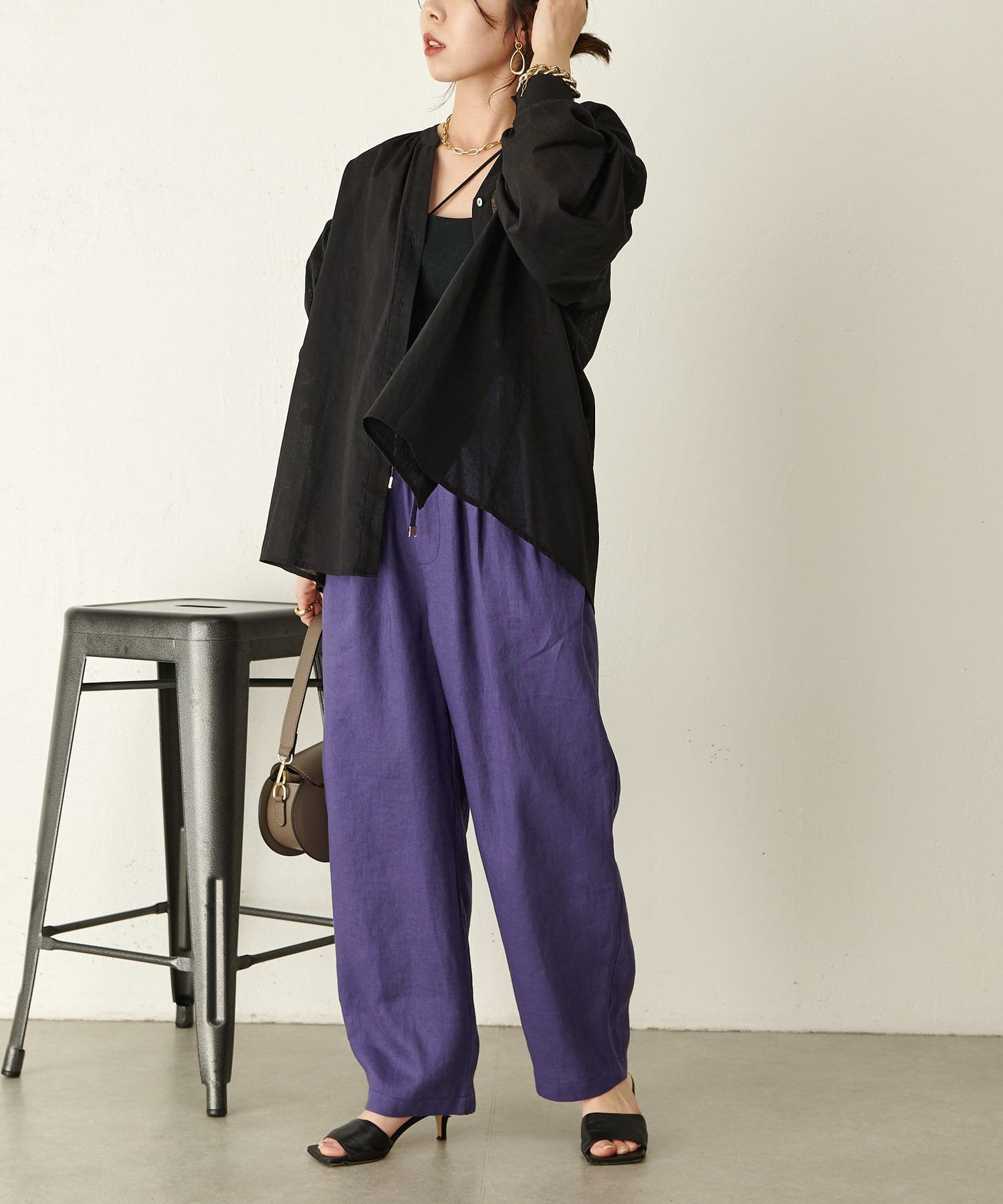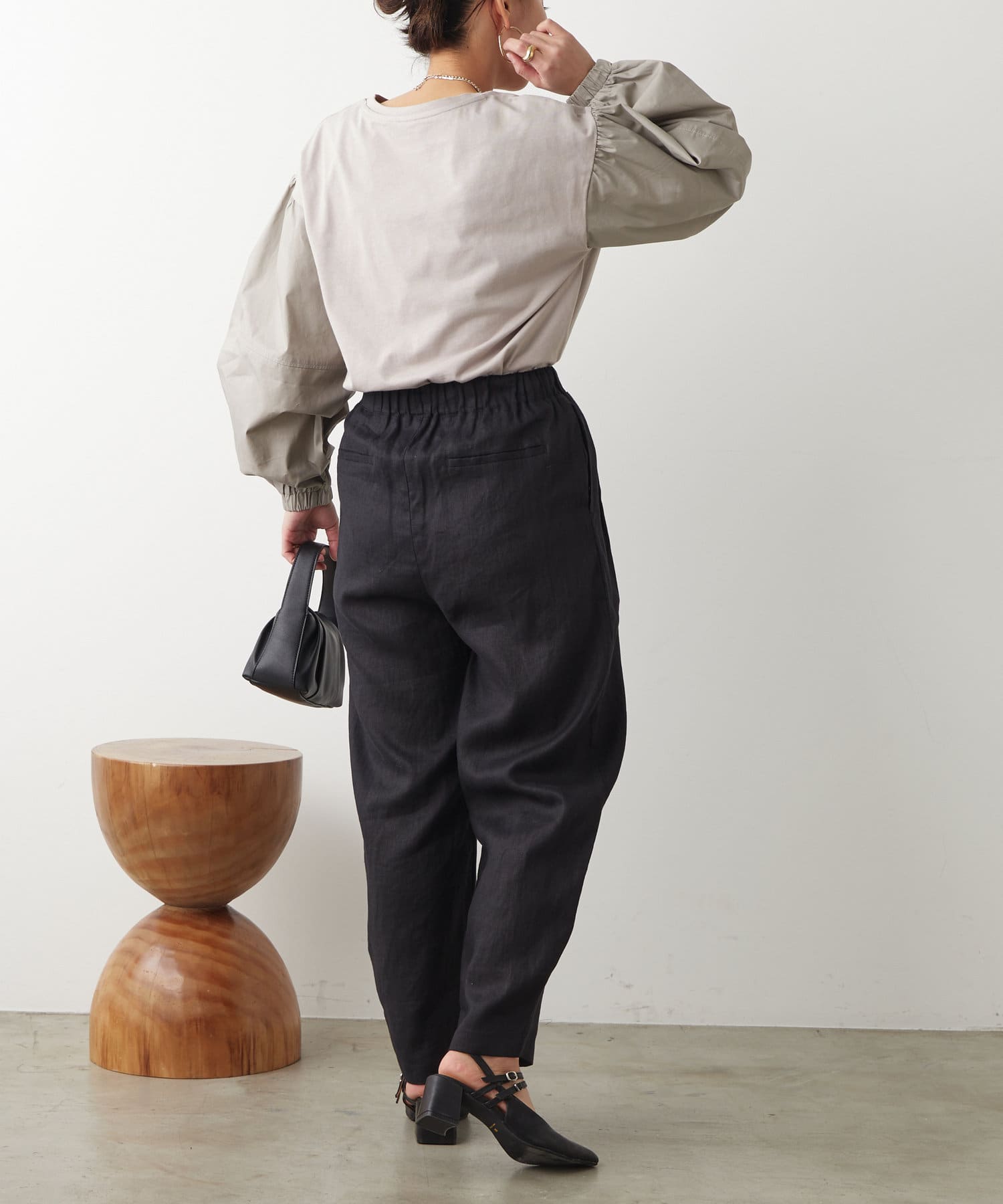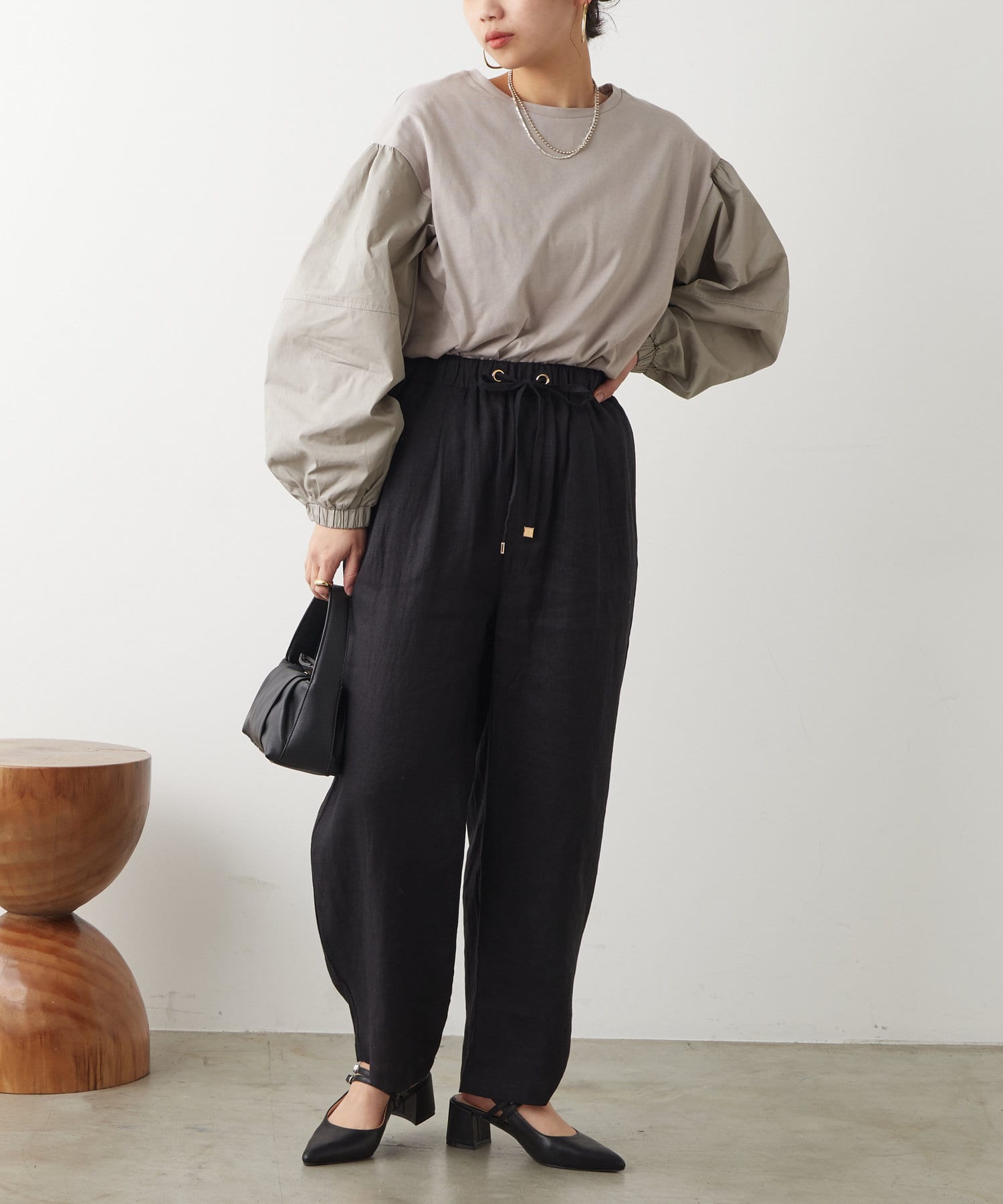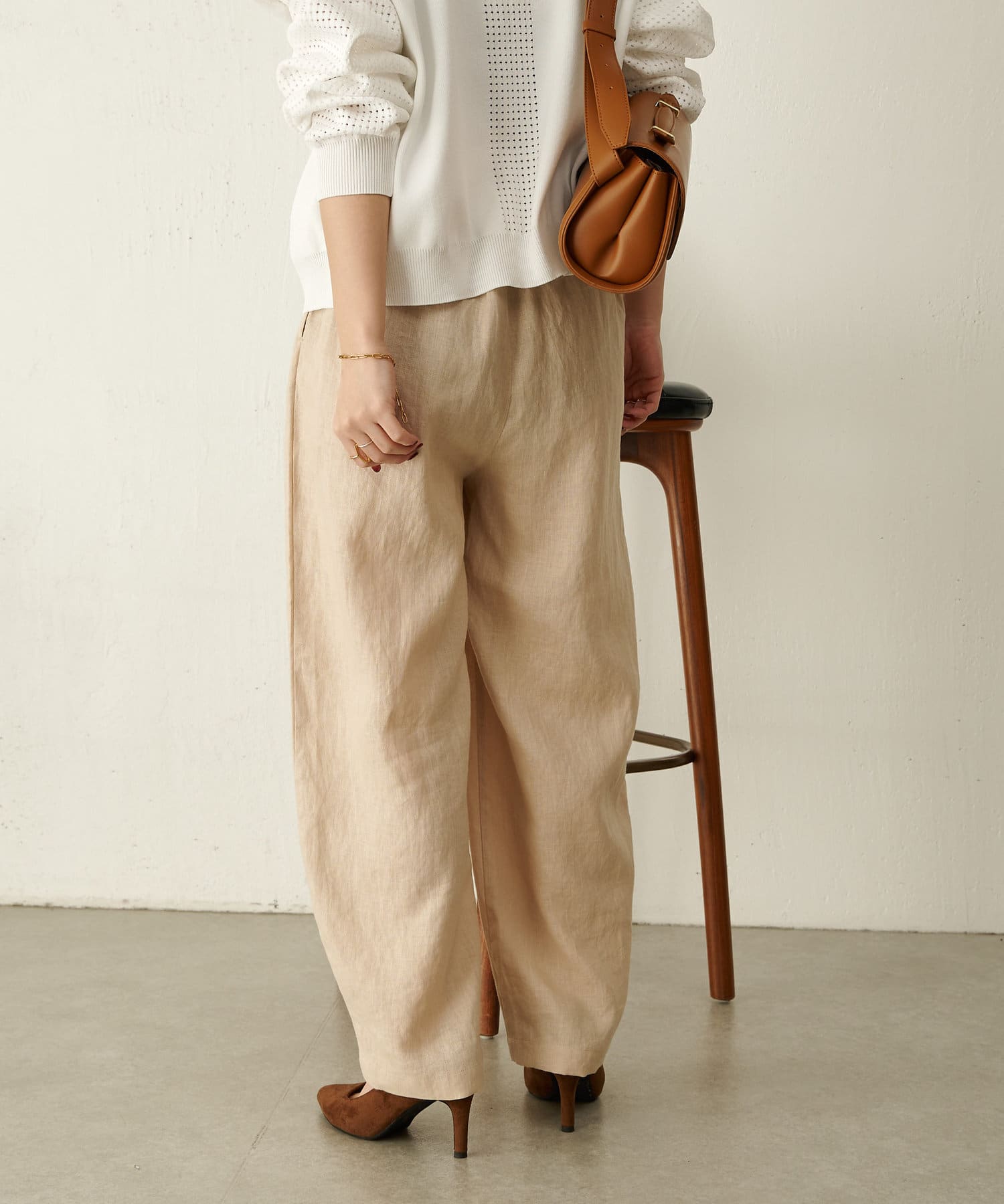 ・リネン素材のしなかやでドライな質感が特徴のコクーンパンツが登場!