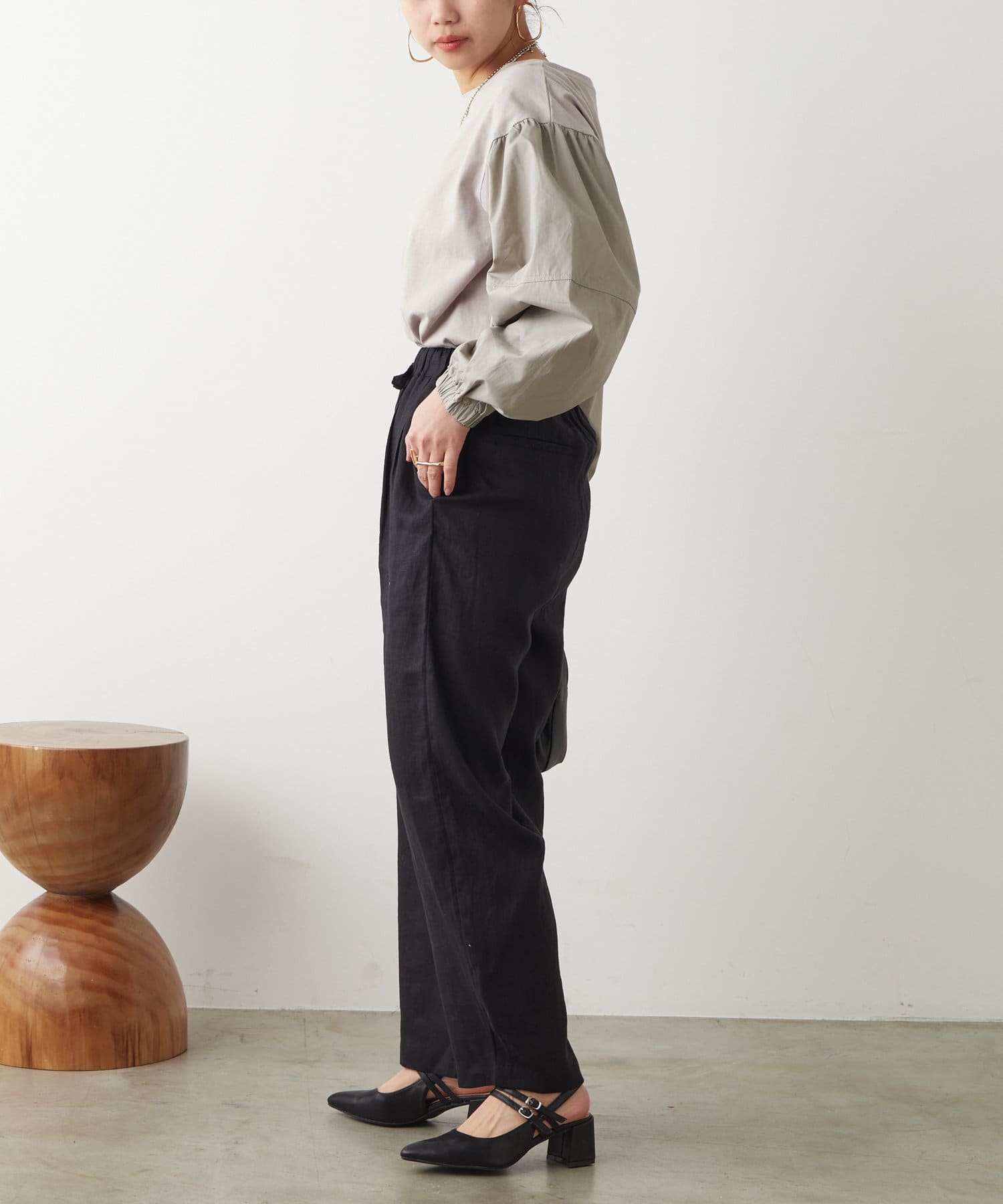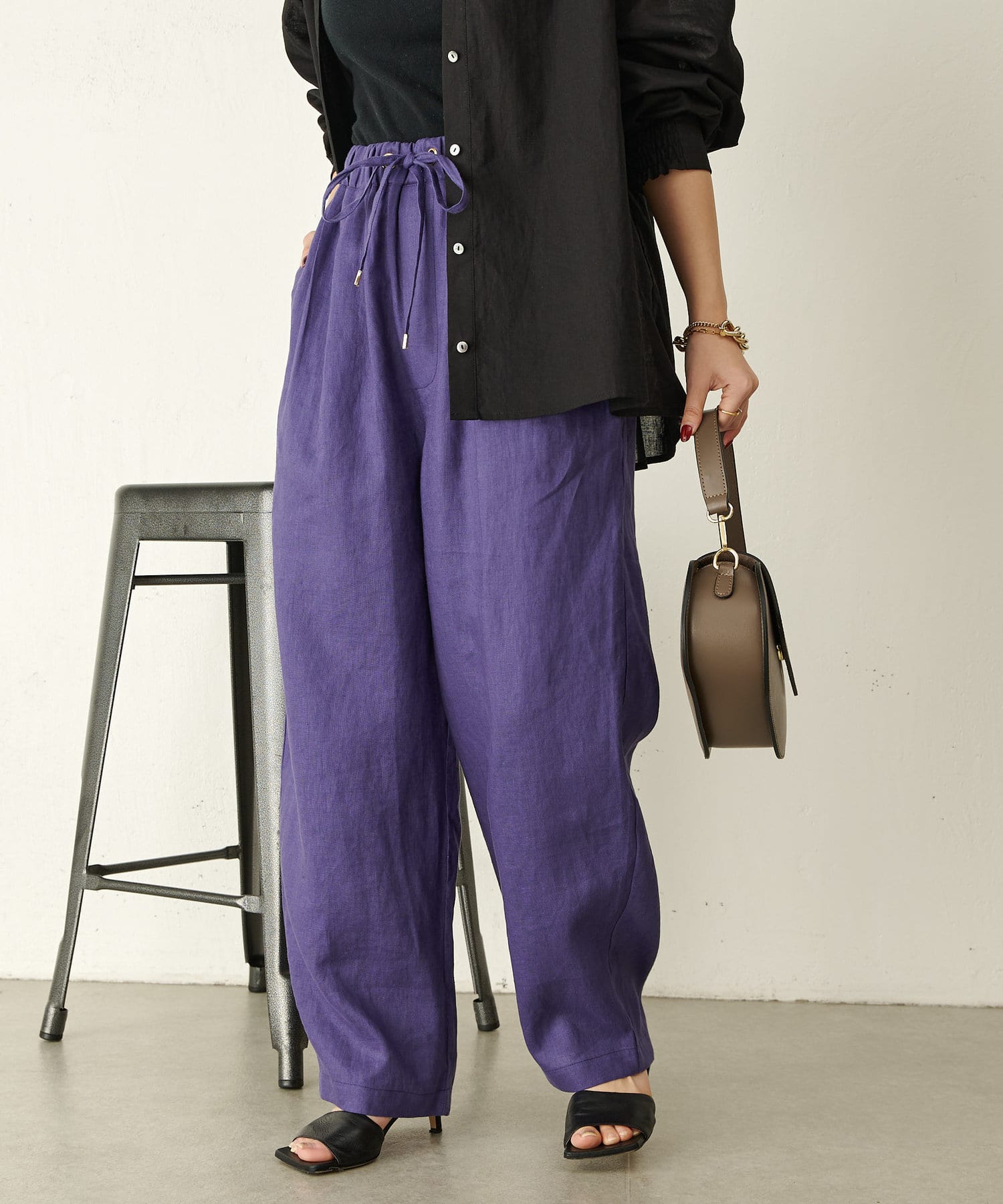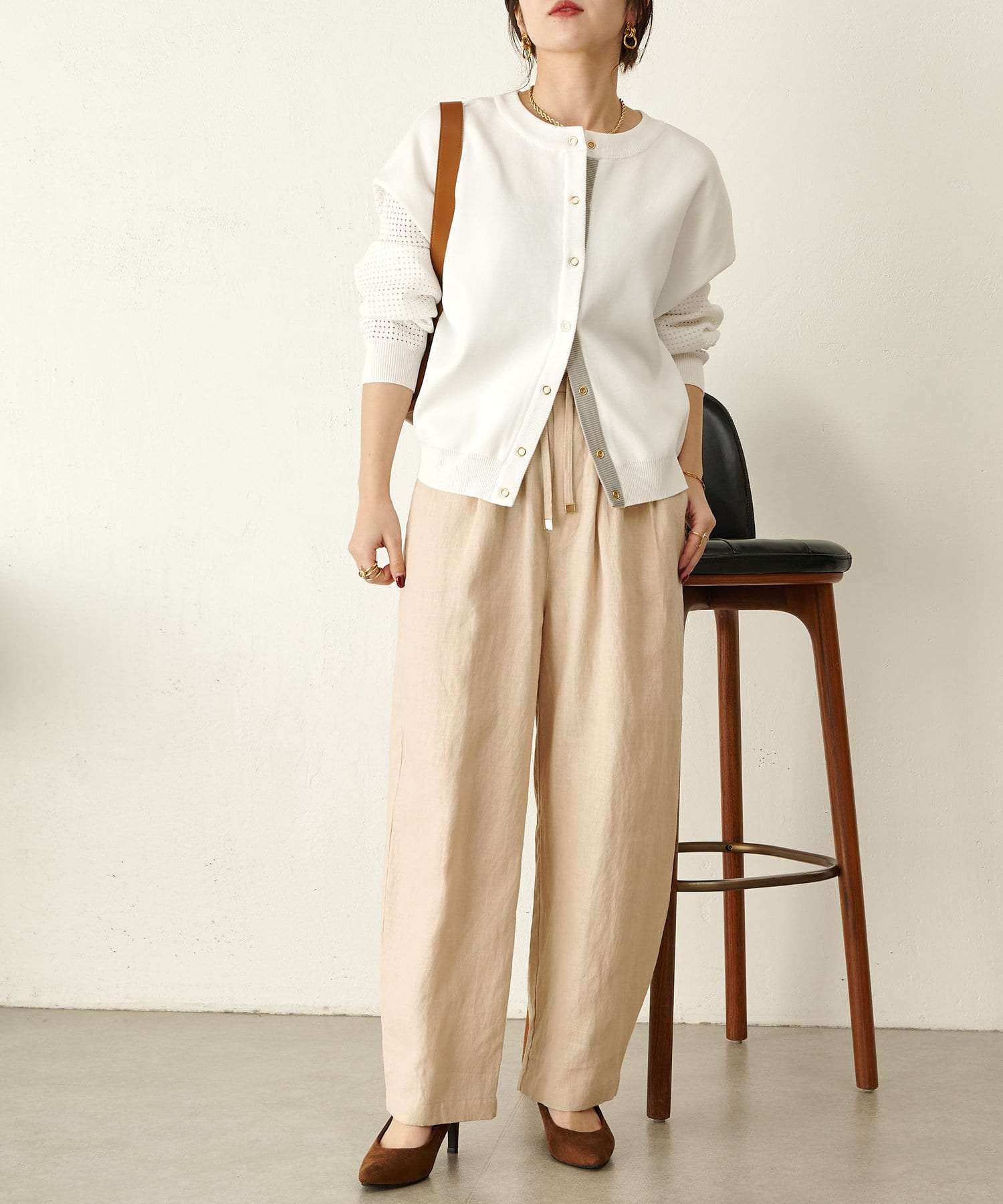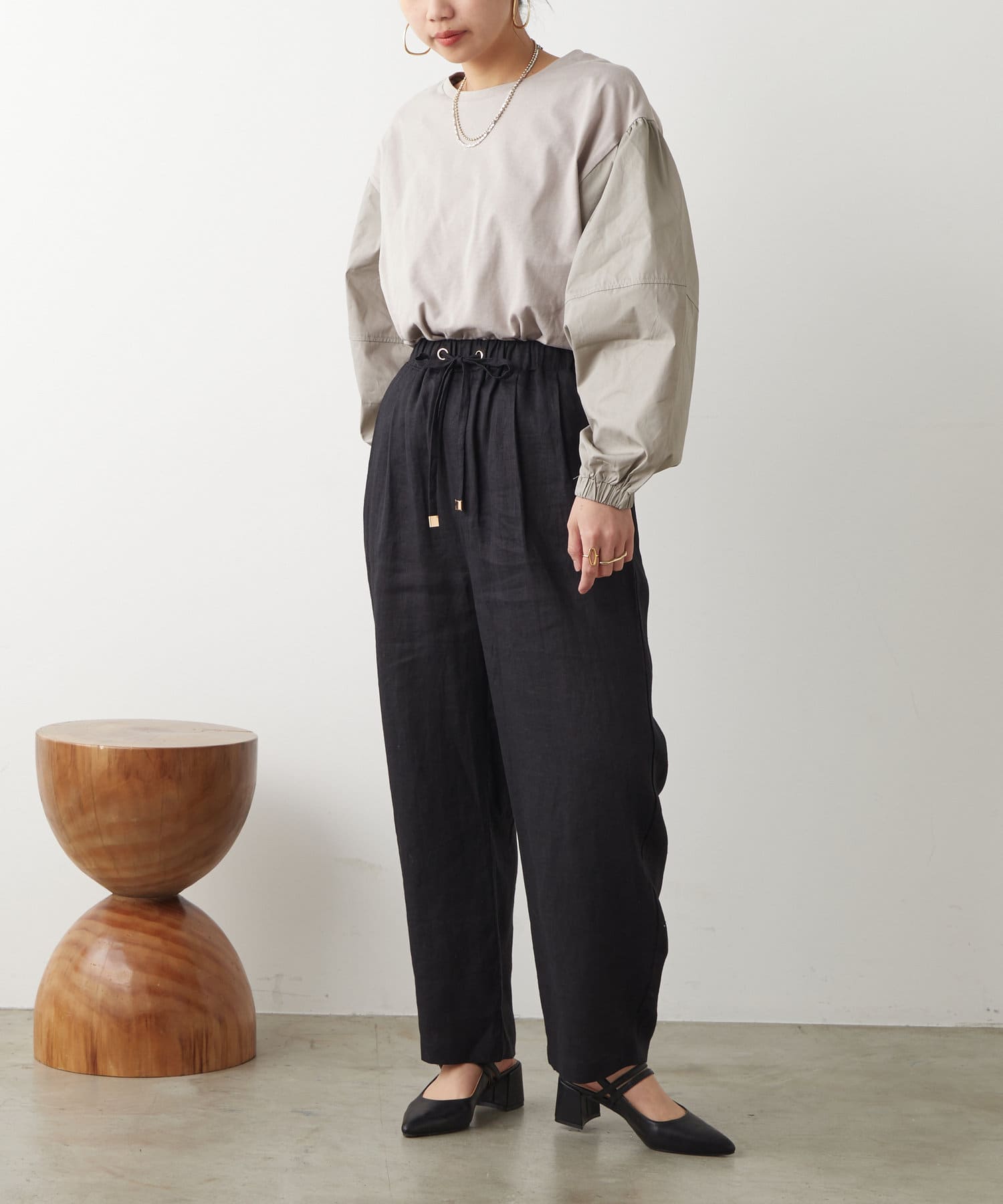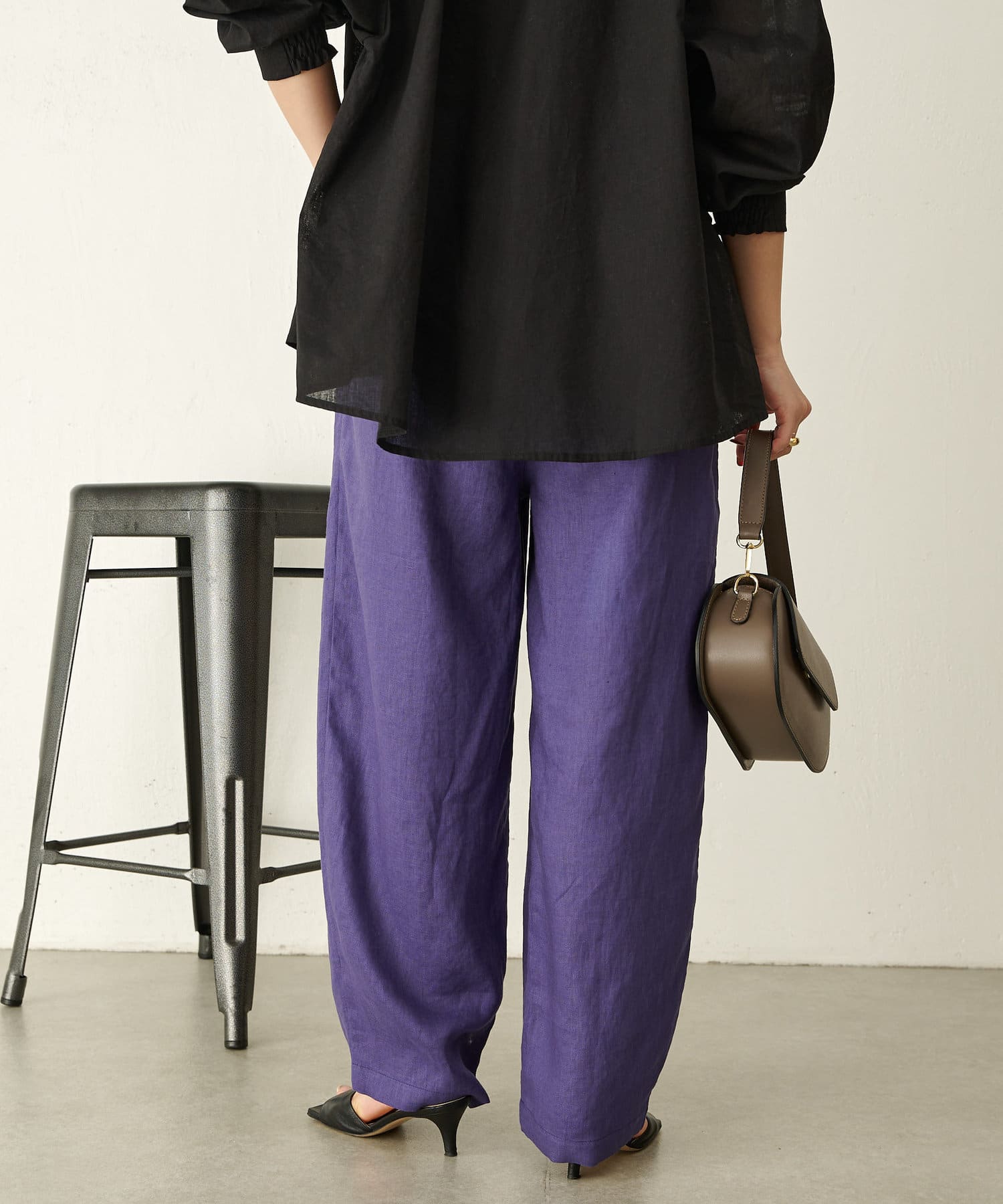 ・リネン素材のしなかやでドライな質感が特徴のコクーンパンツが登場!
