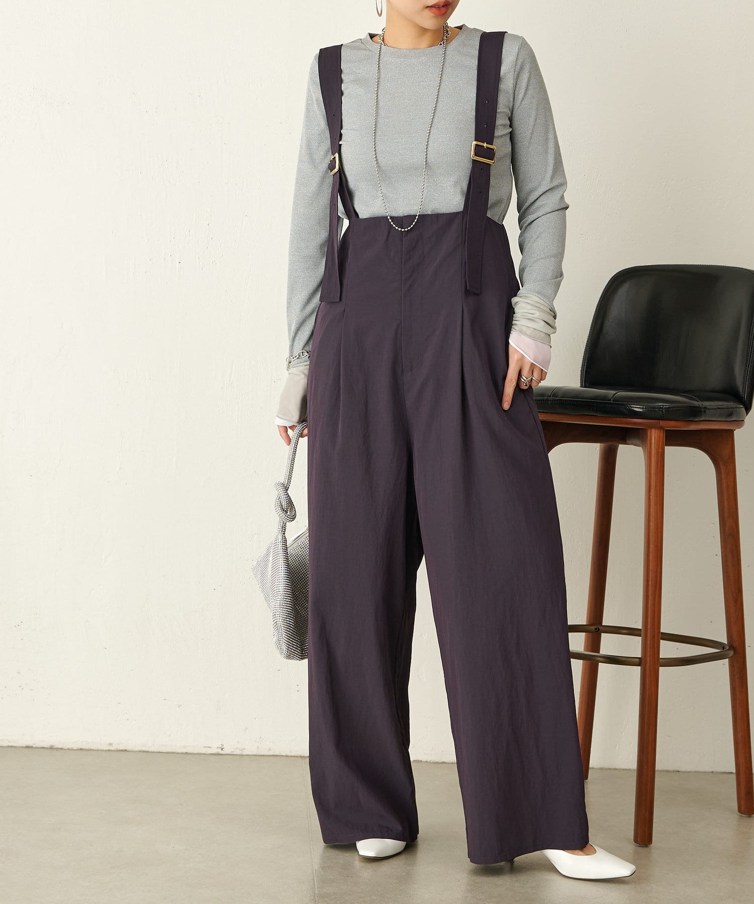 ・サスペンダーとハイウエストパンツの組み合わせがマニッシュなコーデにも◎