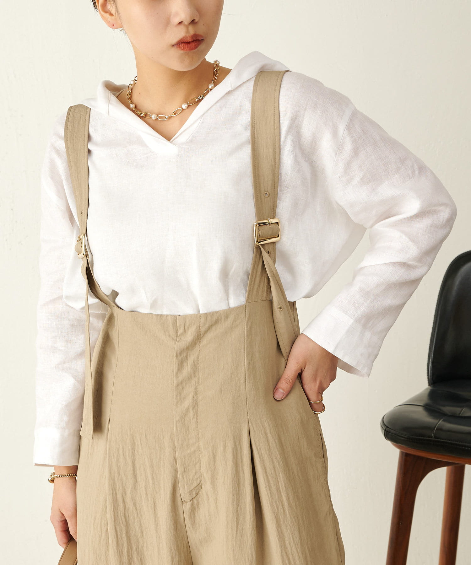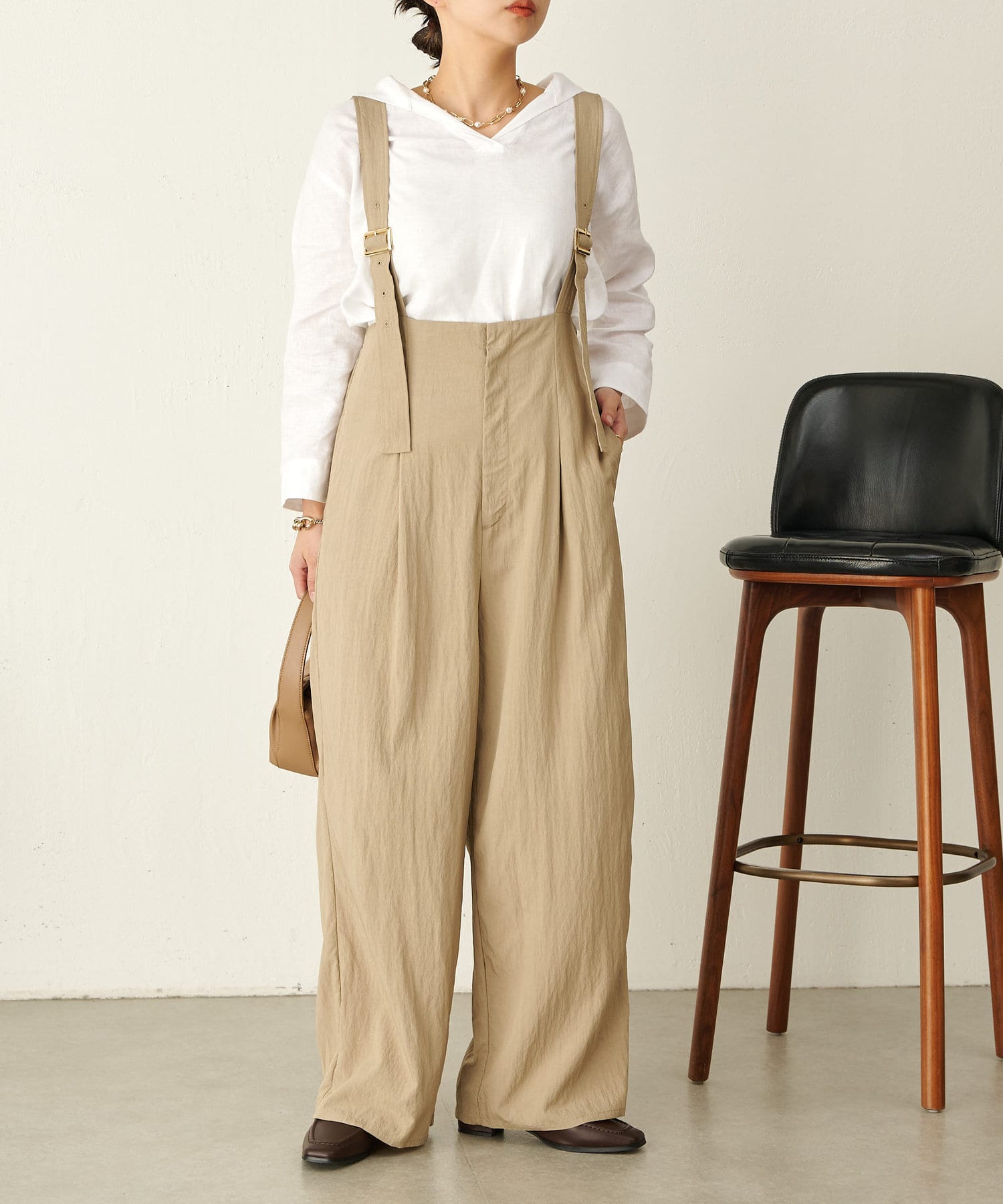 ・サスペンダーとハイウエストパンツの組み合わせがマニッシュなコーデにも◎