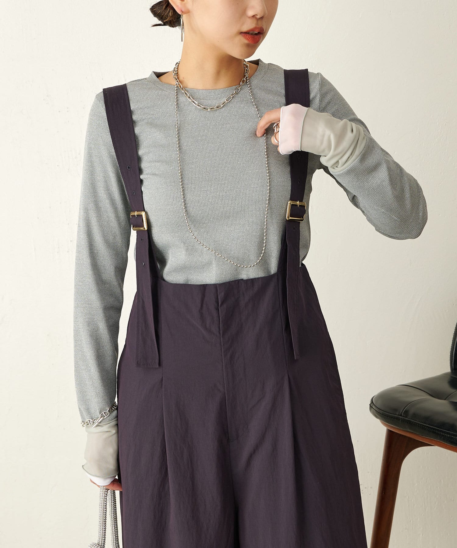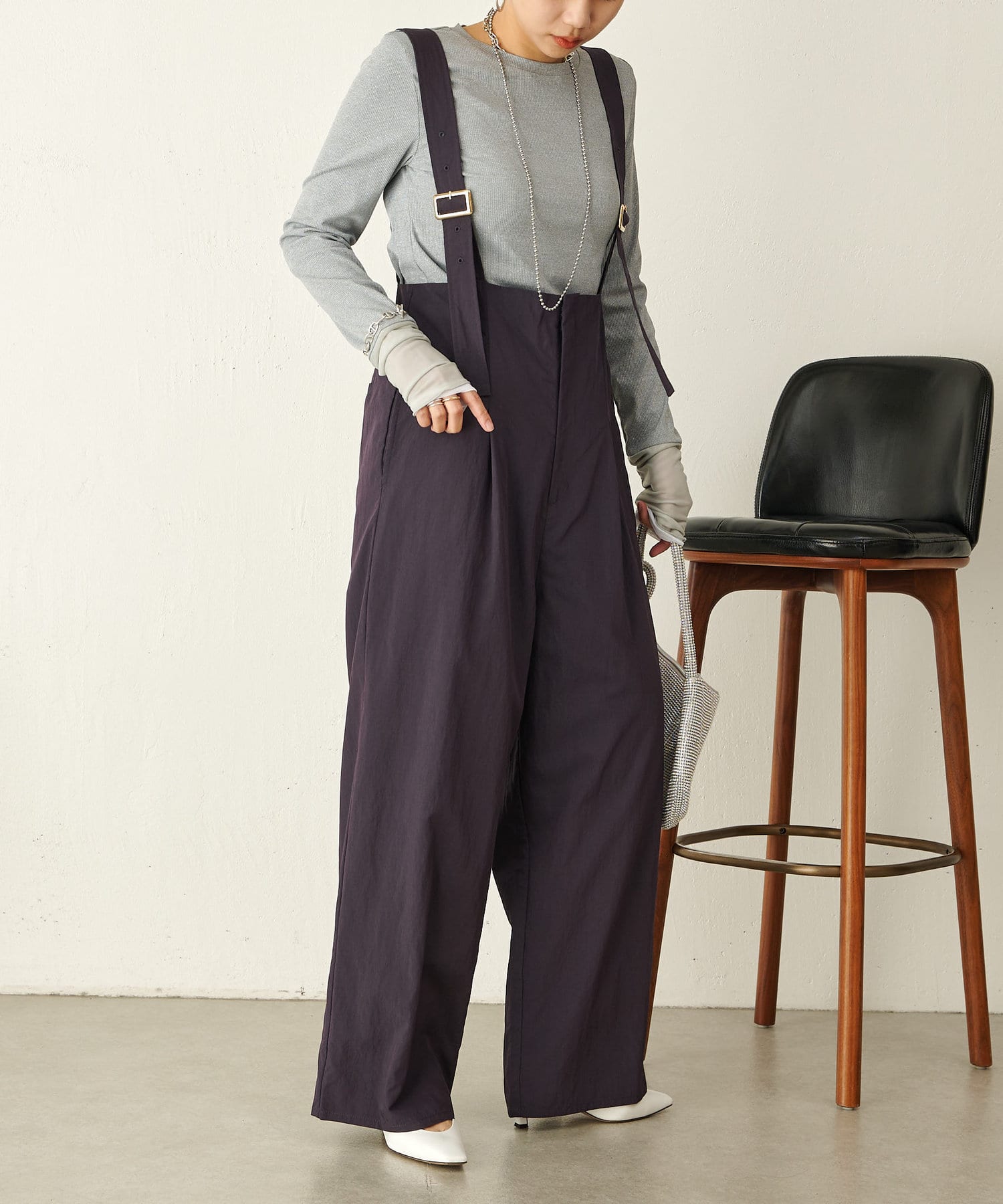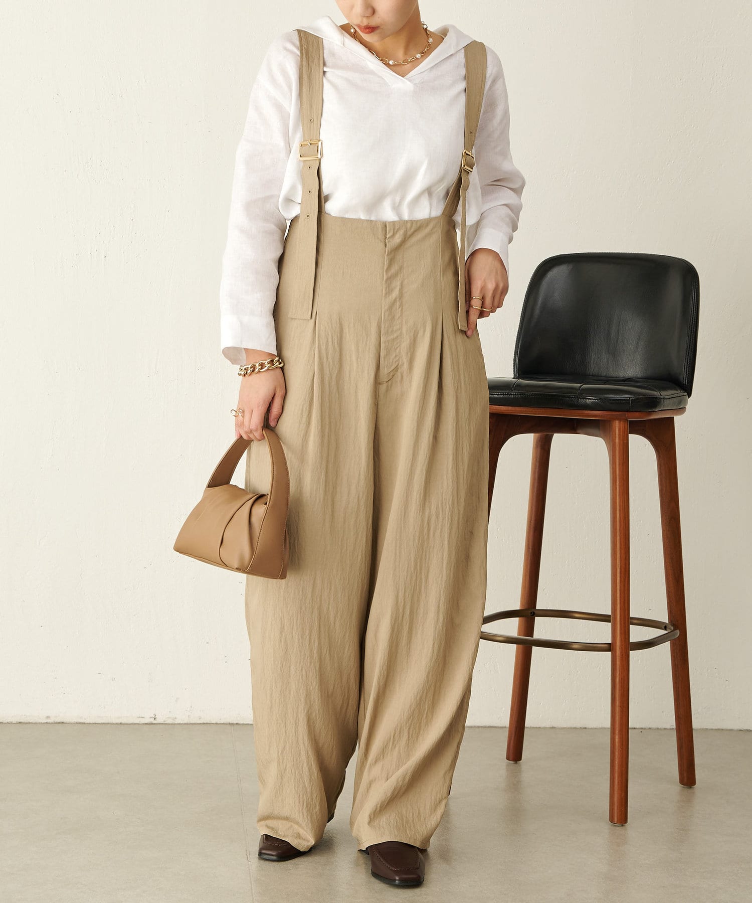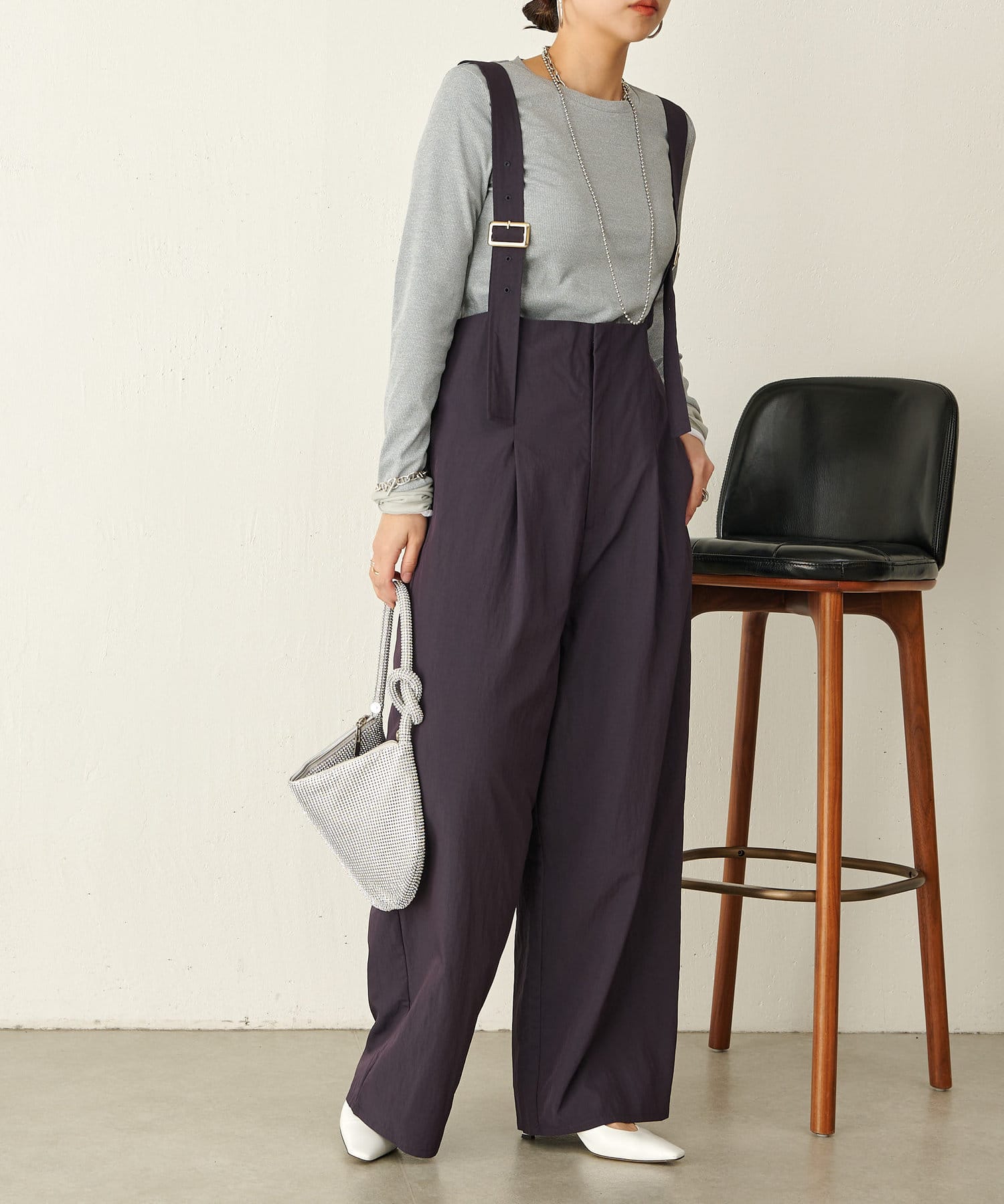・サスペンダーとハイウエストパンツの組み合わせがマニッシュなコーデにも◎