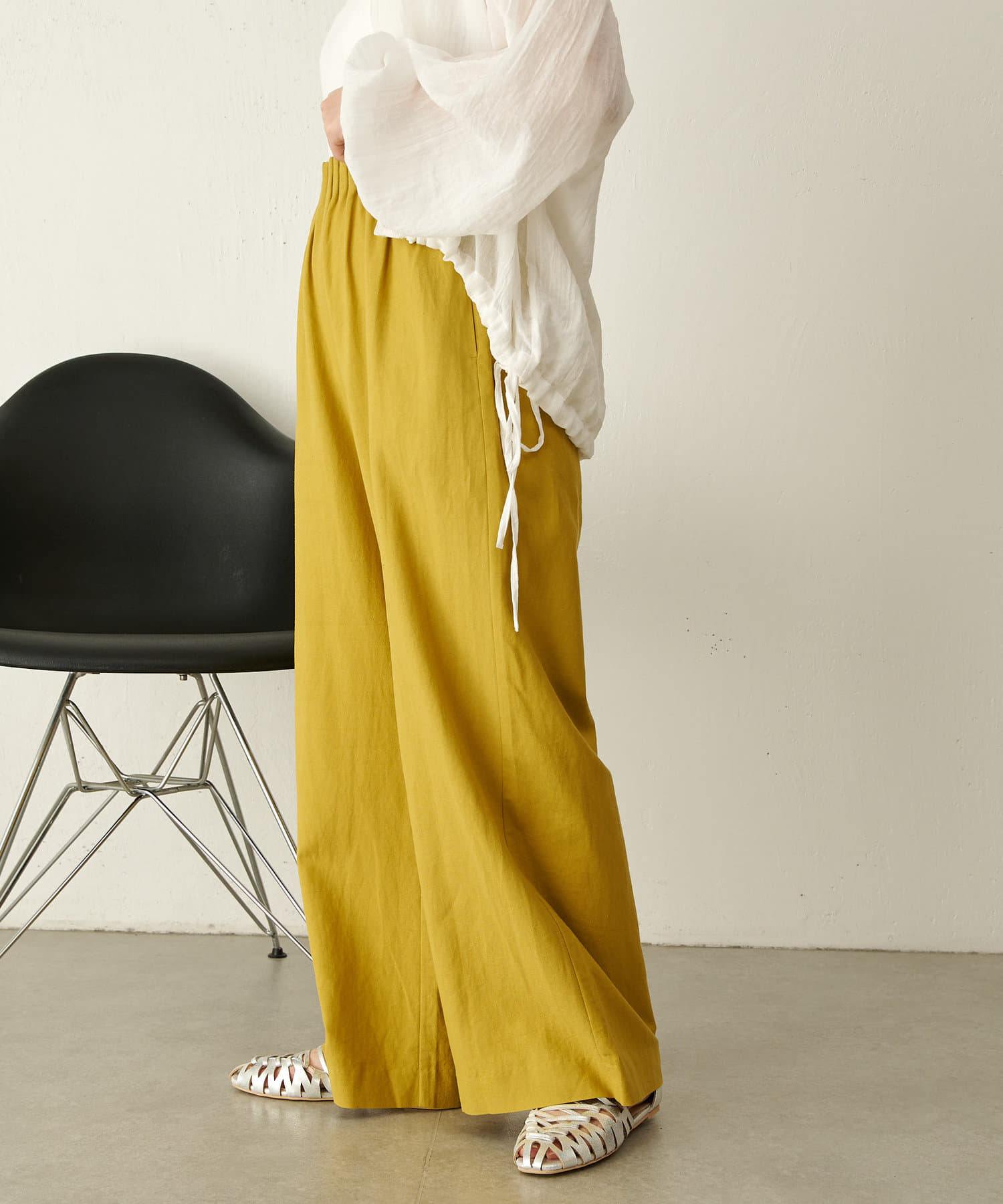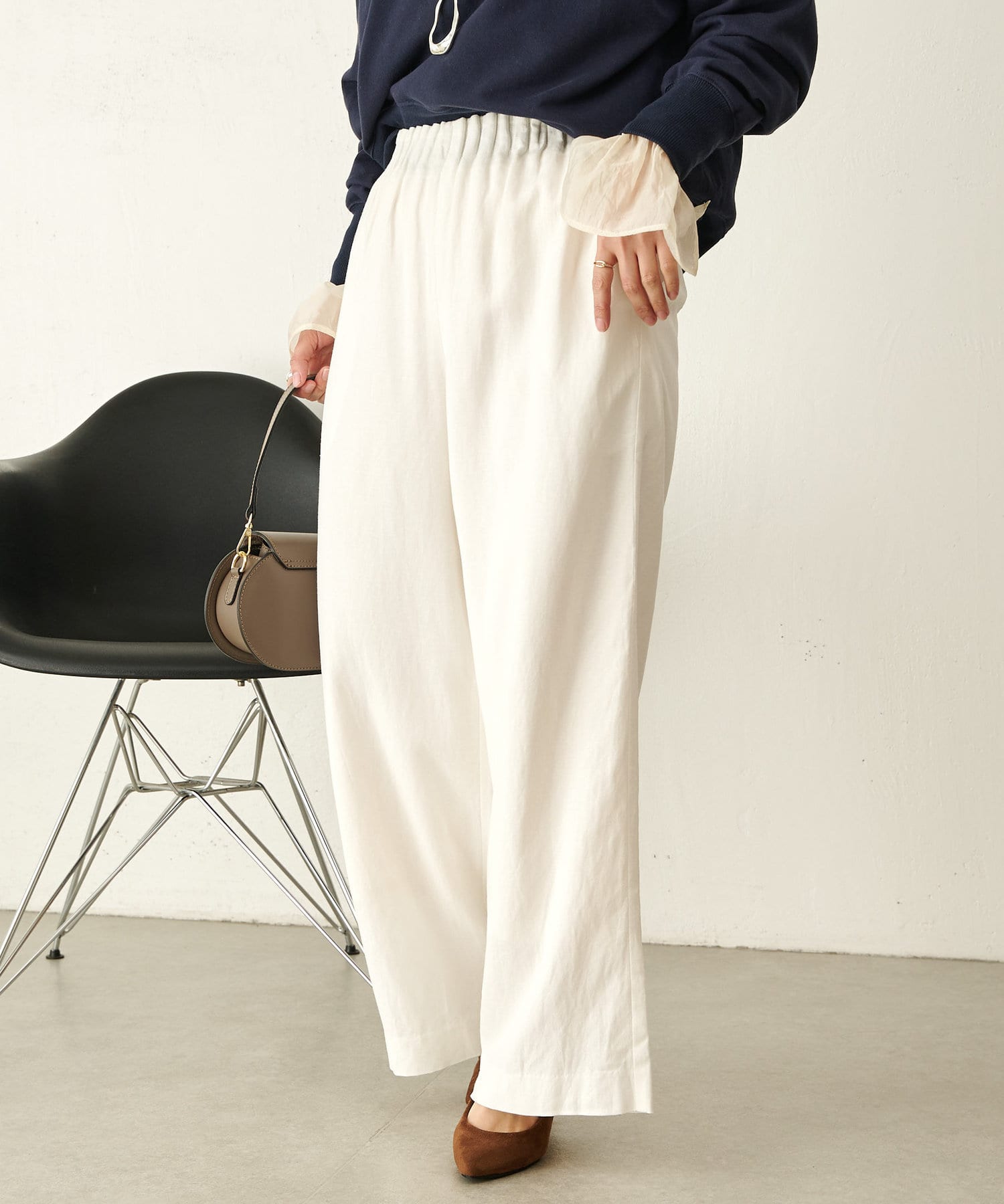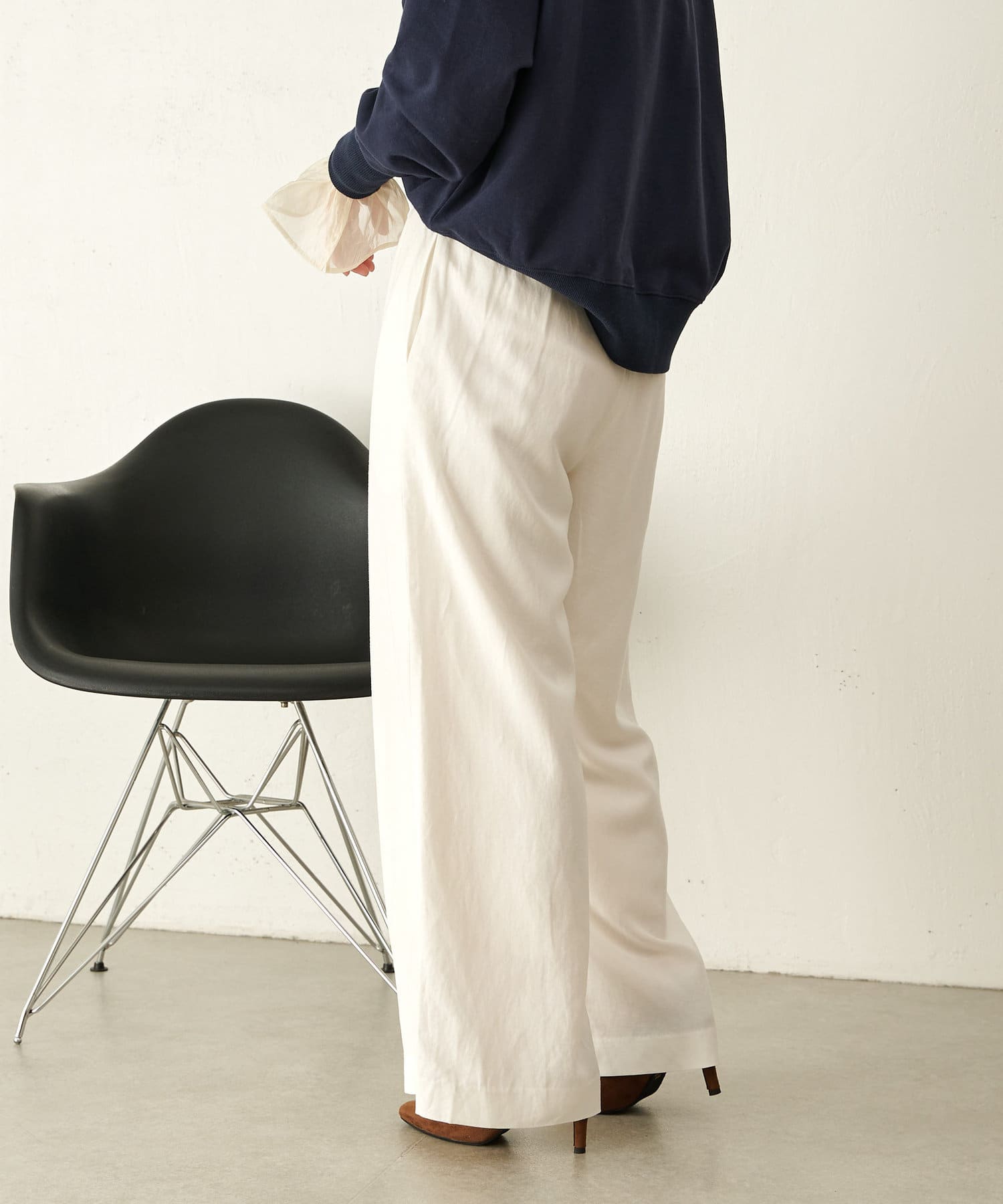 ・広がり過ぎない絶妙なワイドシルエットで、落ち感があるので履くだけでこなれ感が出せるパンツ。