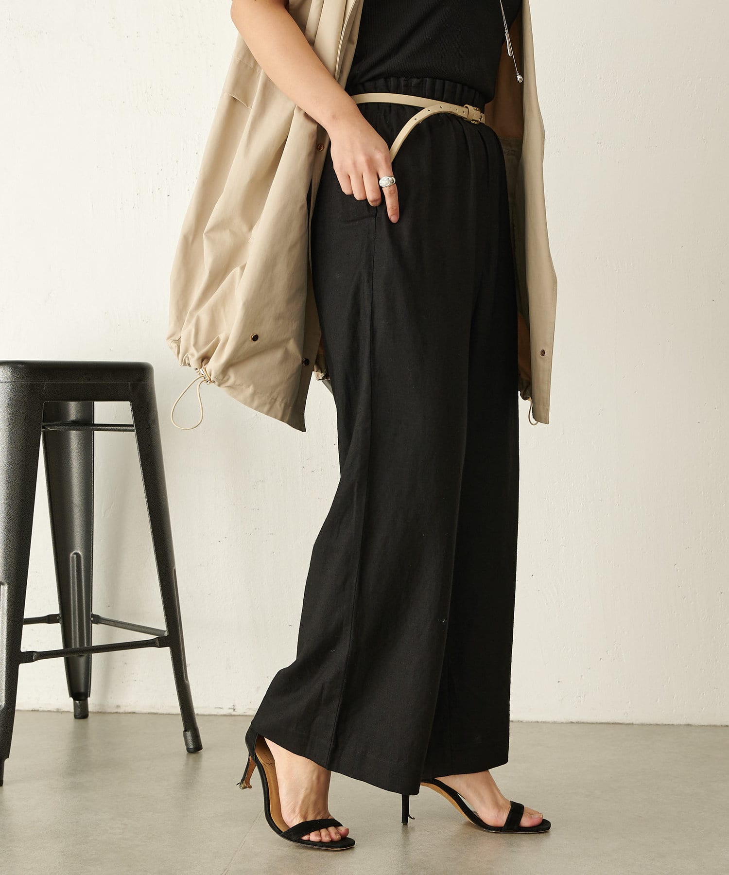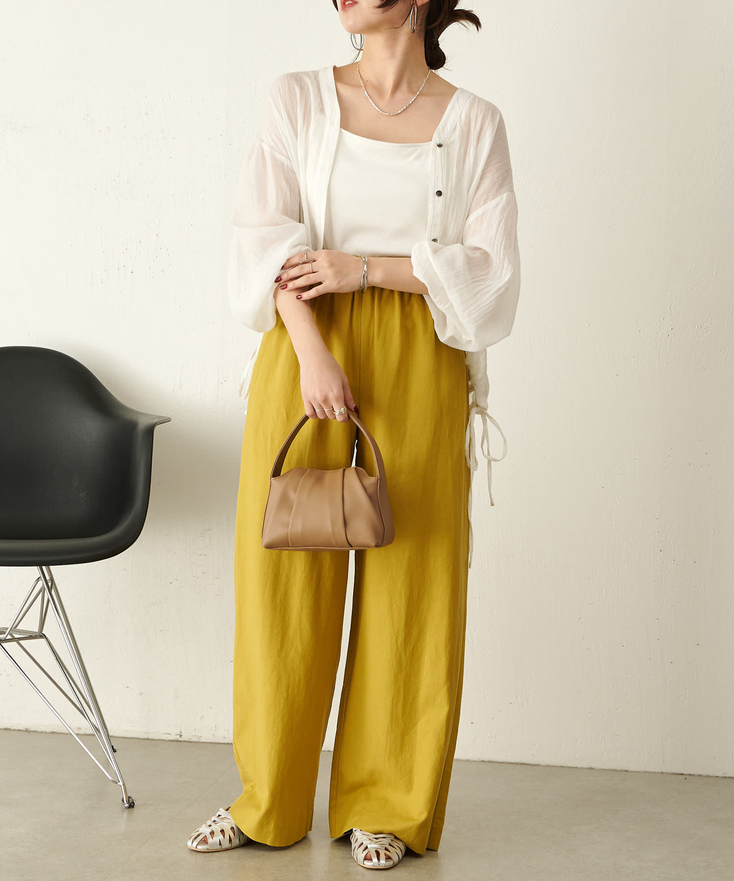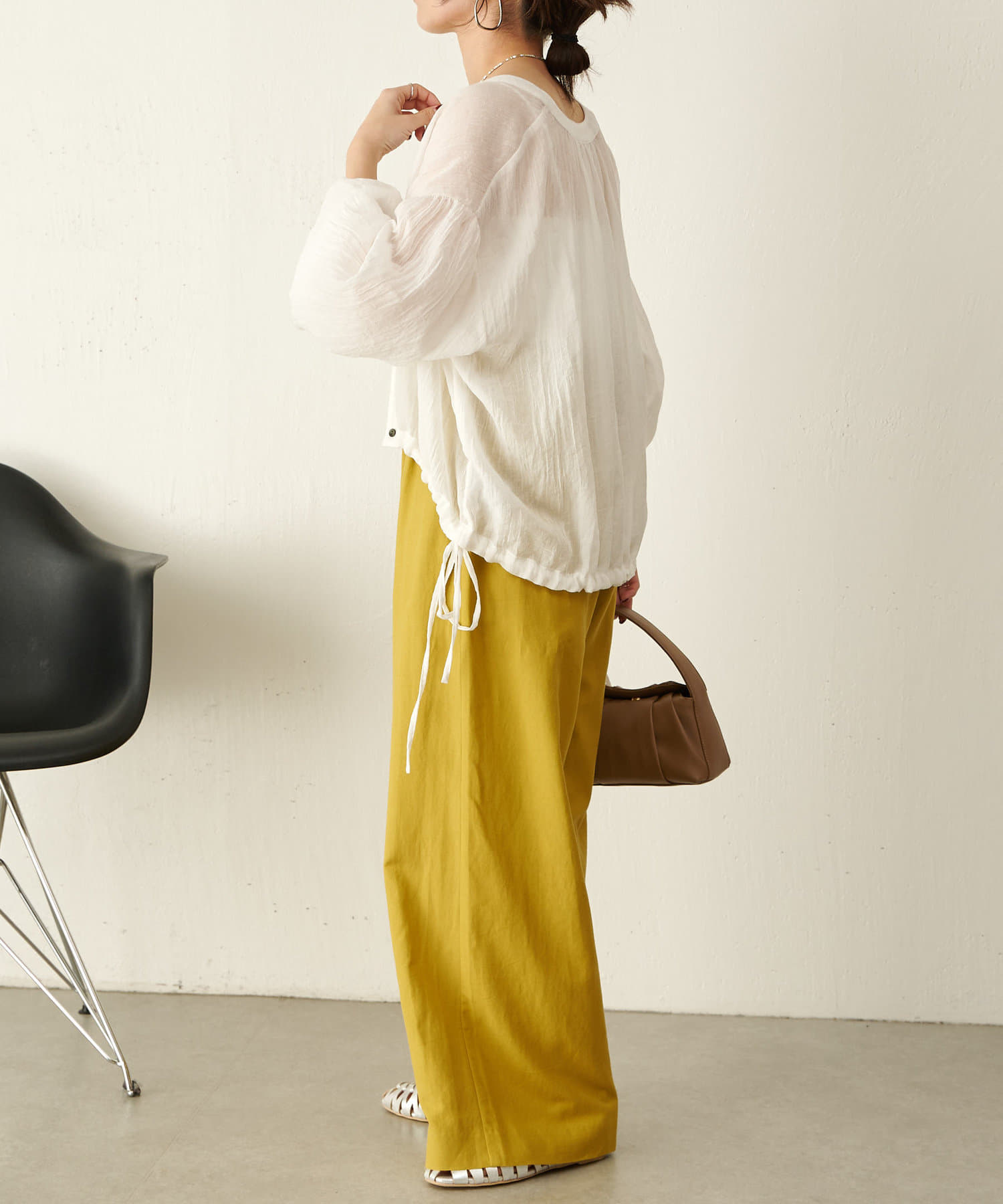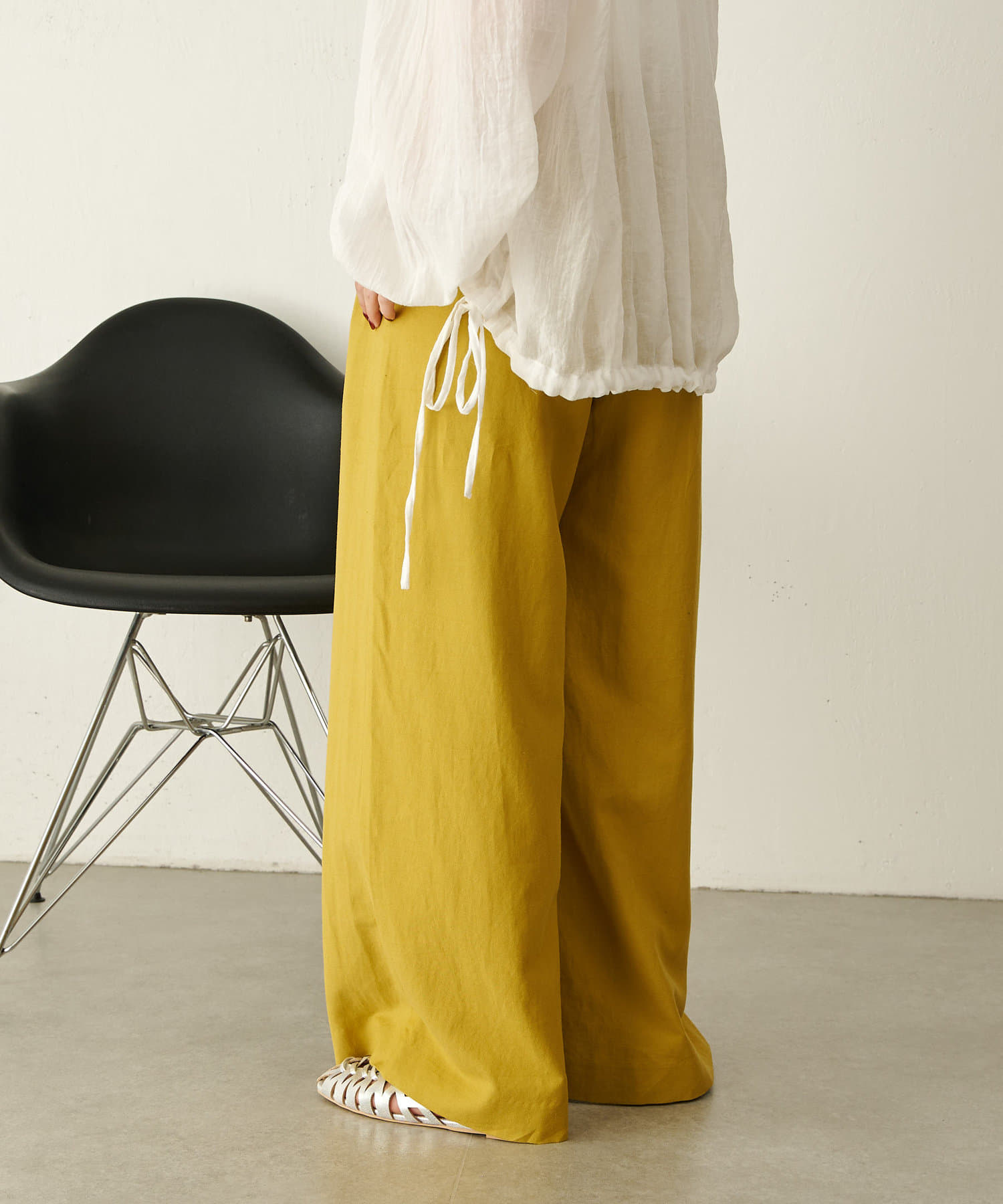 ・広がり過ぎない絶妙なワイドシルエットで、落ち感があるので履くだけでこなれ感が出せるパンツ。
