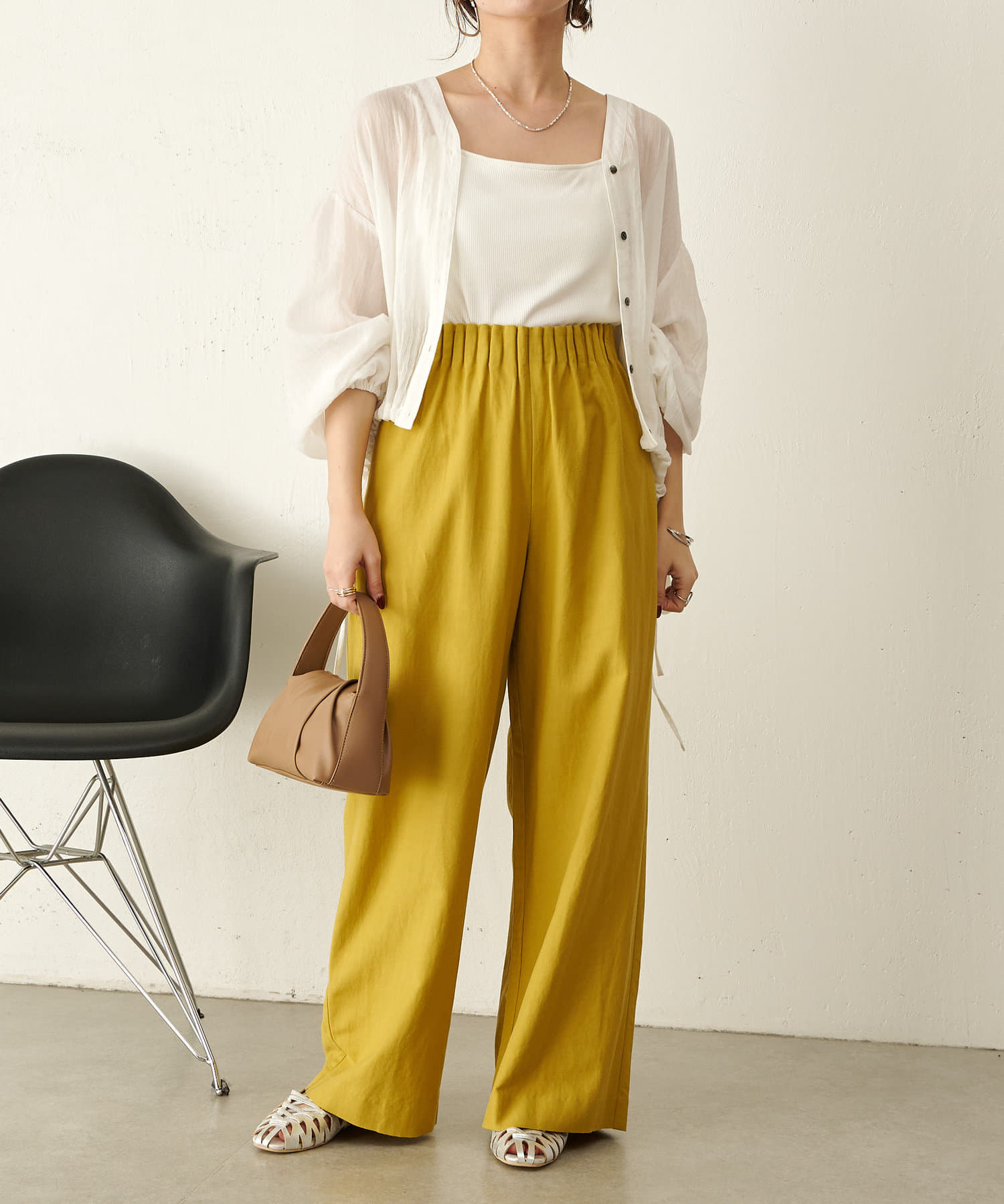 ・清涼感のあるリネン素材で、さらっとしていてまとわりつかずこれからの時期も大活躍間違いなし!