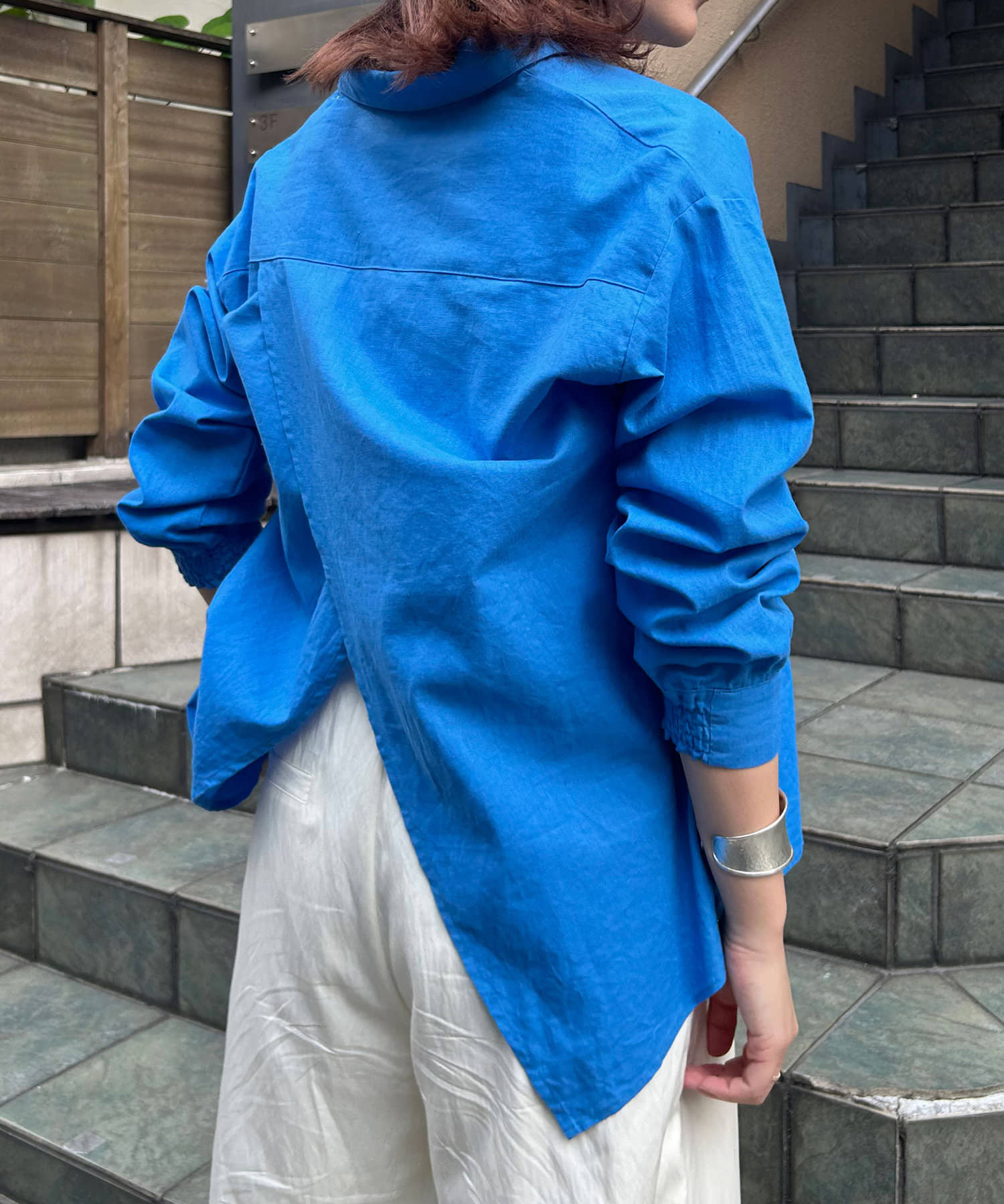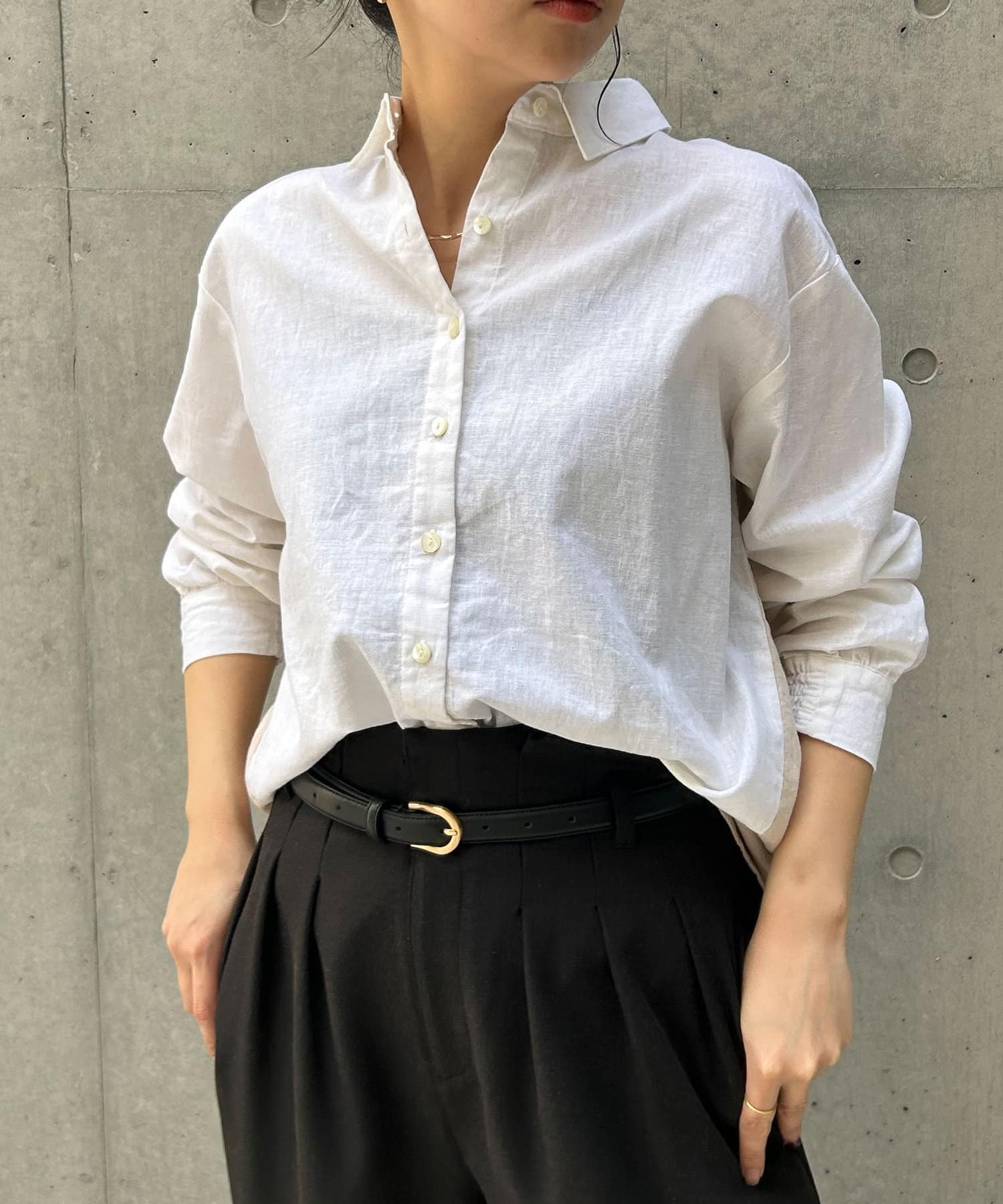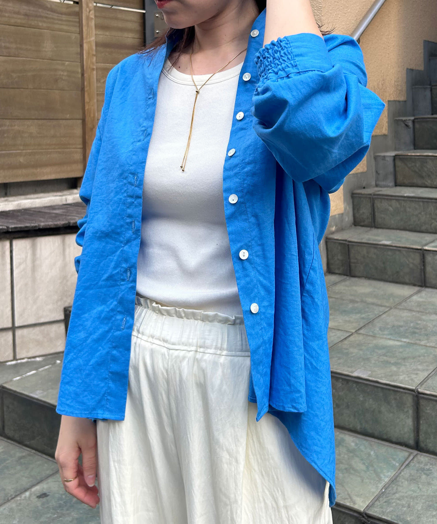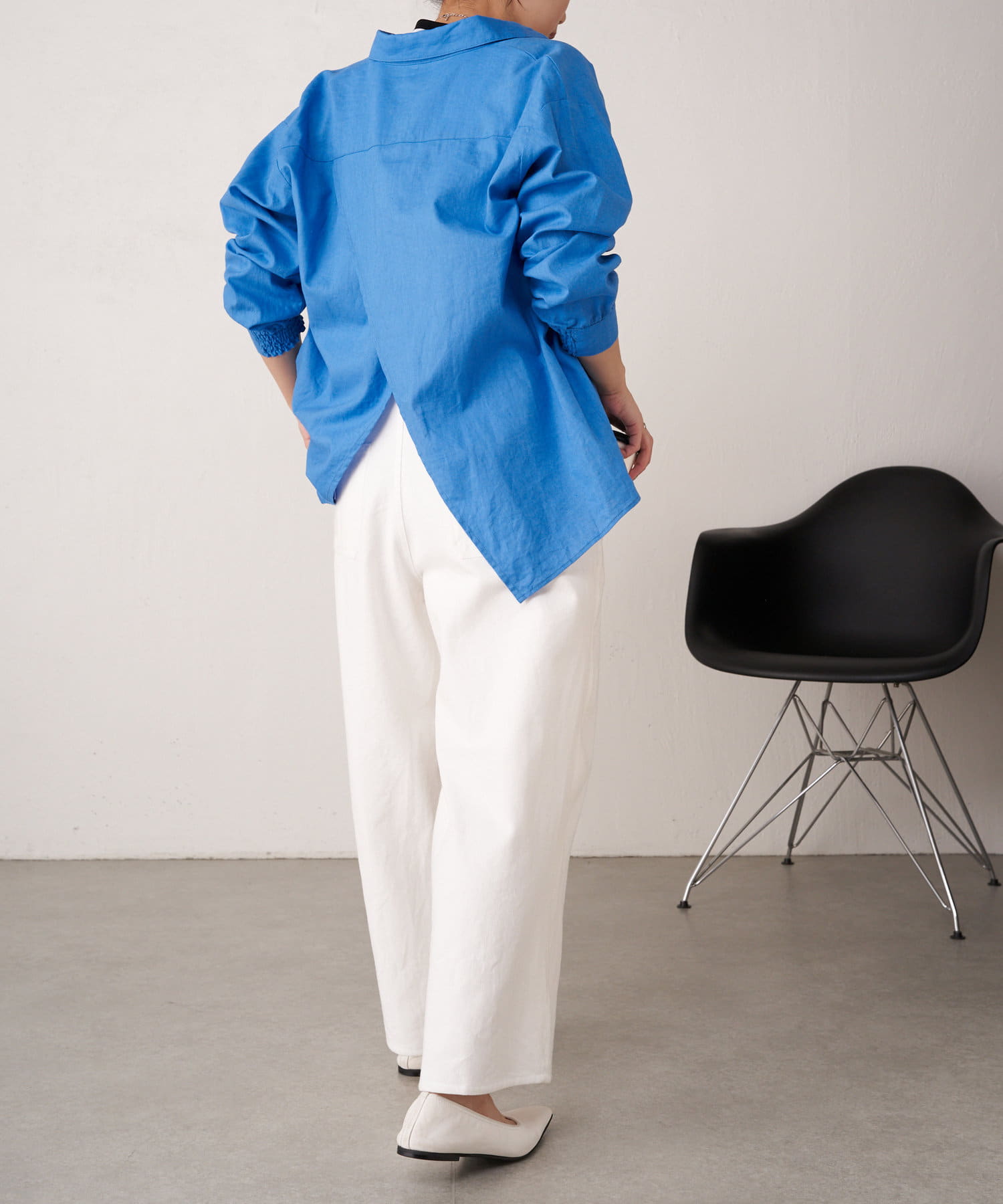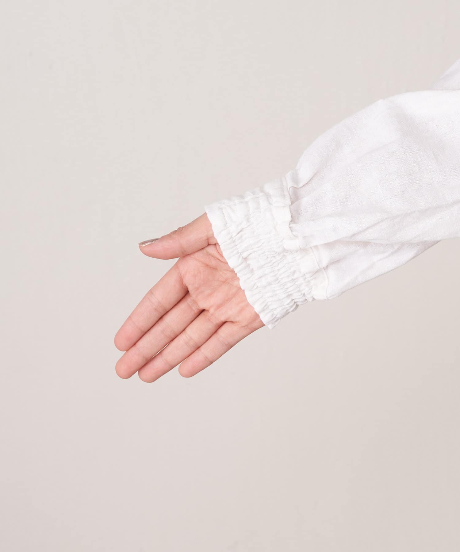 ・袖のシャーリングは、デザインポイントとして目を惹くだけでなくまくった時にストレスなく止まります。