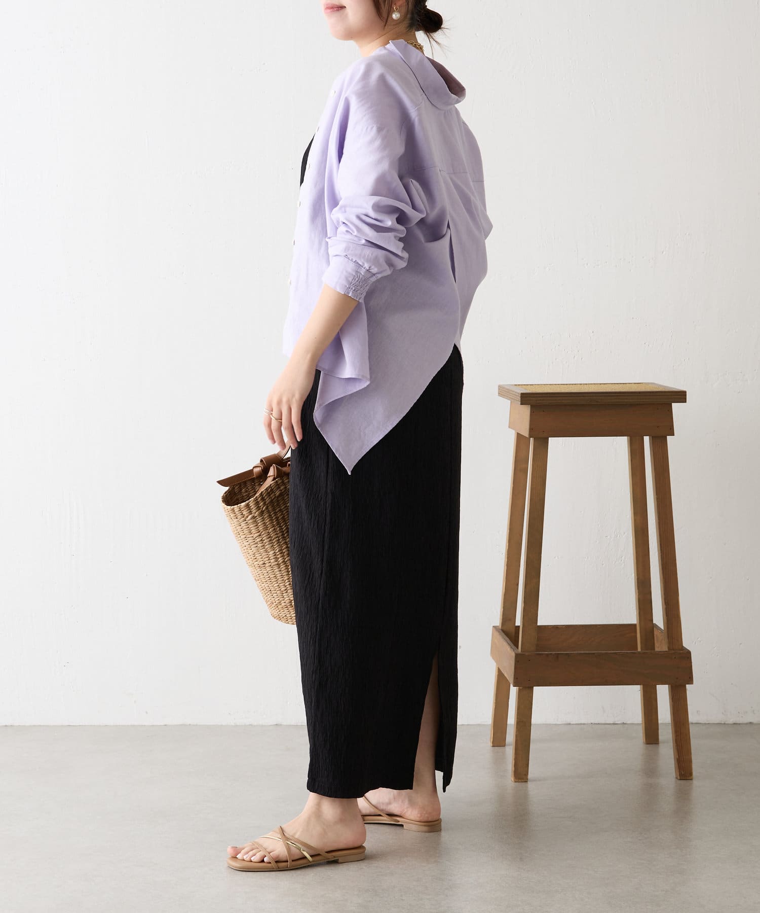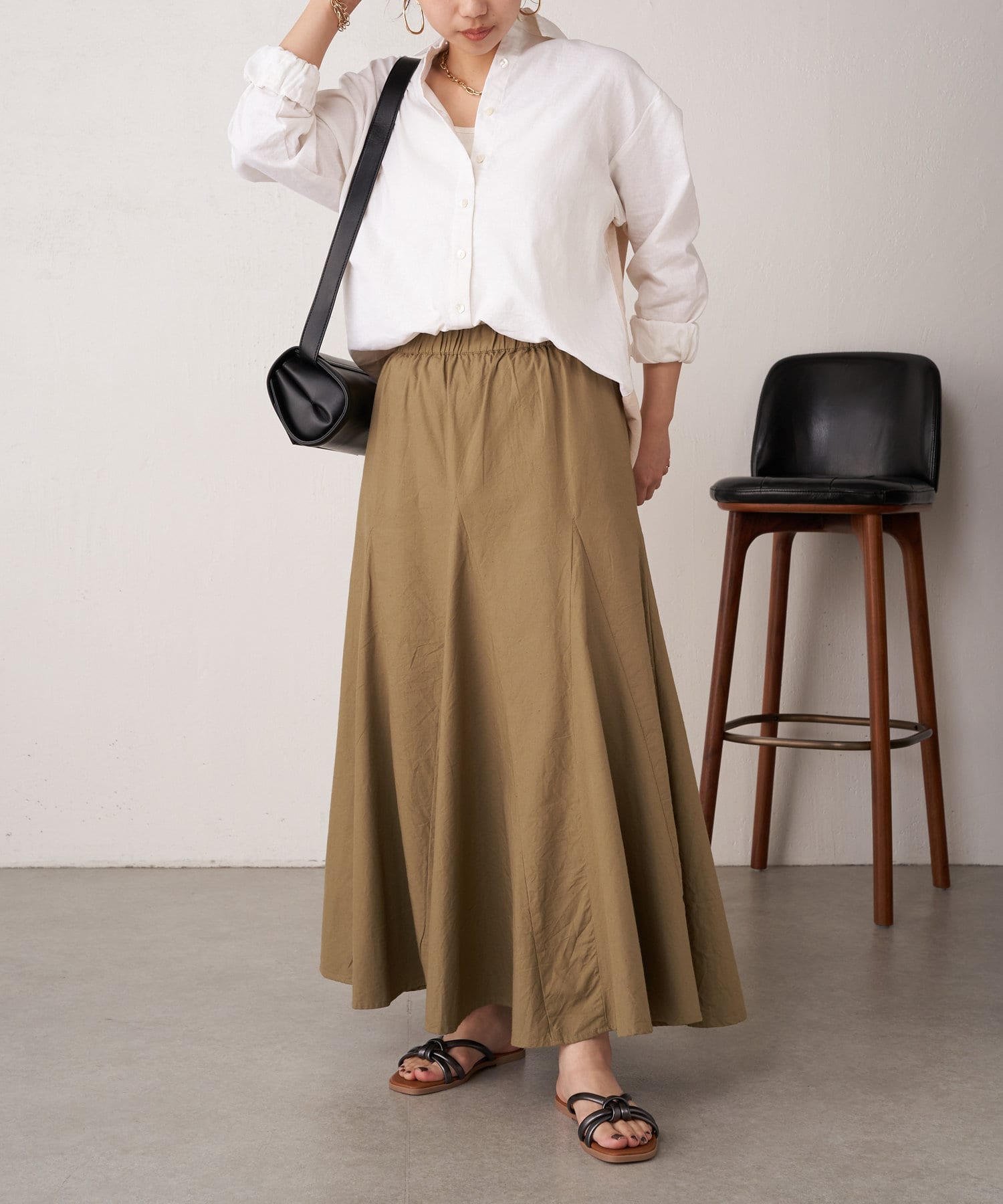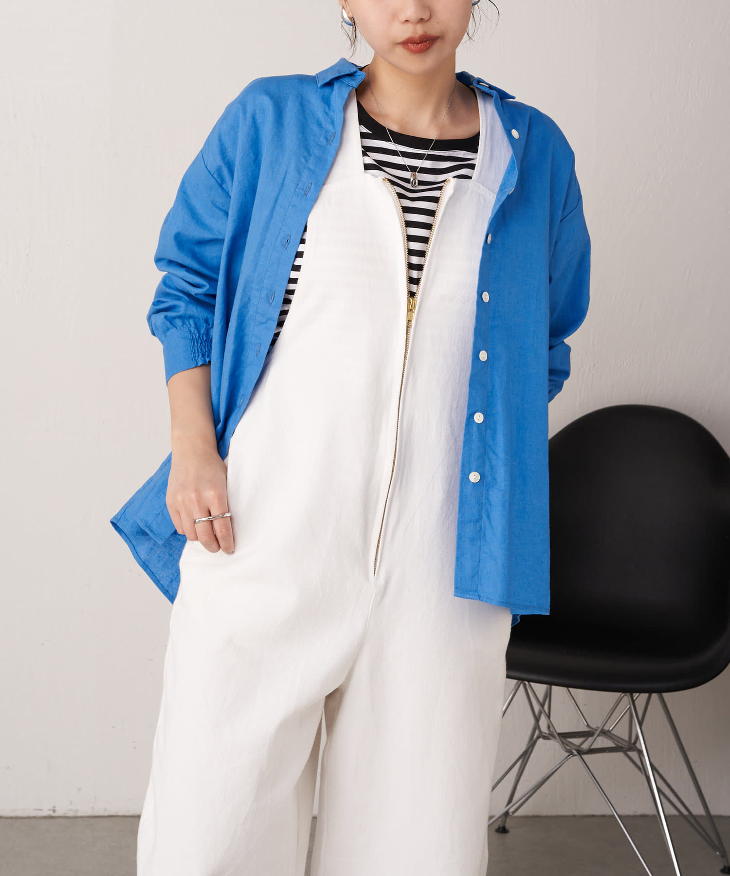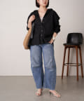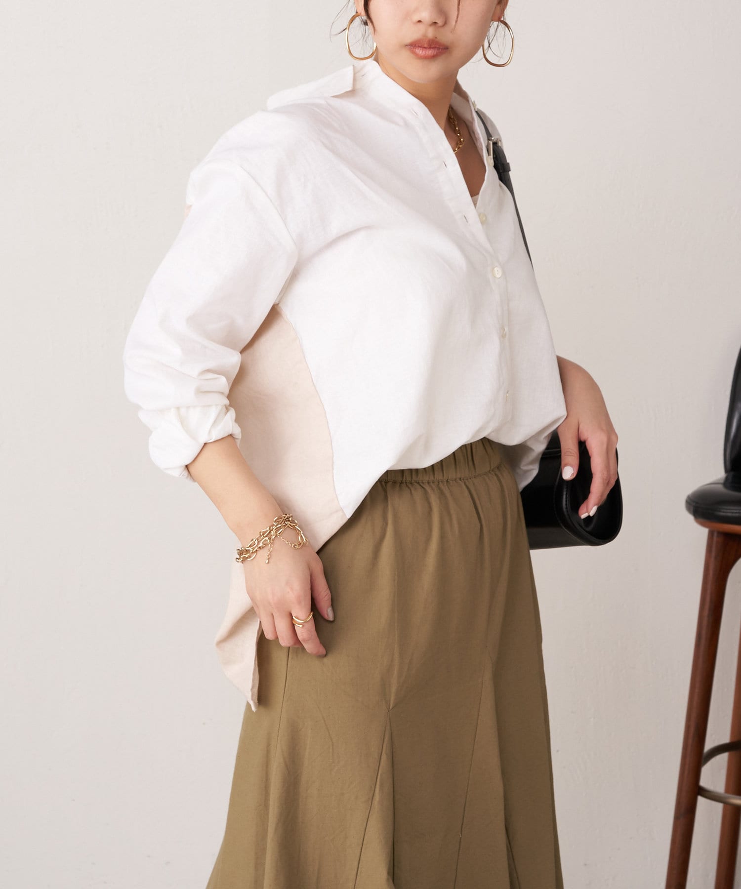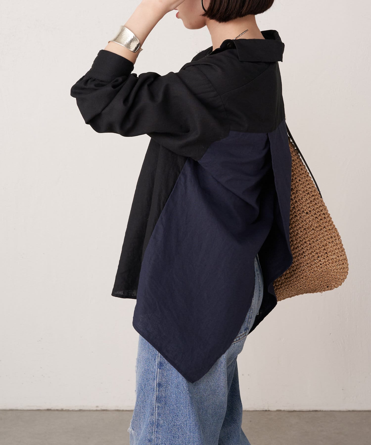 ・袖のシャーリングは、デザインポイントとして目を惹くだけでなくまくった時にストレスなく止まります。