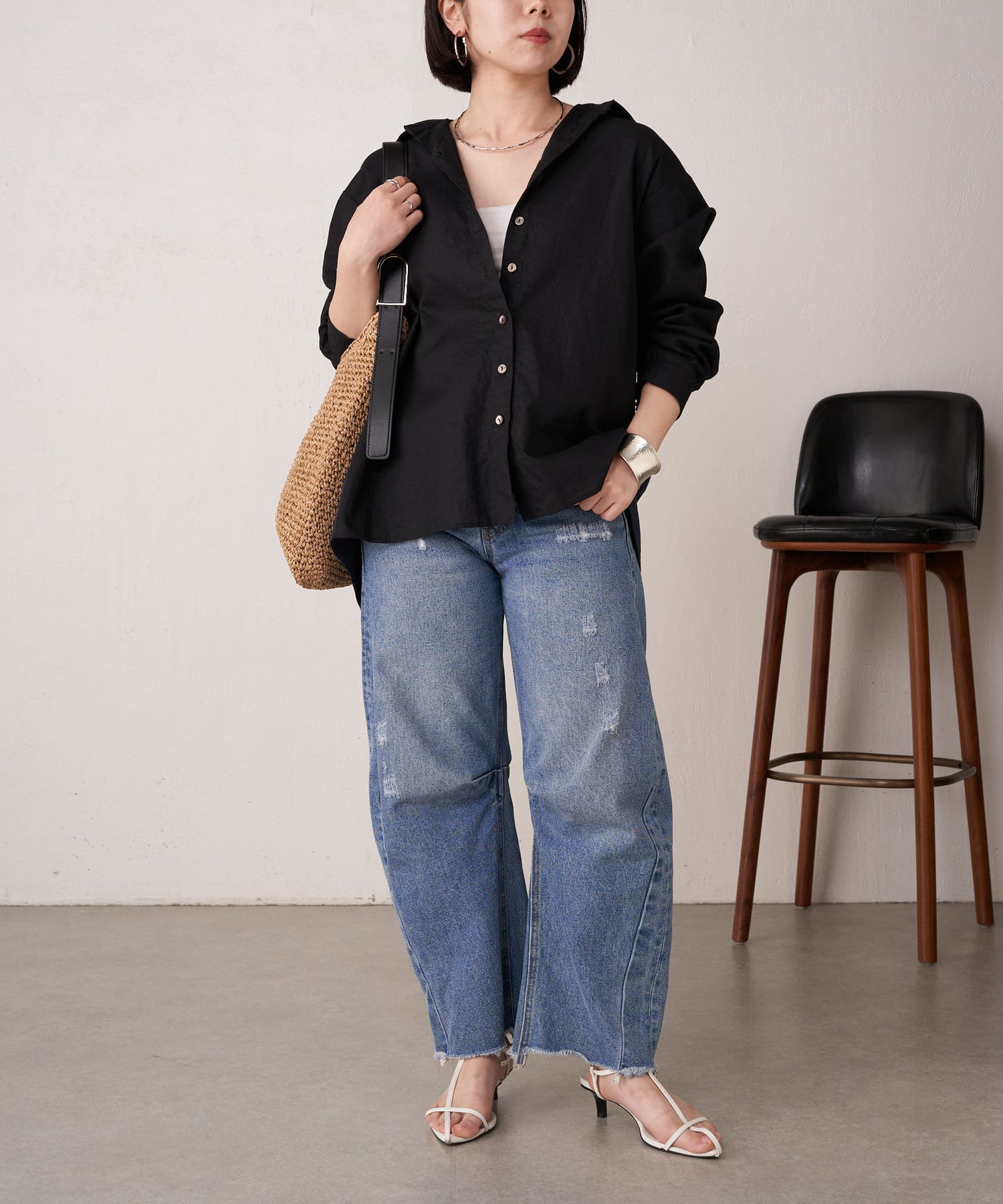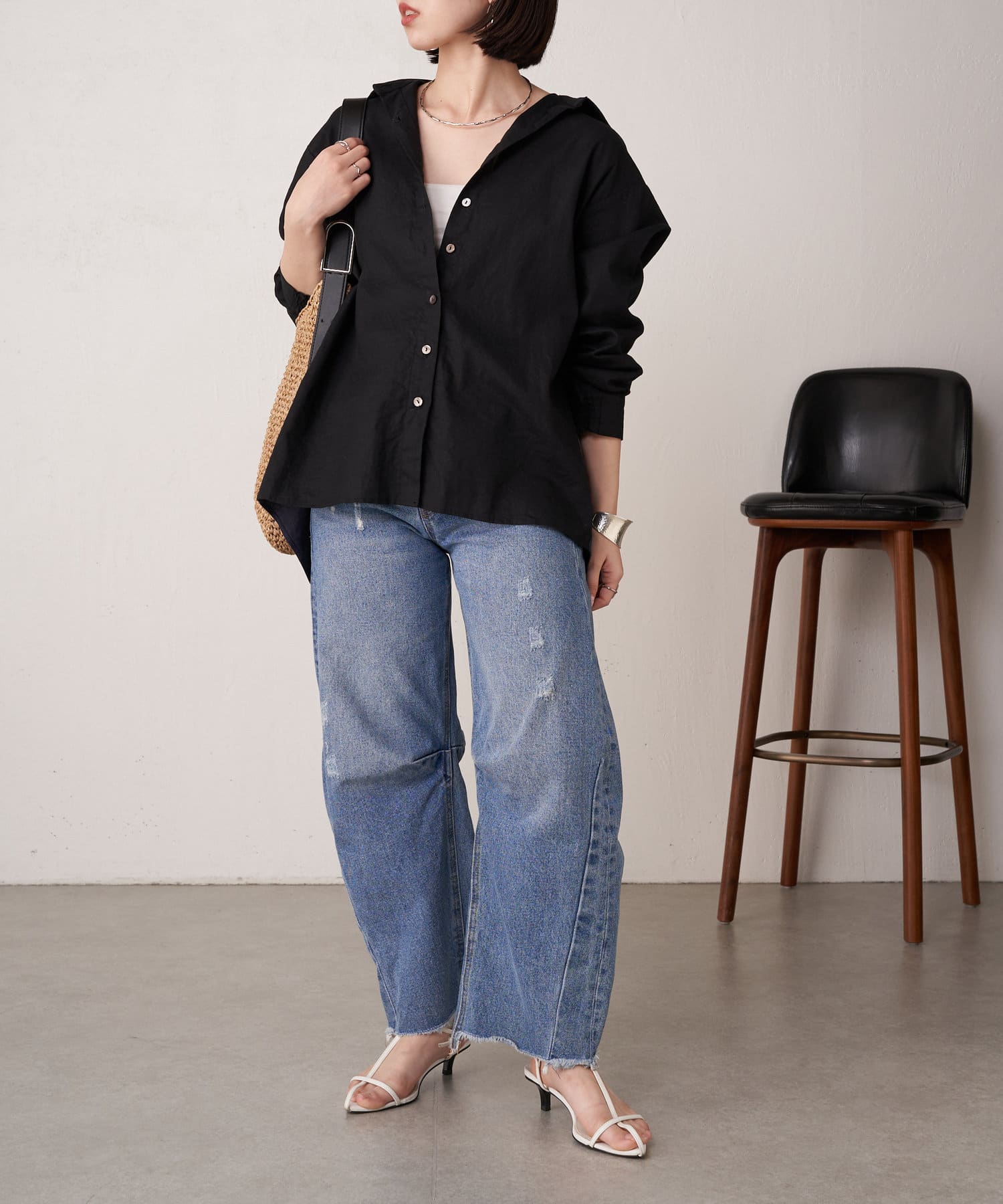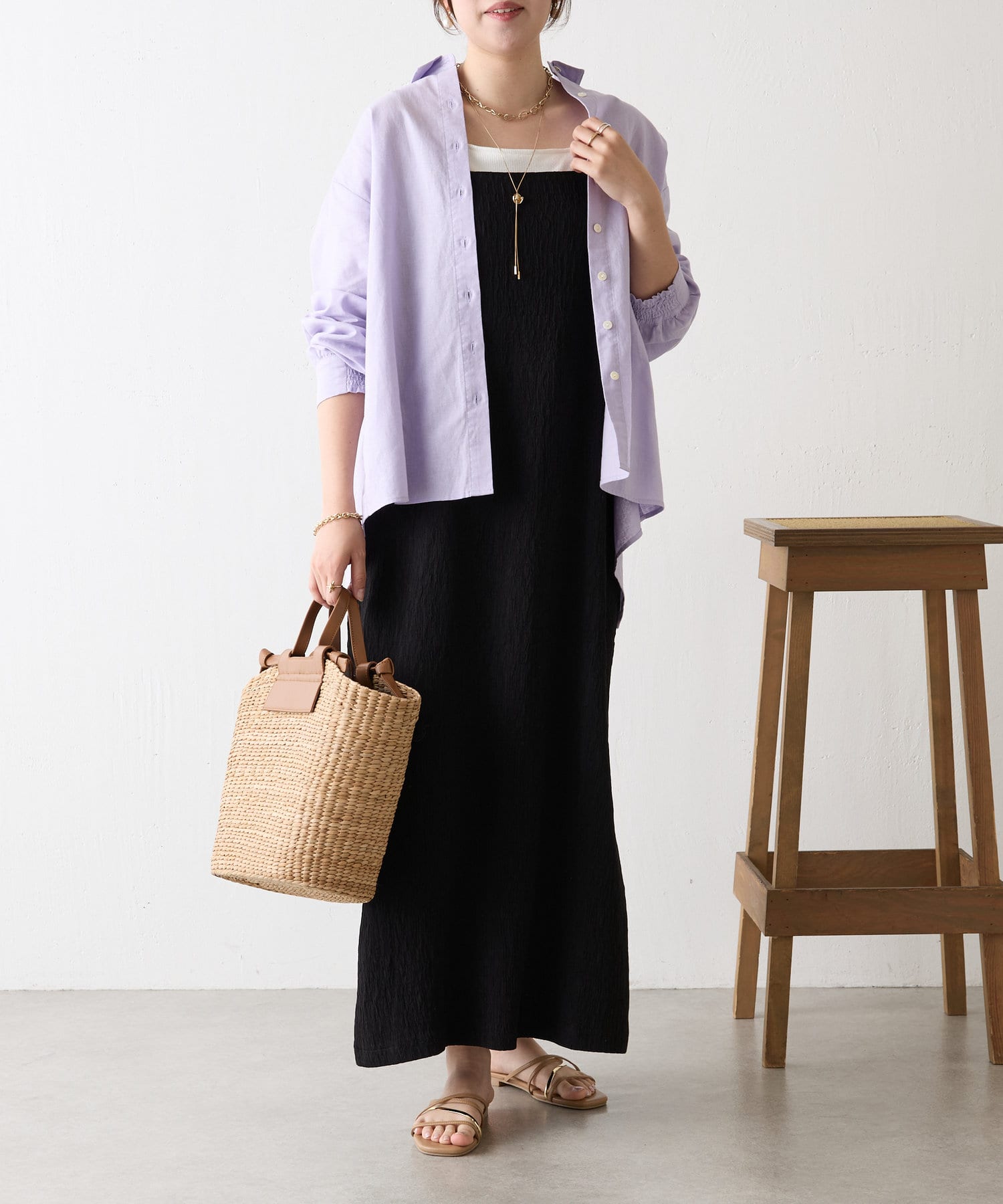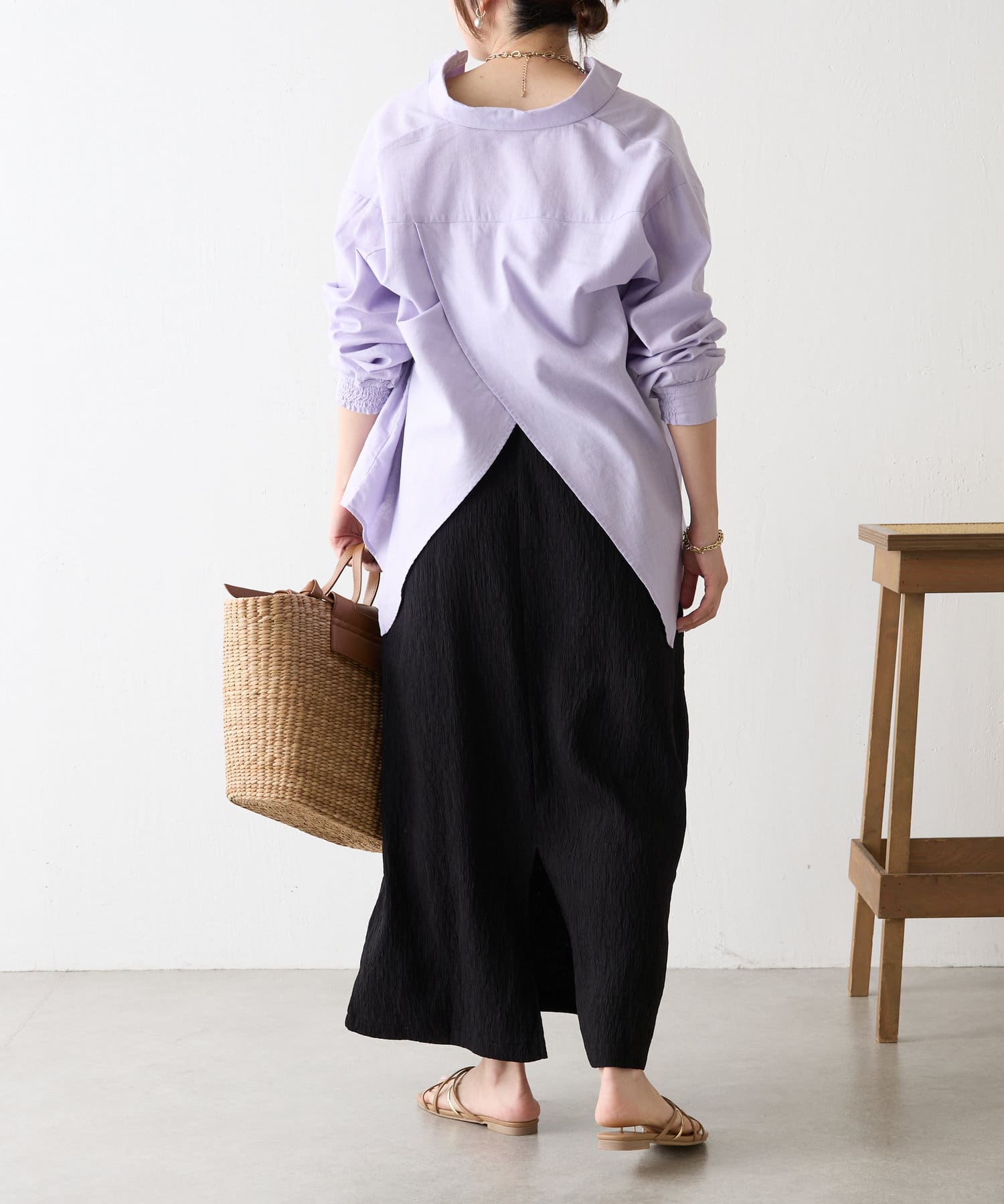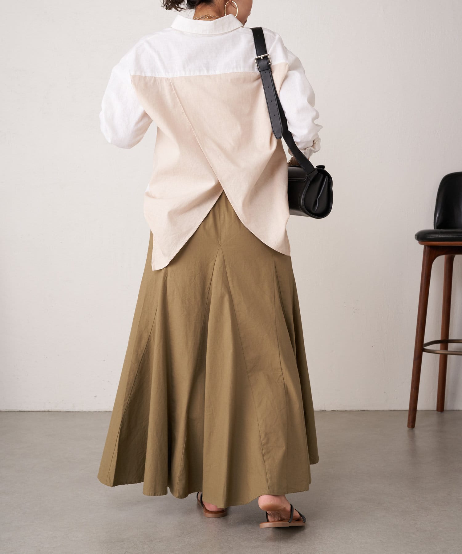 ・シンプルながらもバッククロスデザインが、スタイリングのアクセントに。
