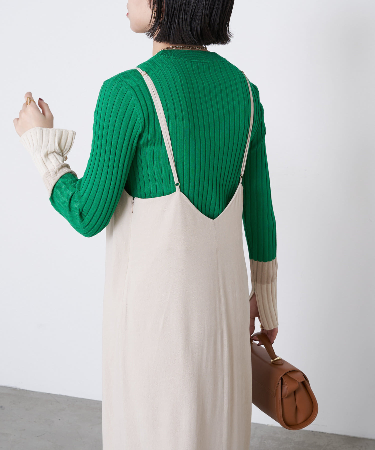 ・袖の配色とスリットが他にはないデザインで、シャツやジレを羽織って袖口をチラ見せするとオシャレ度UP◎