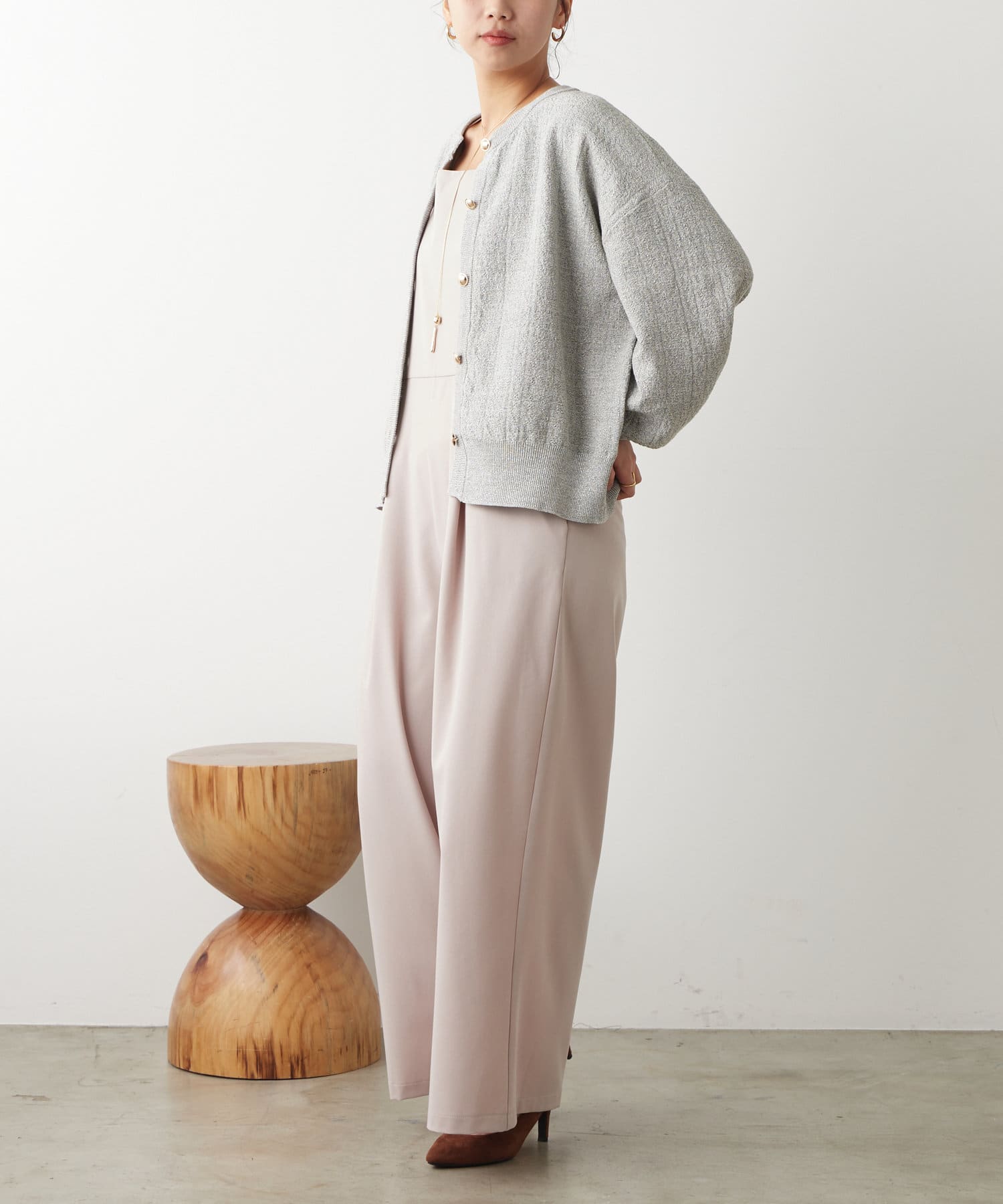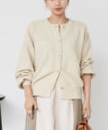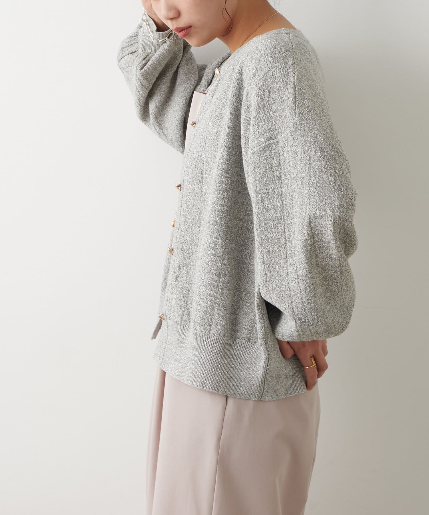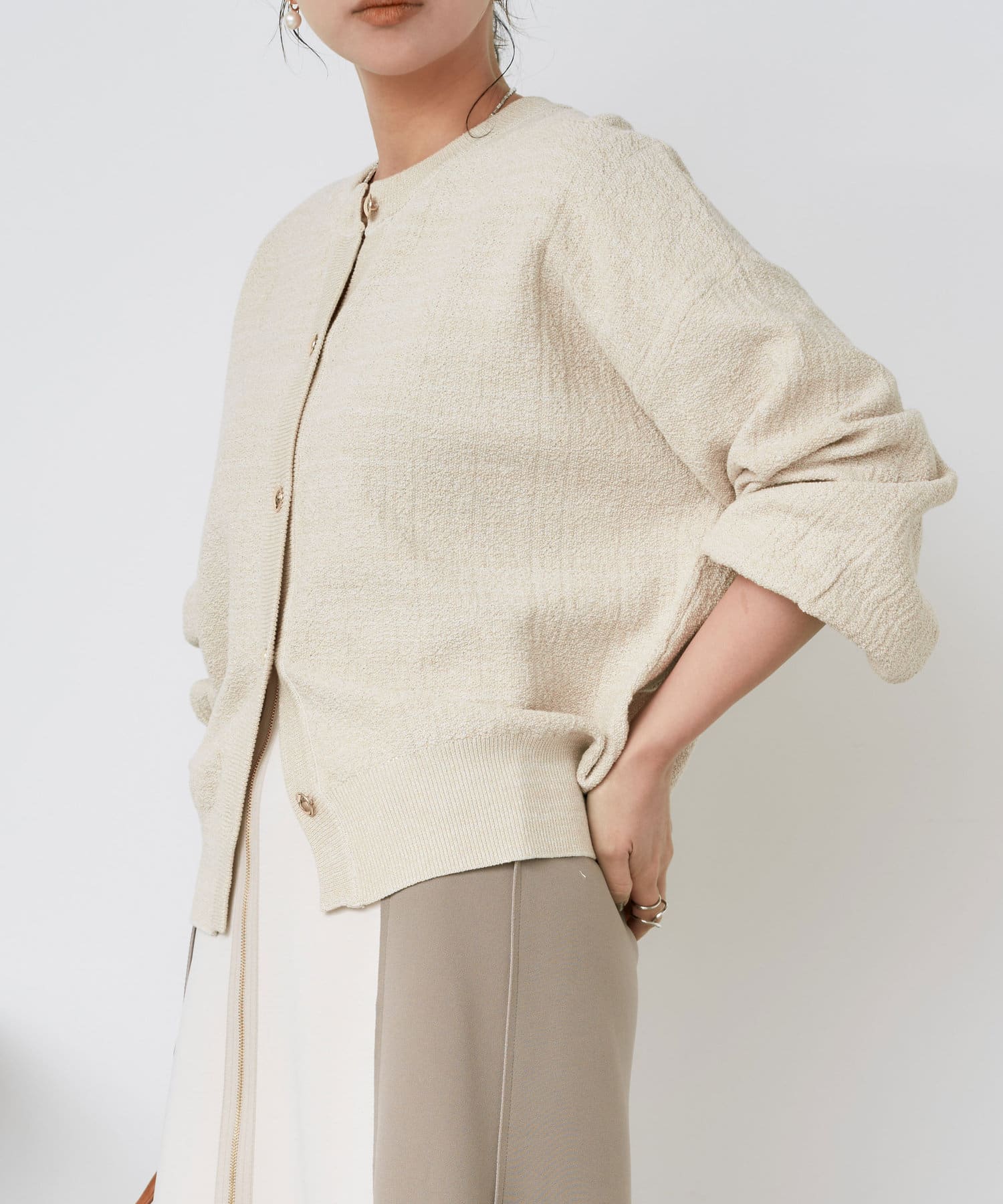 ・形はベーシックな丸首カーディガンになっているので、普段のスタイリングに取り入れやすいシルエットです。