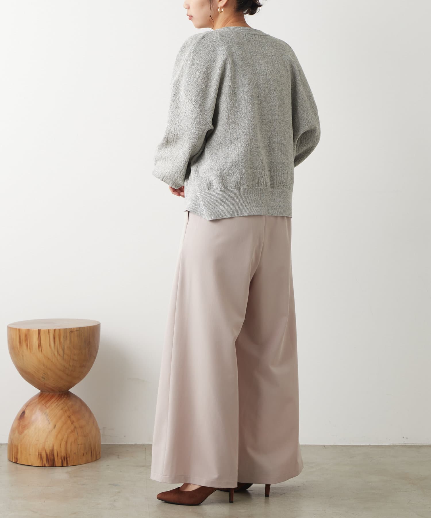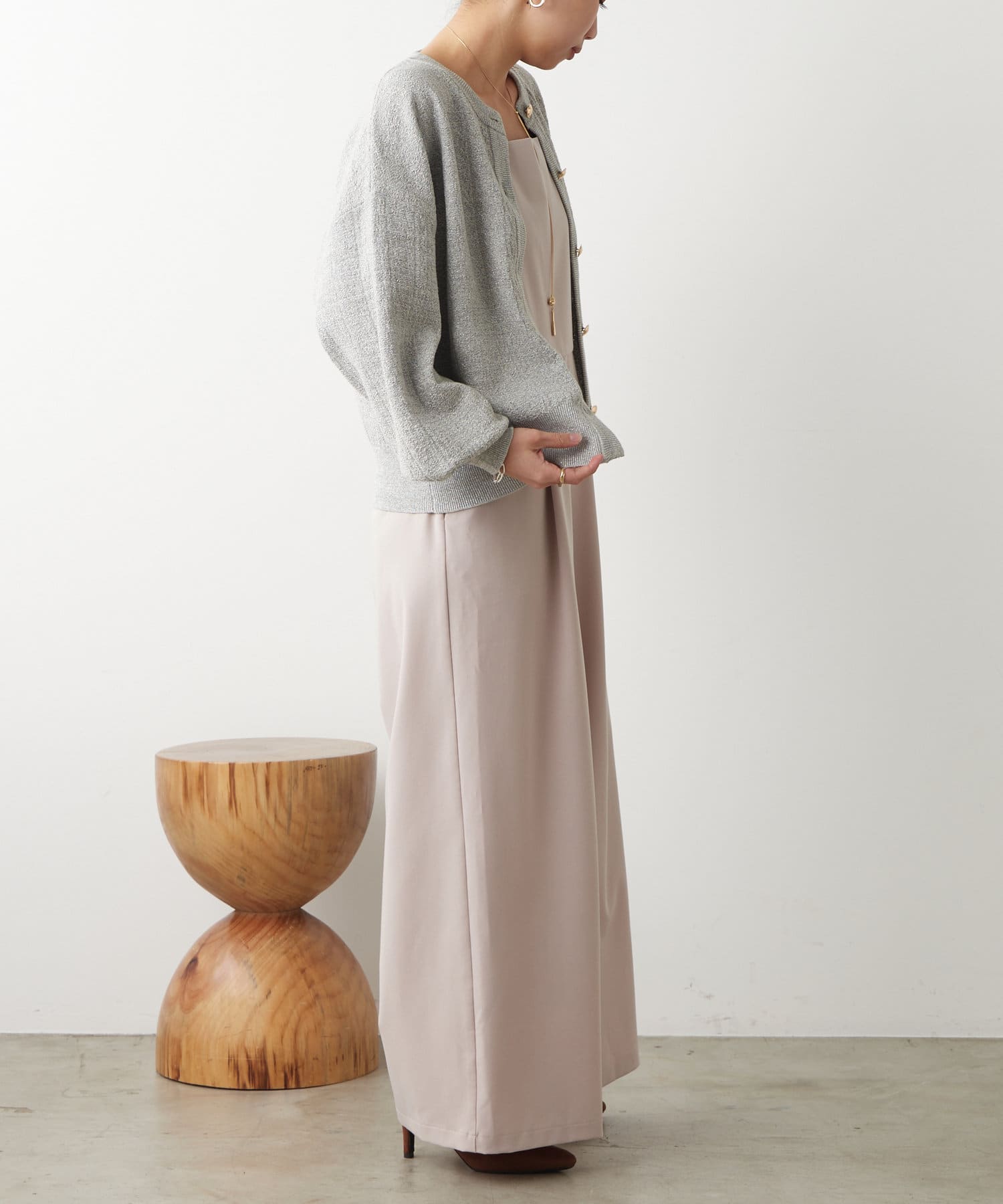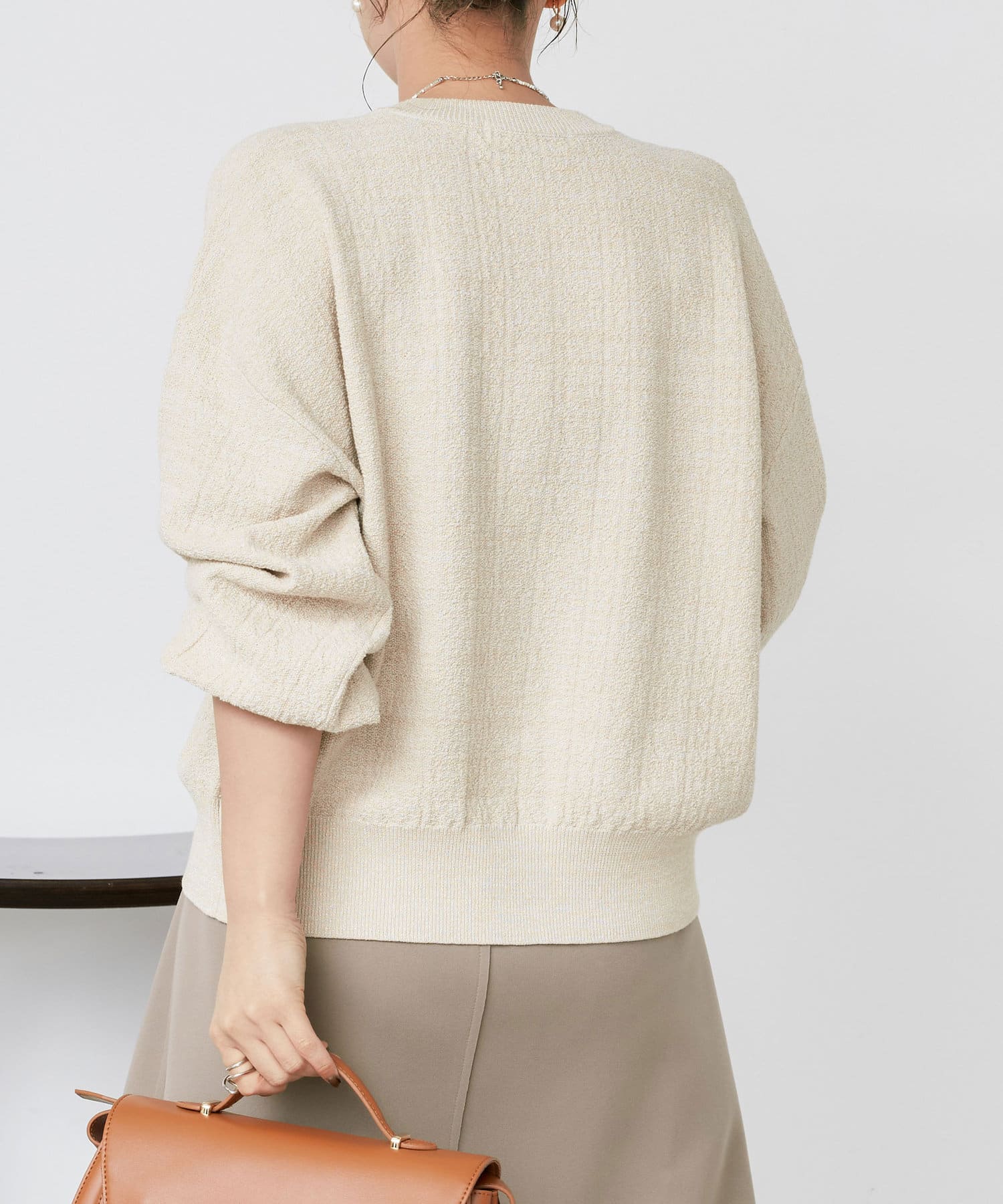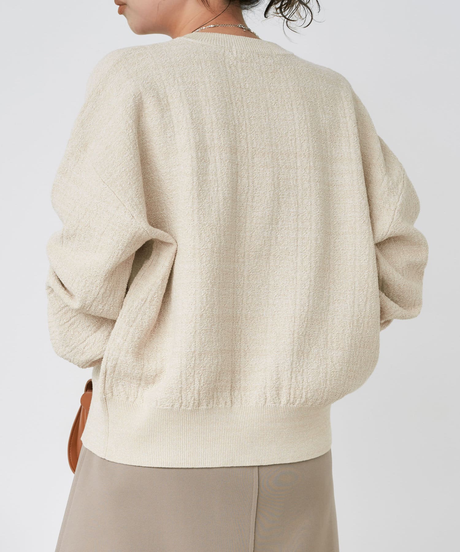 ・形はベーシックな丸首カーディガンになっているので、普段のスタイリングに取り入れやすいシルエットです。