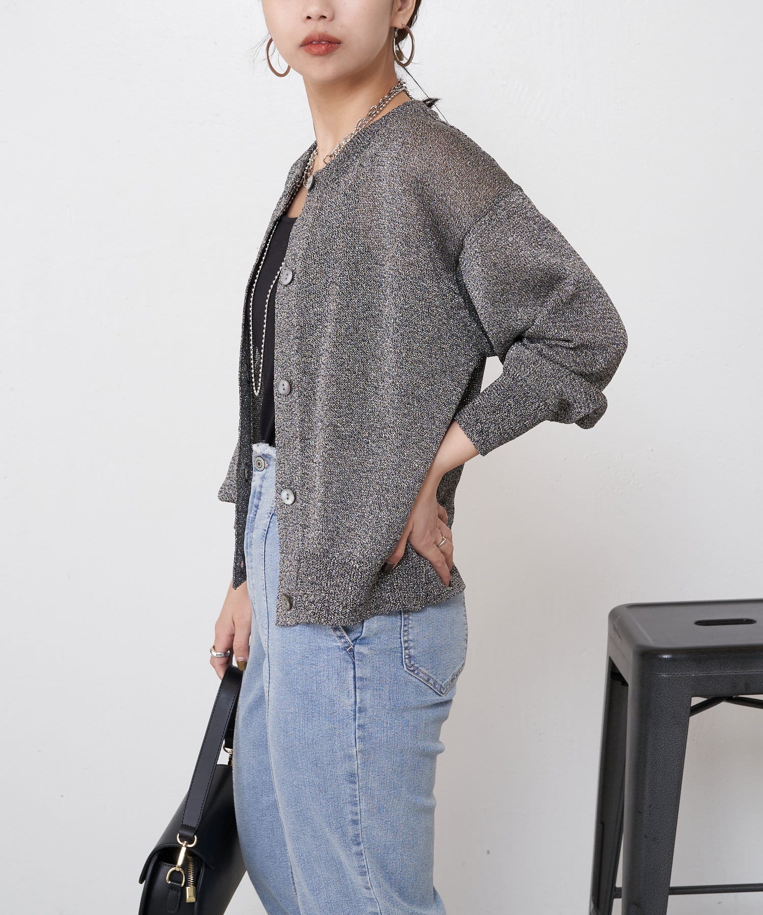 ・コーデを華やかにしてくれるトレンドのラメニットカーディガン。