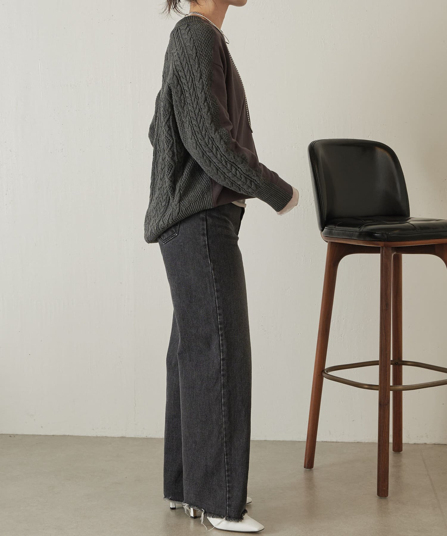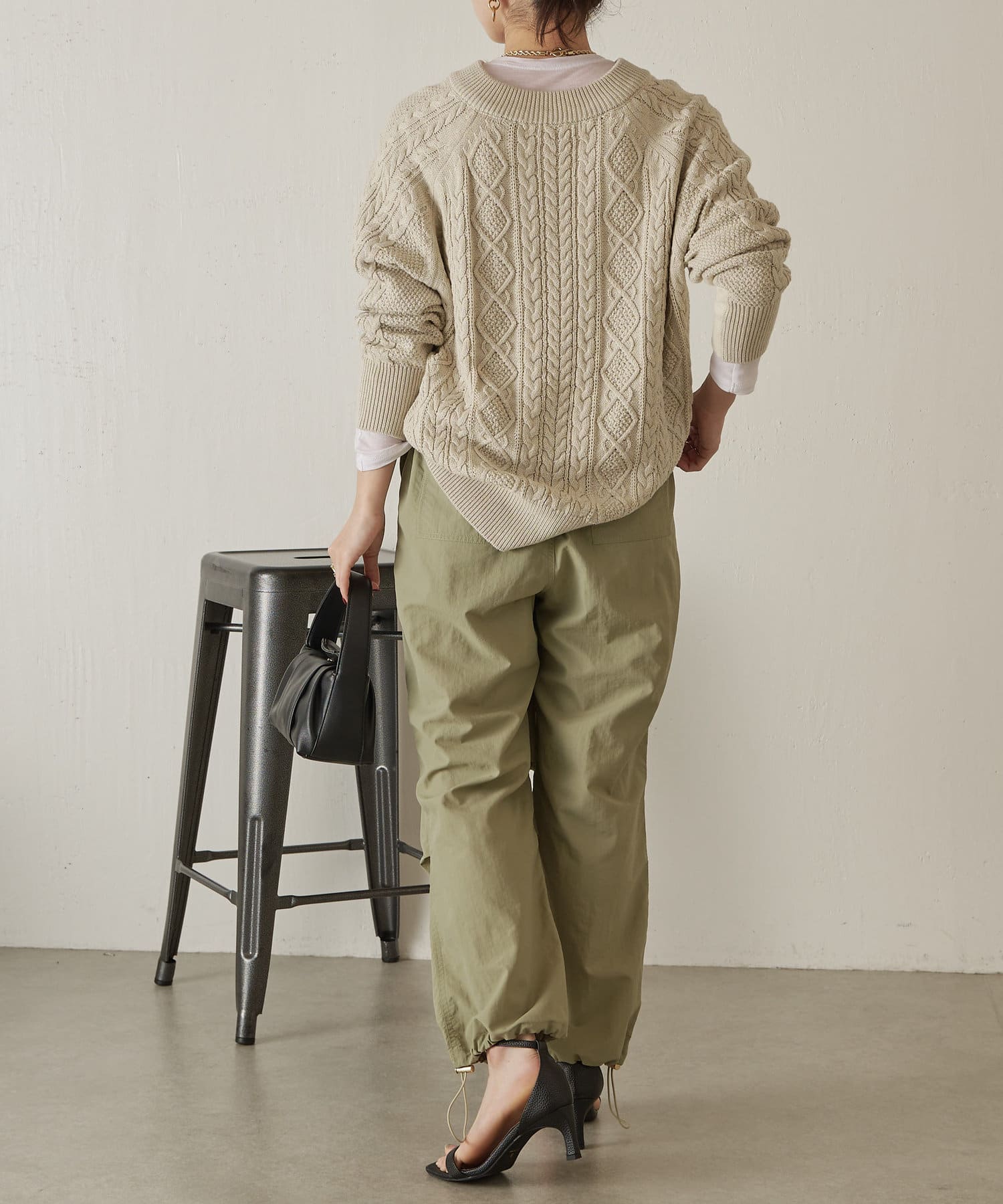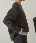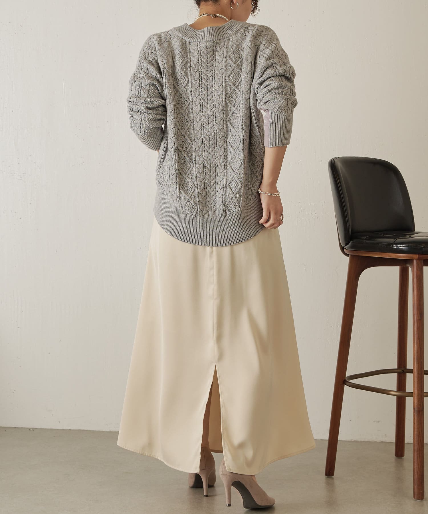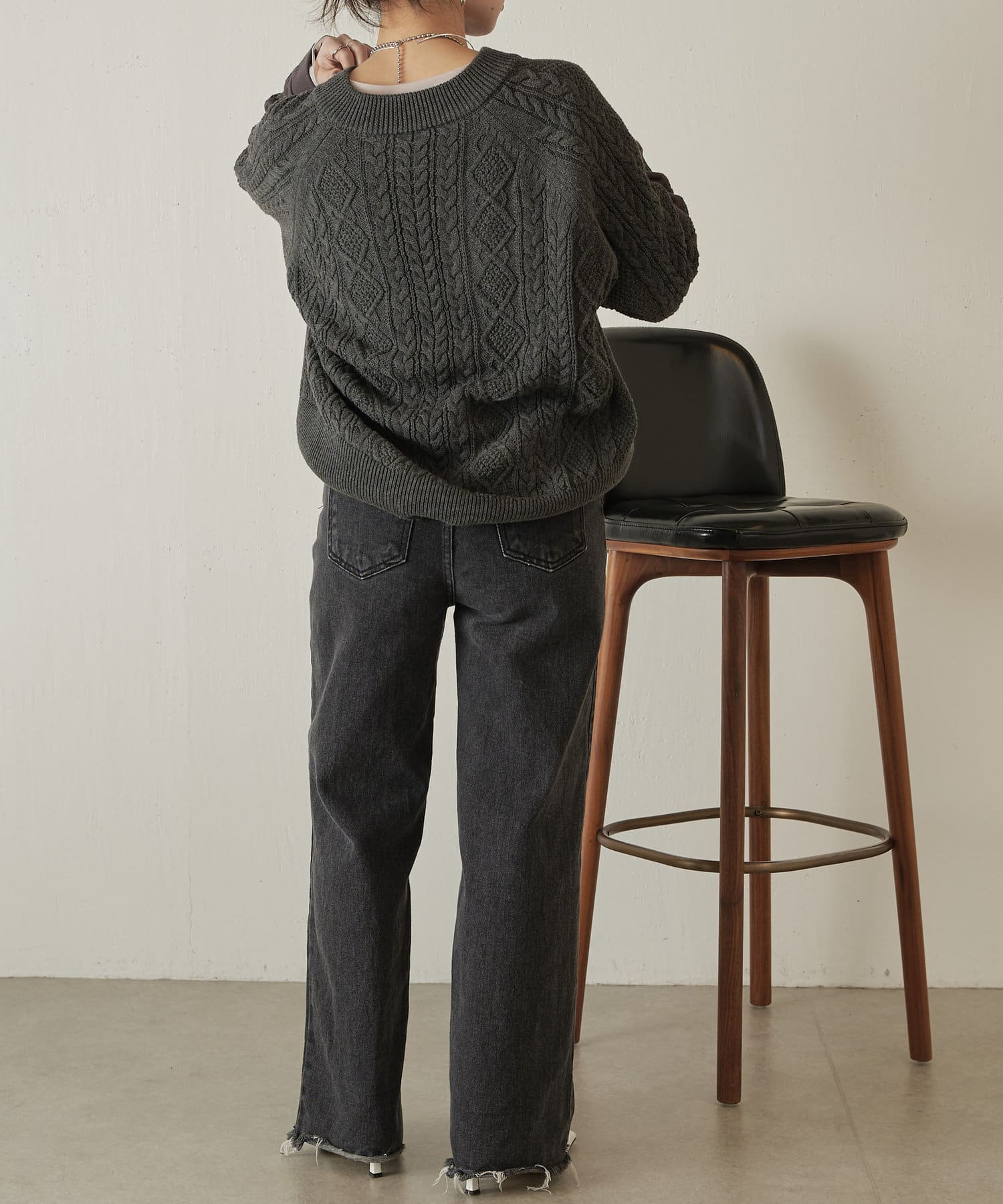 ・ケーブルニットとドッキングされた前後の大胆な切替が、他にはない一枚。