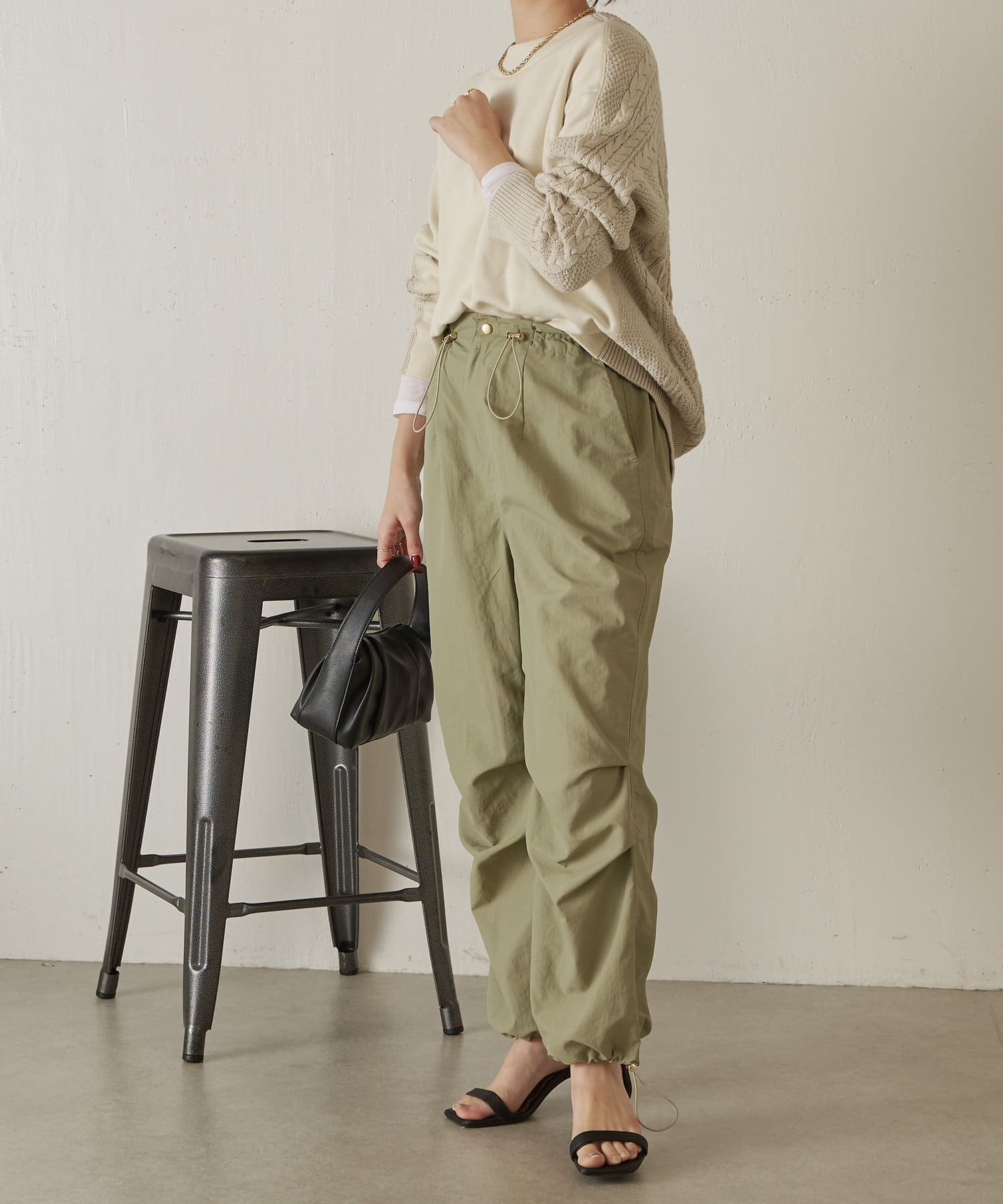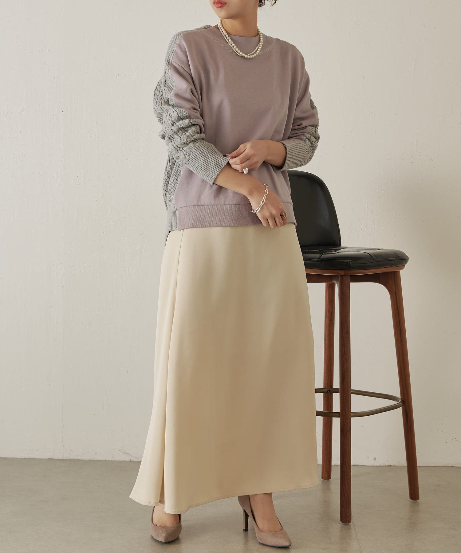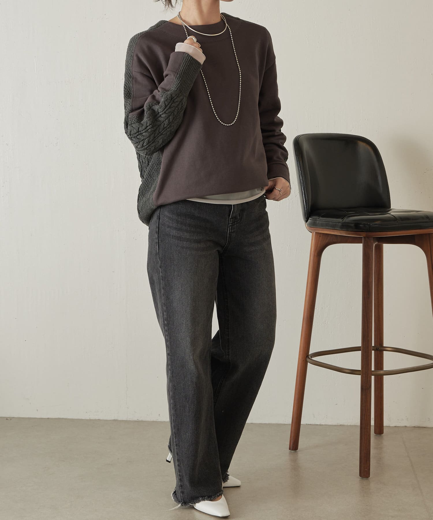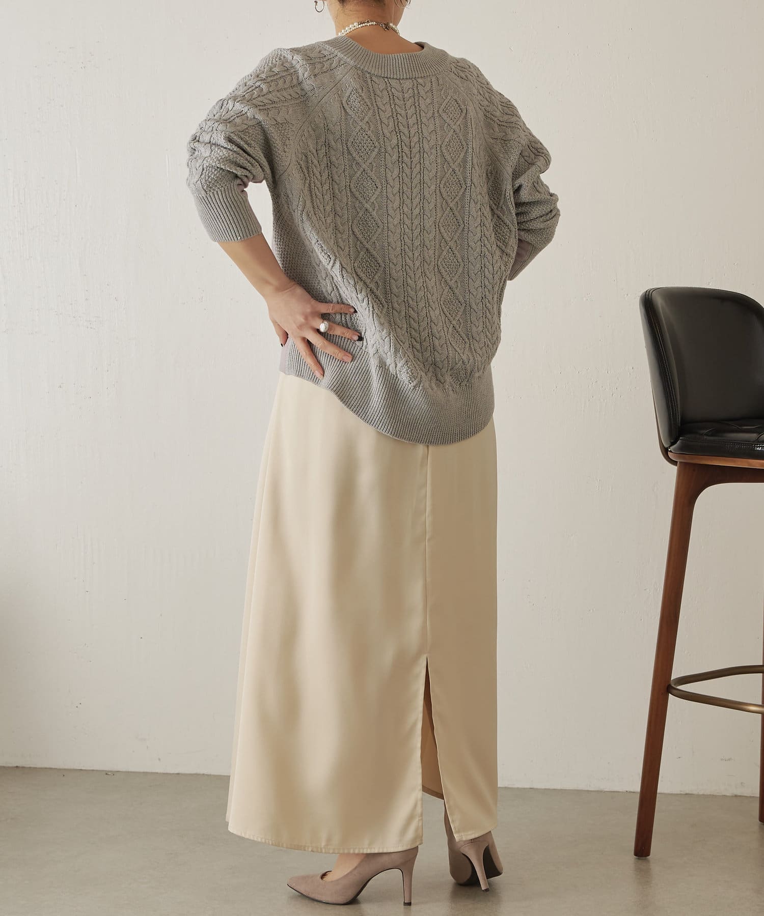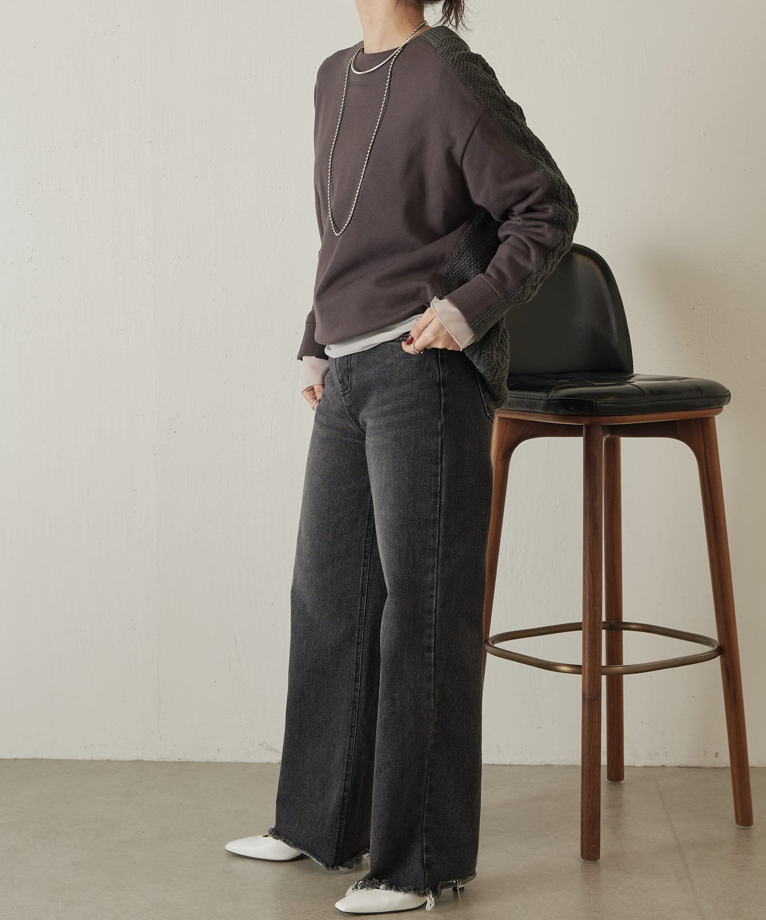・ケーブルニットとドッキングされた前後の大胆な切替が、他にはない一枚。
