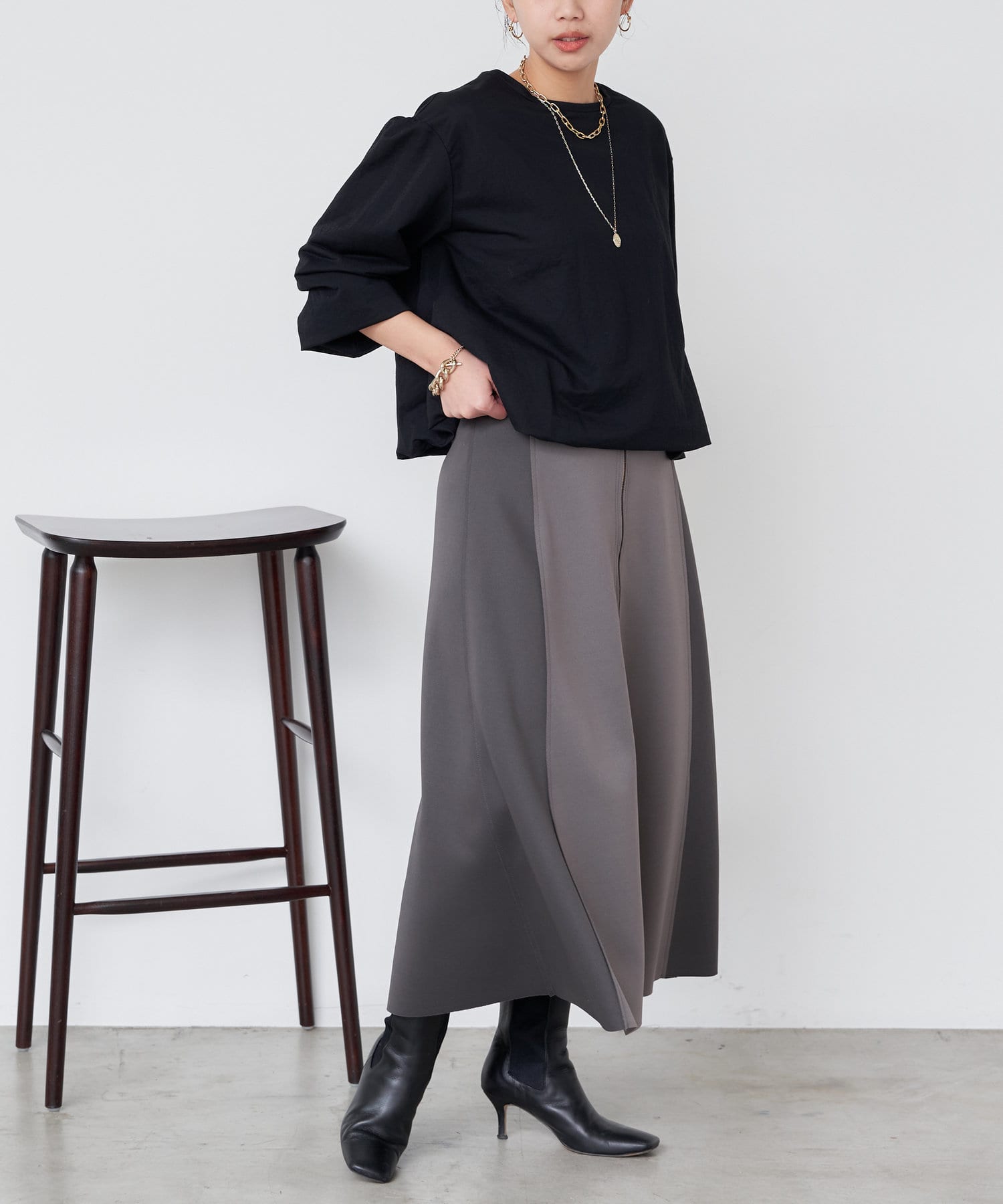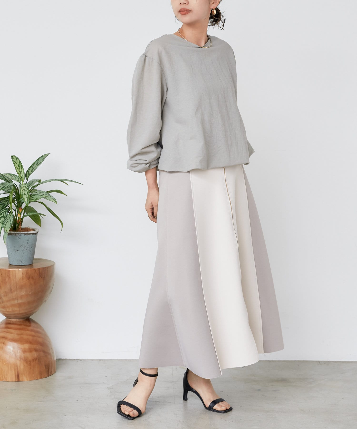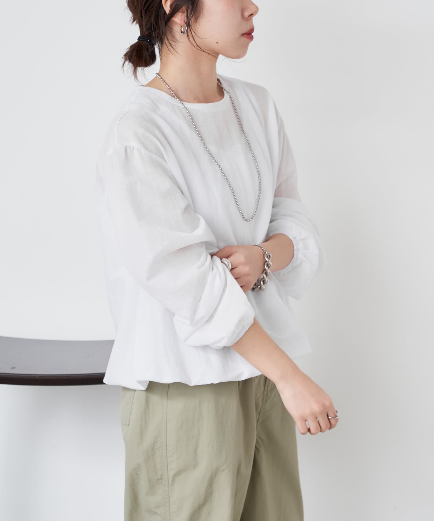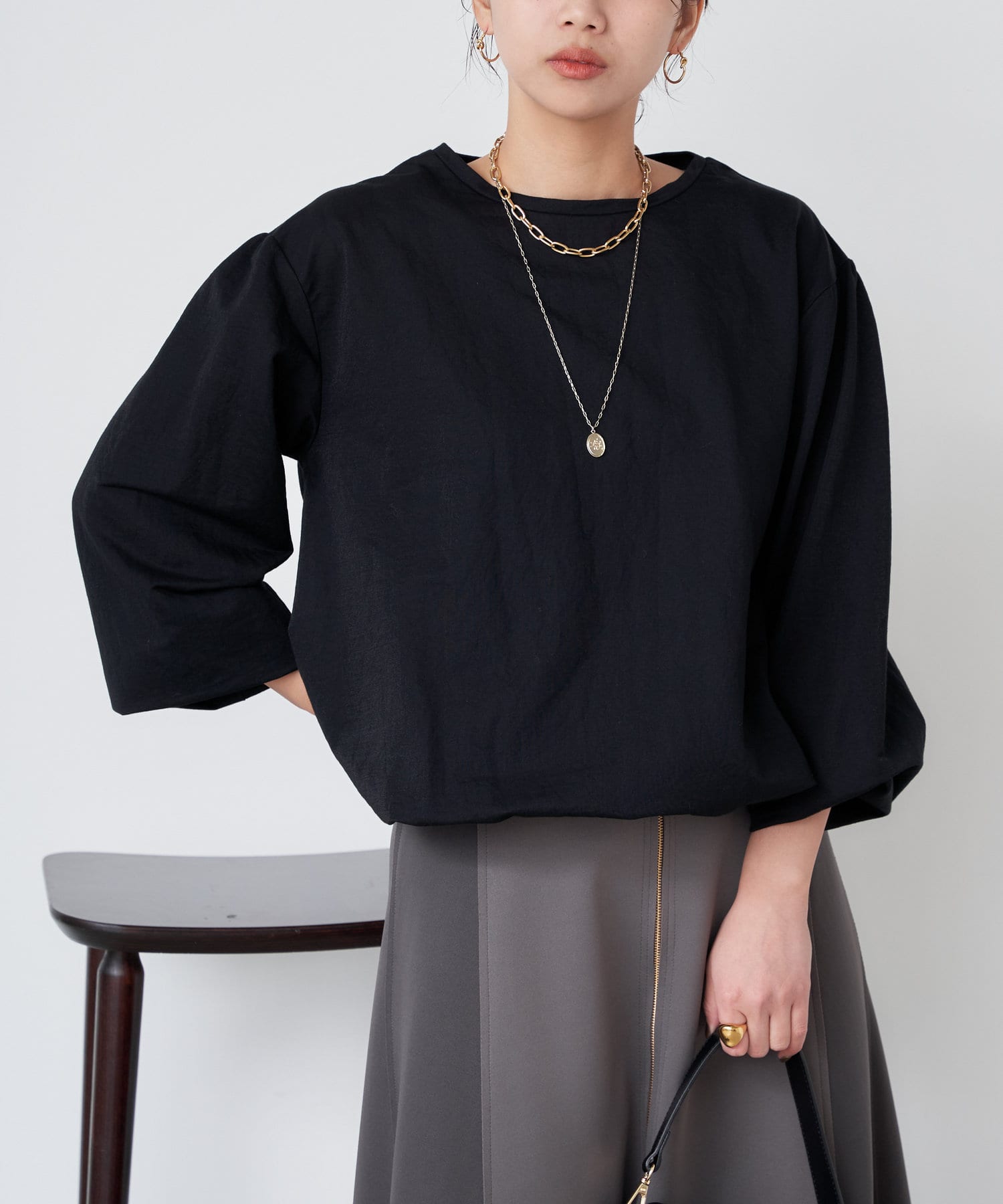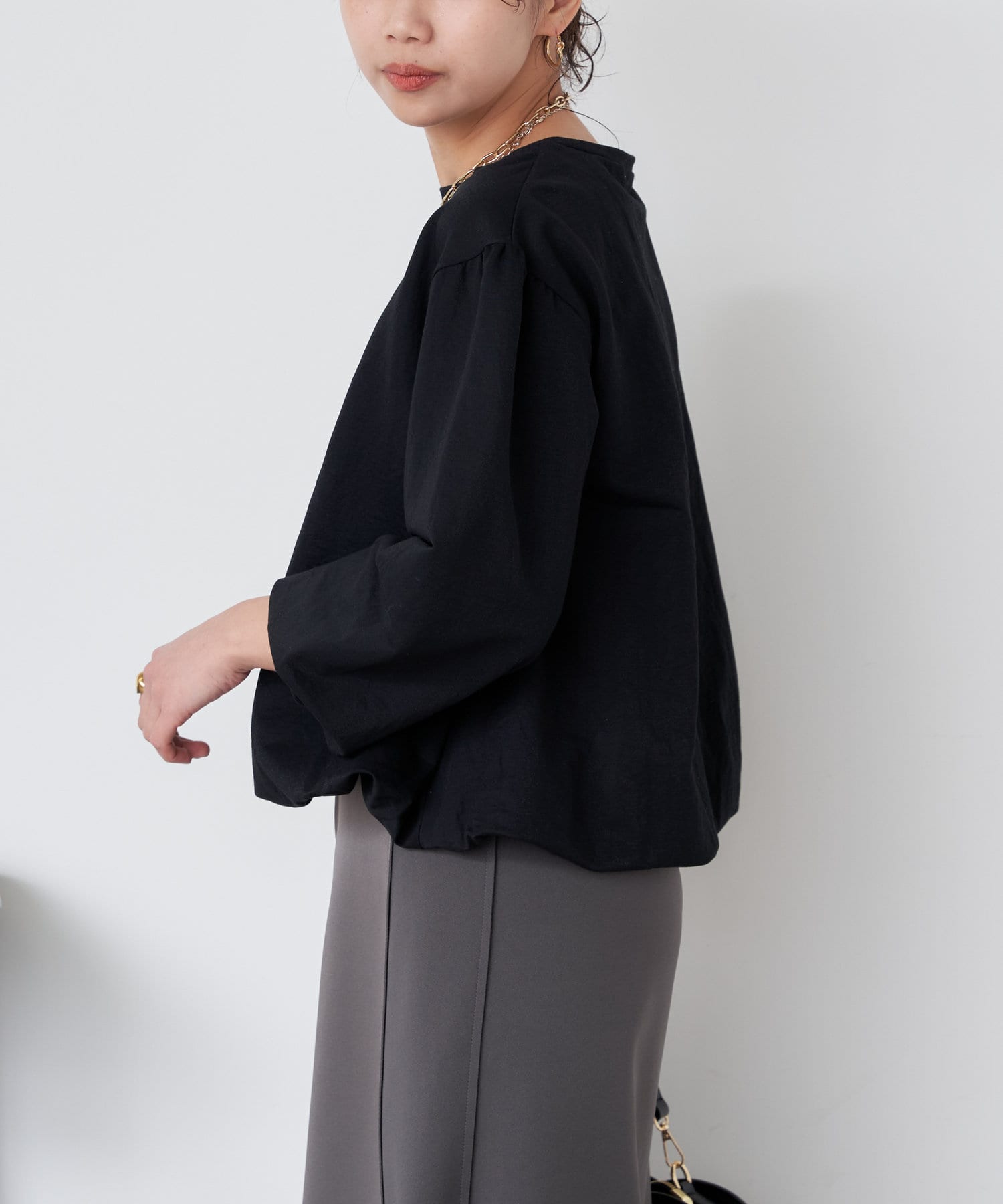 ・さらに袖部分のバルーンシルエットはコーディネートに華やかさをプラスしてくれますよ。