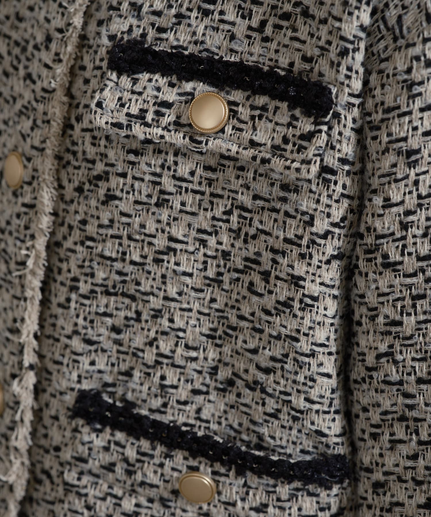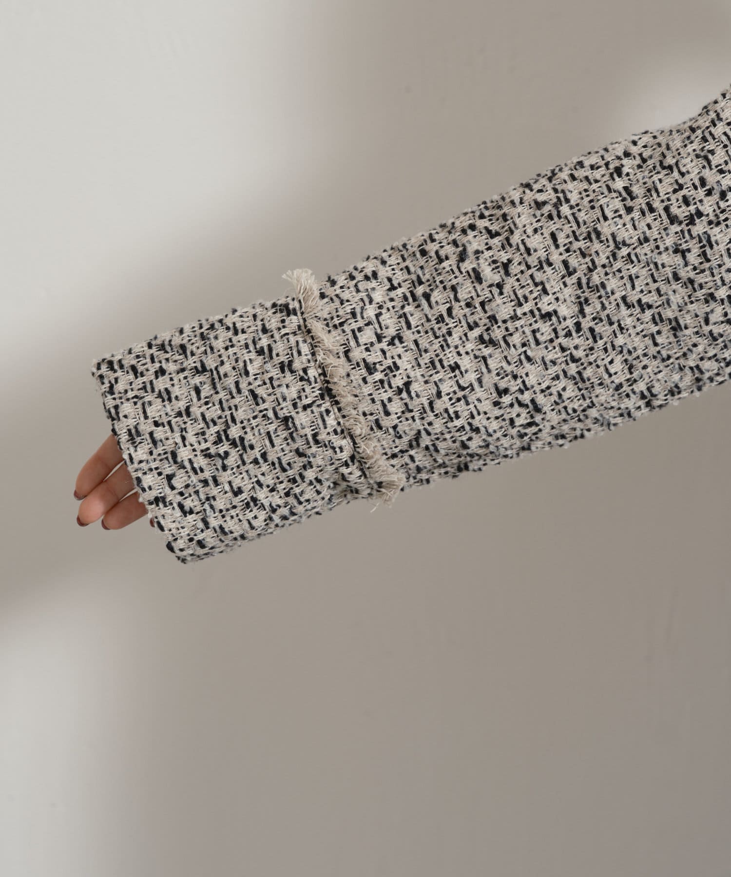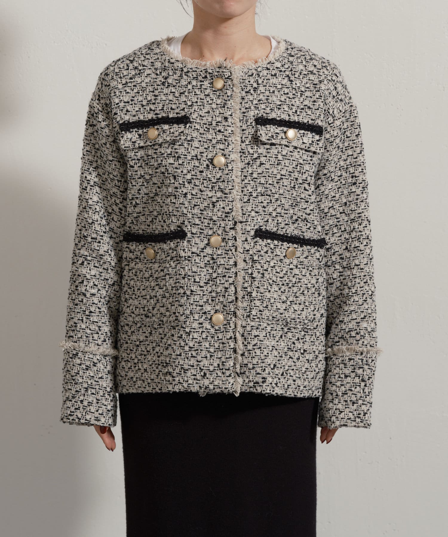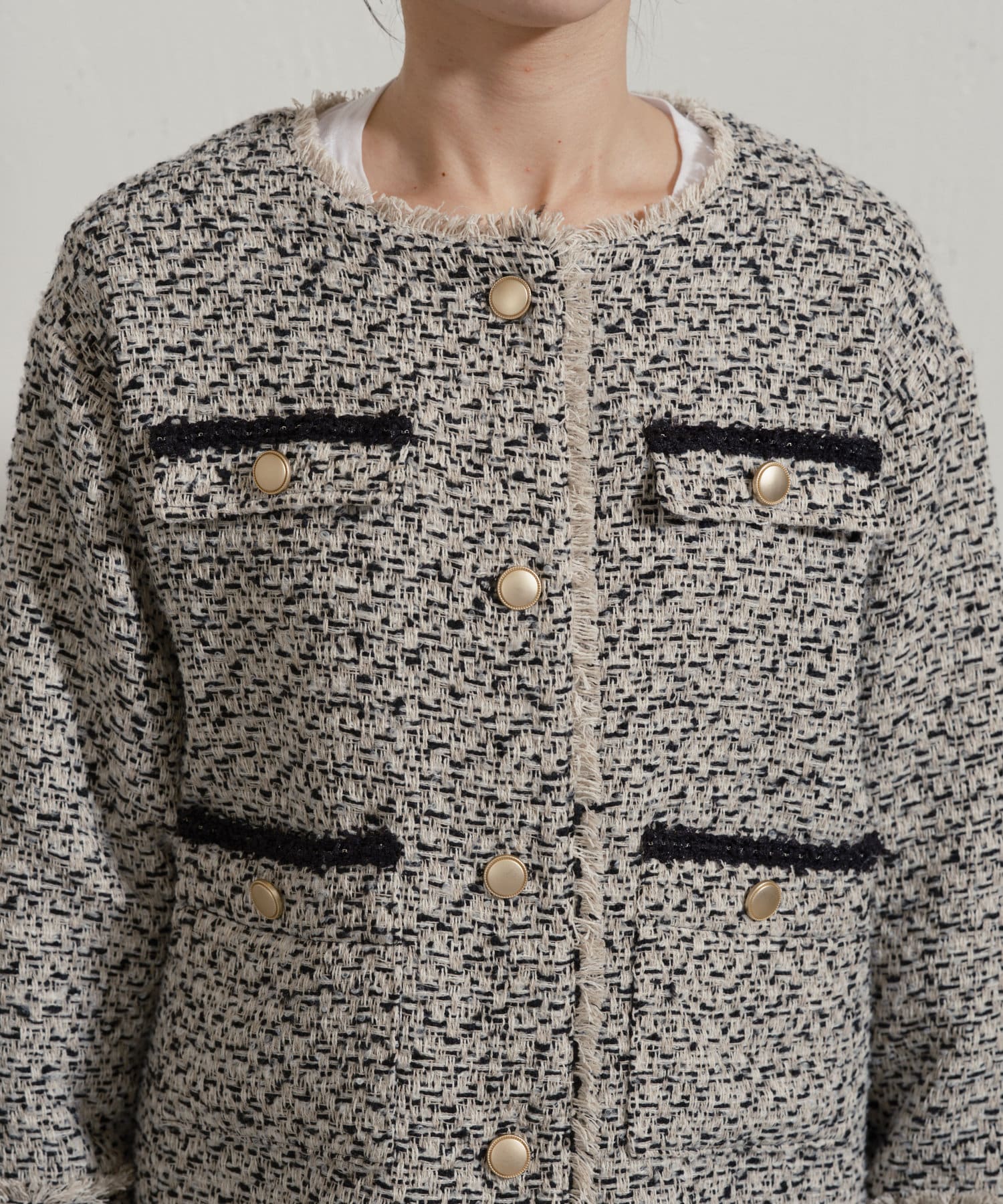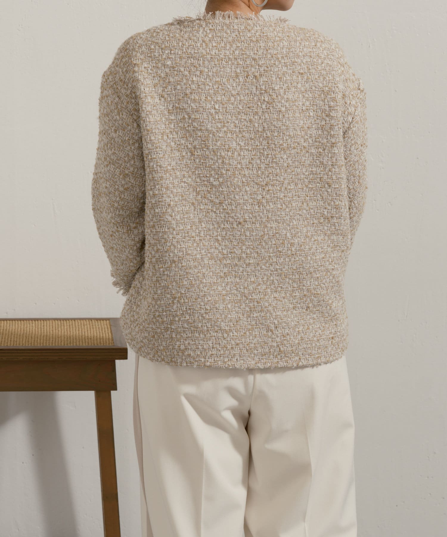 ・首元はノーカラーデザインなので、ハイネックのインナーを合わせてもすっきりとお召いただけます。