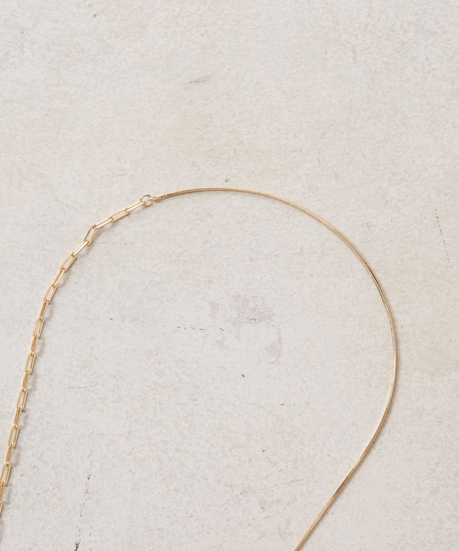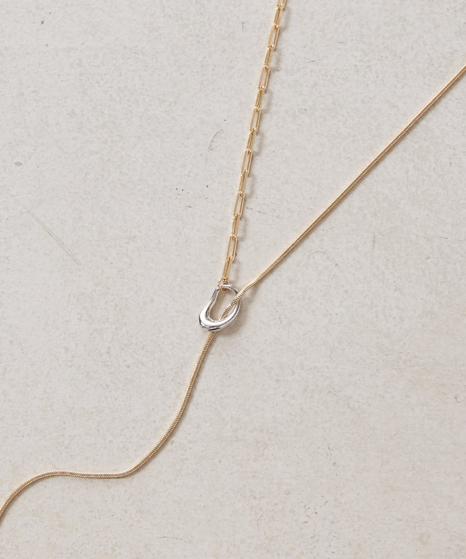 ・サイズの違うチェーンのコンビのラリエットタイプのネックレス。