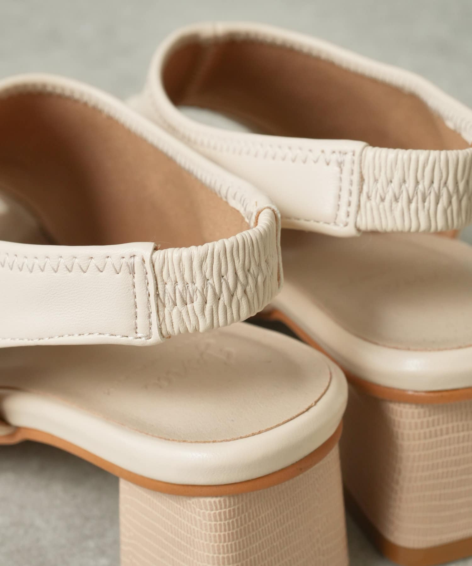 ・ソフトストレッチなアッパーで、足にしなやかに馴染み、ノンストレスな着用感のミュールサンダル。