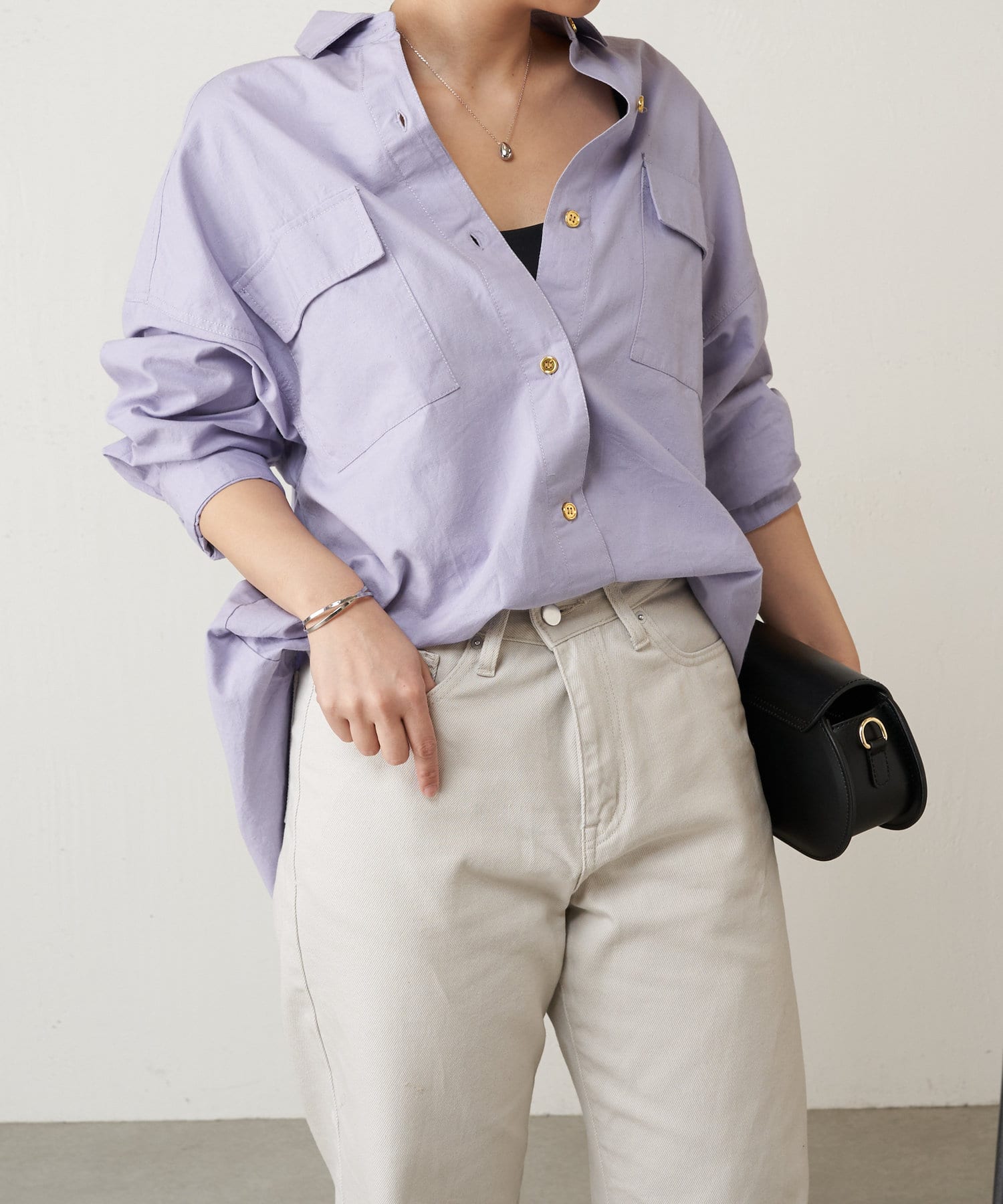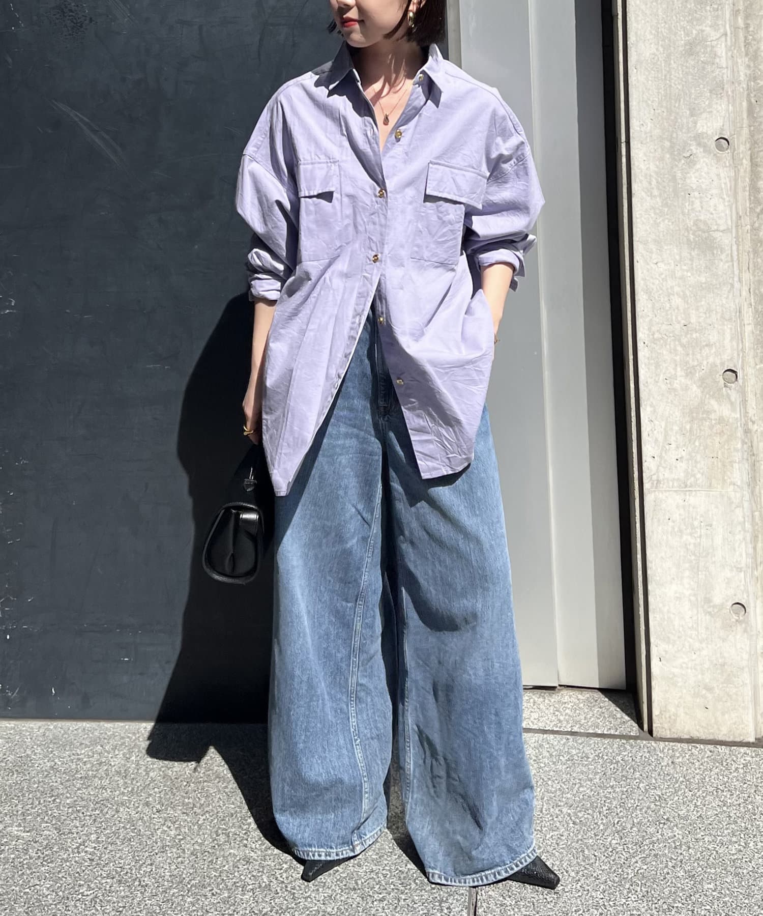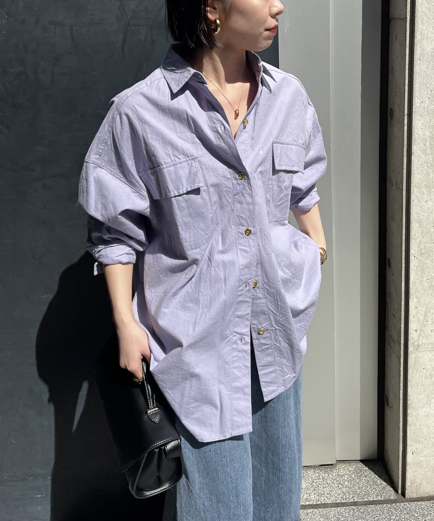 生地に少しハリがあるので、アウターとしても羽織れるしシャツとしてもキレイめに着れます。