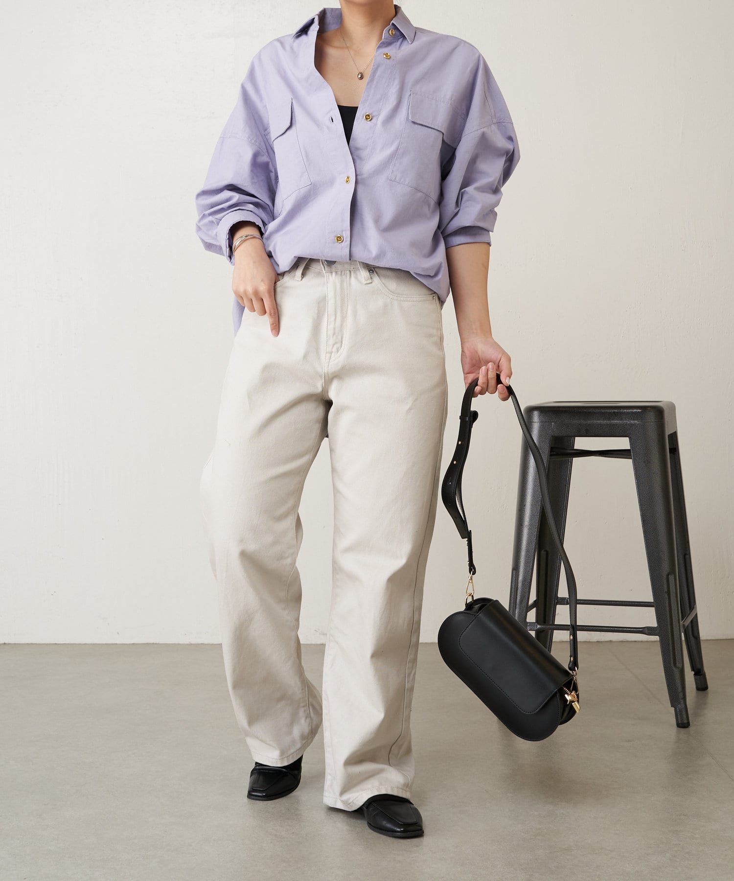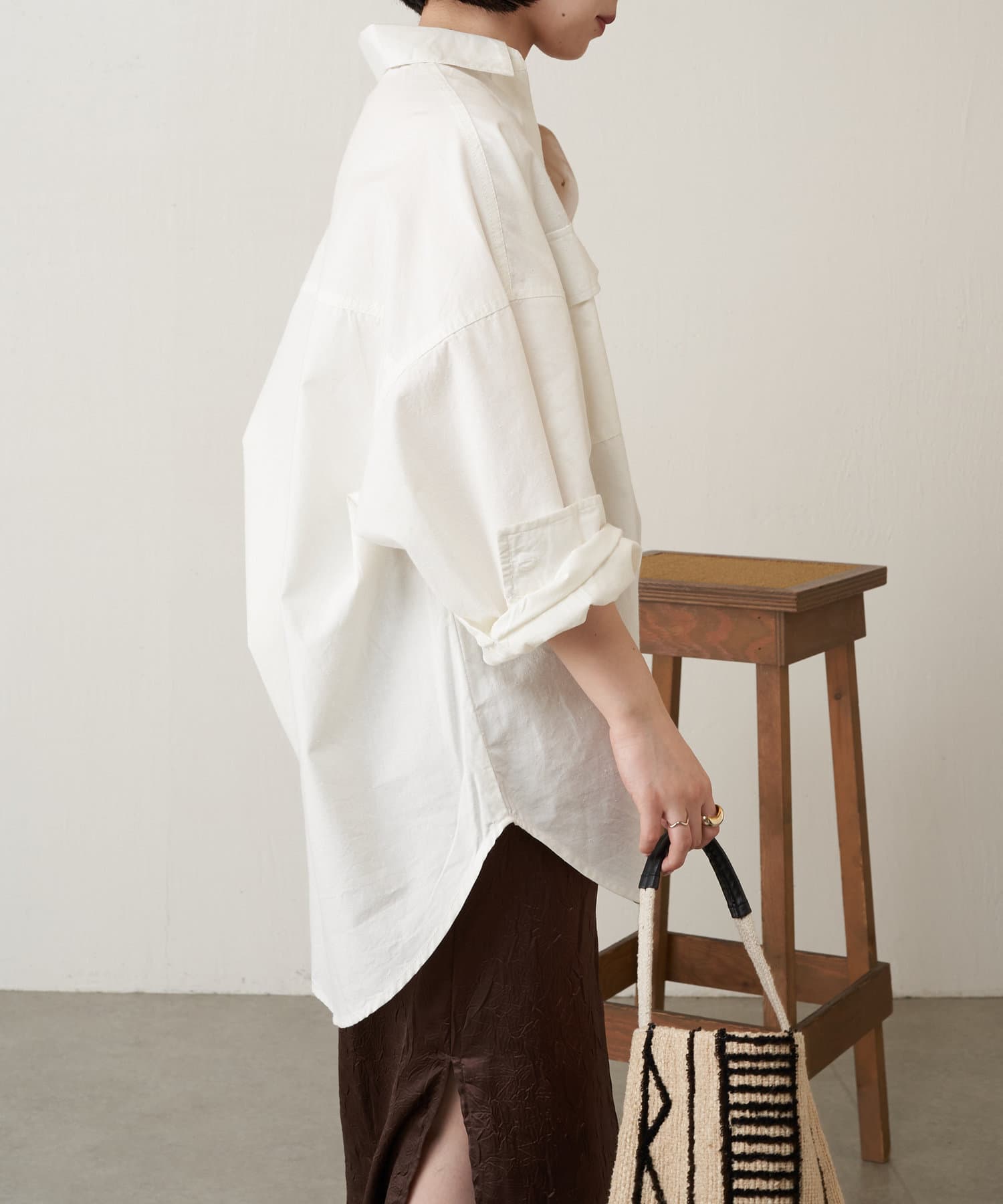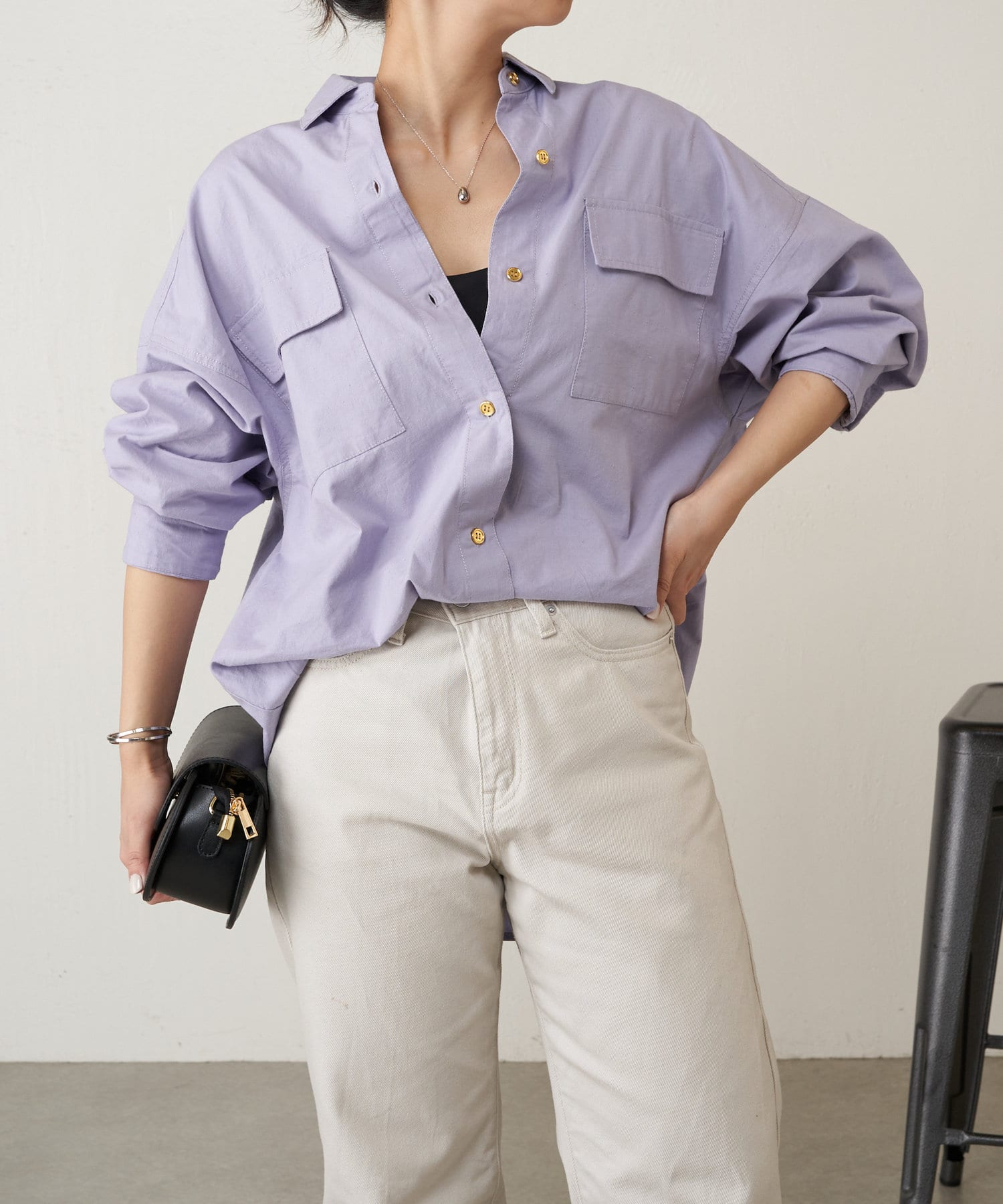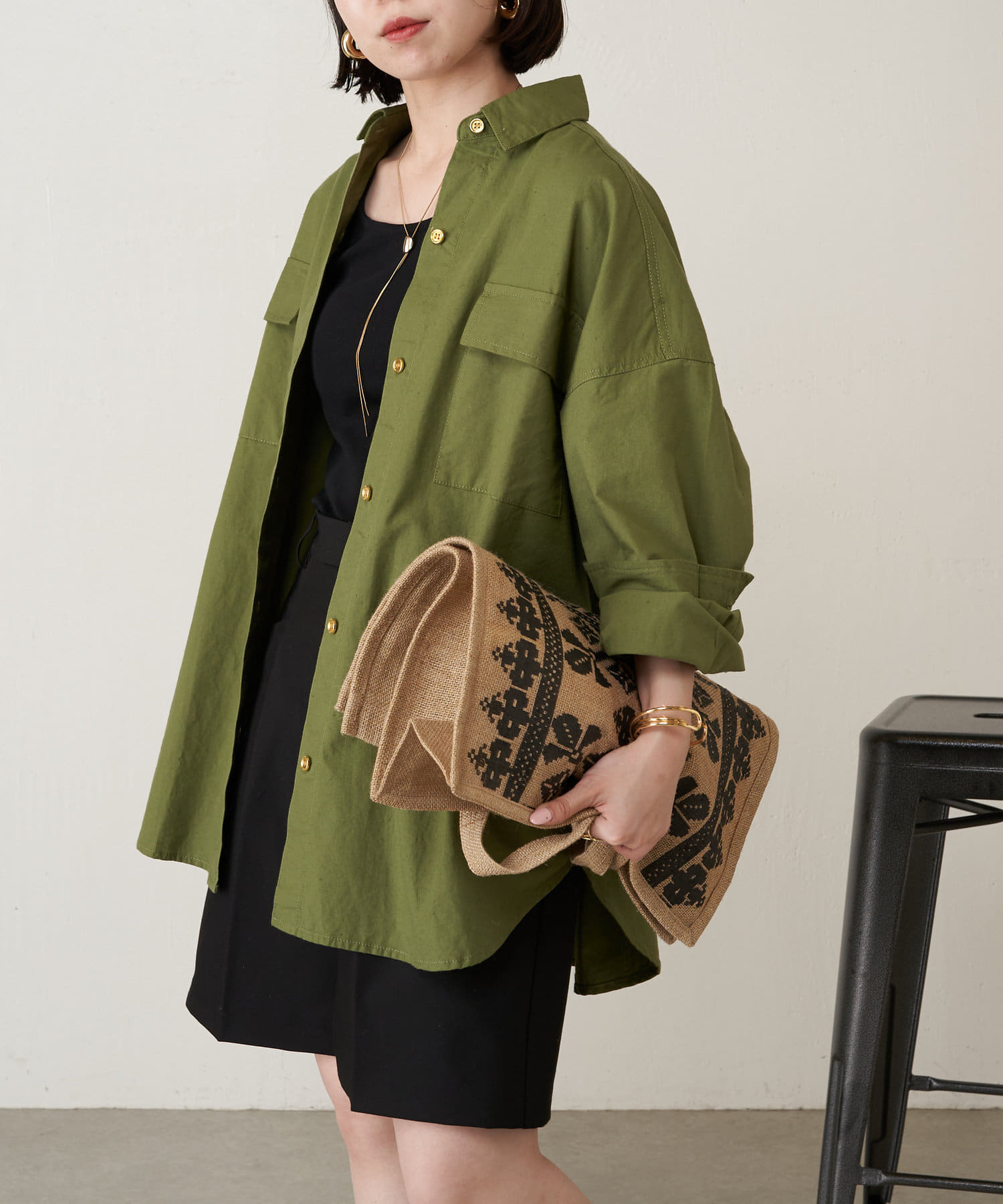 生地に少しハリがあるので、アウターとしても羽織れるしシャツとしてもキレイめに着れます。