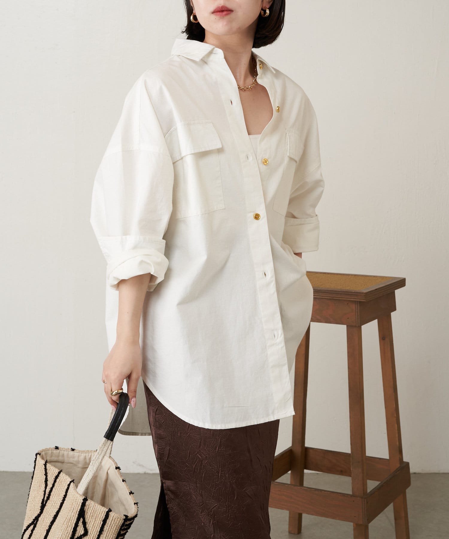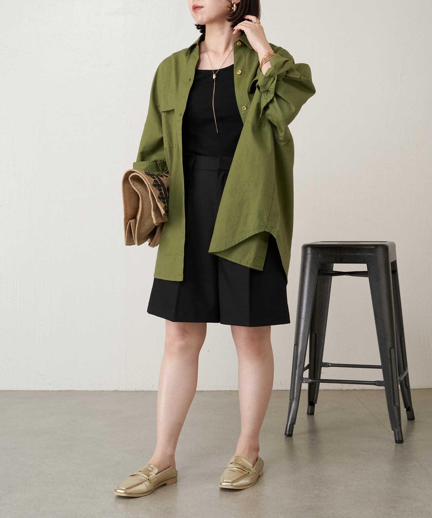 ・ゴールドボタンがスタイリングのワンポイントに◎