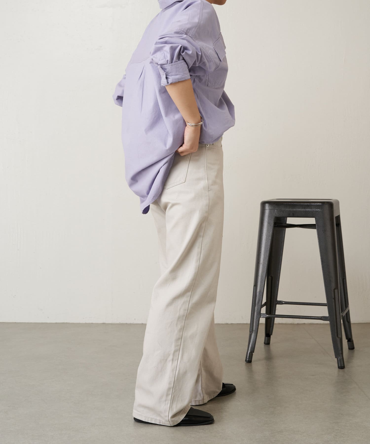 店員さんがパープルを着ていて、とても可愛かったので購入。丈も長めで広がらず、かっこよく着られます。