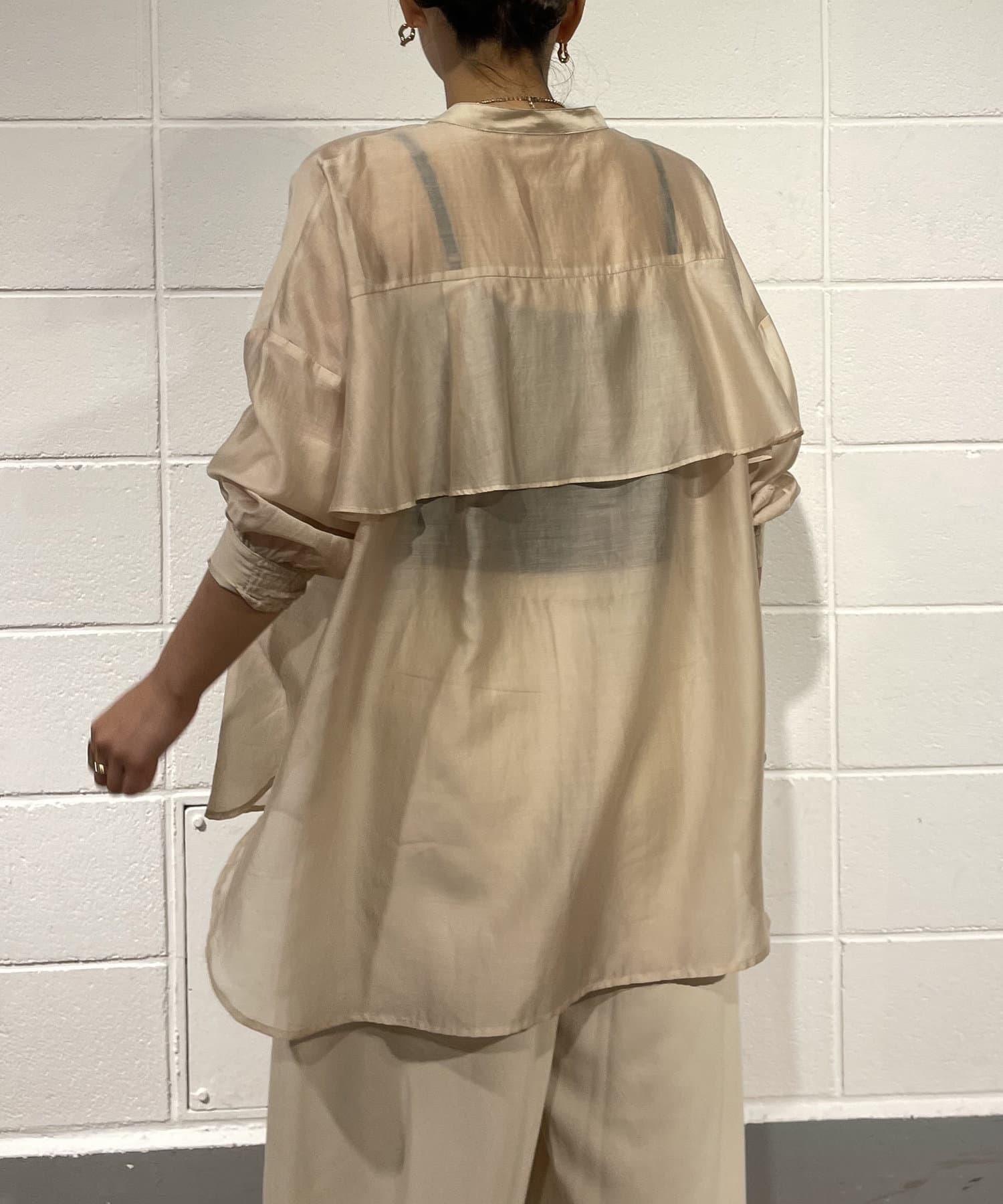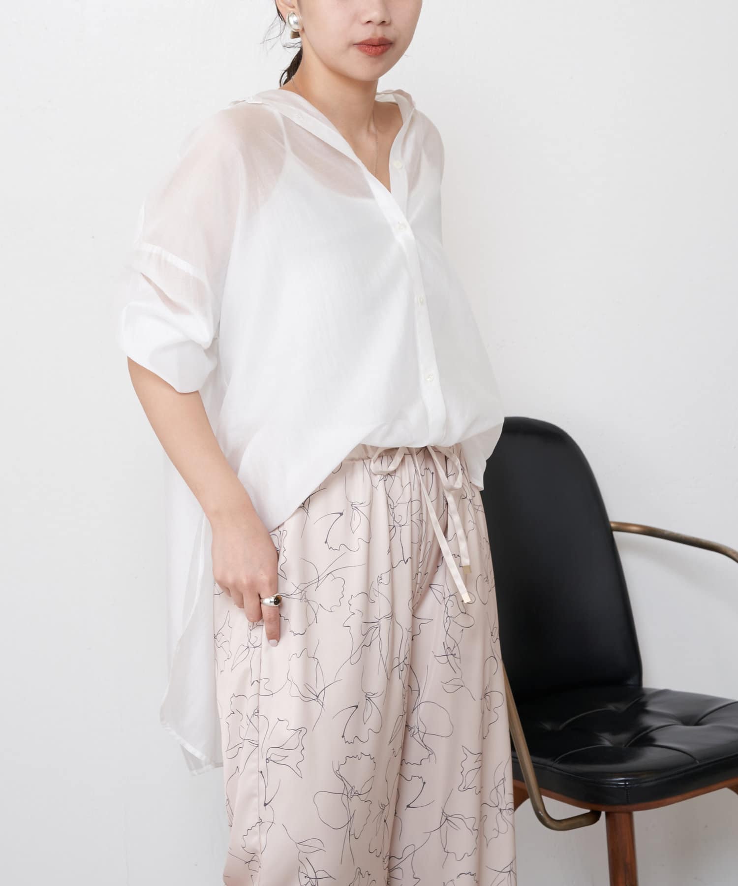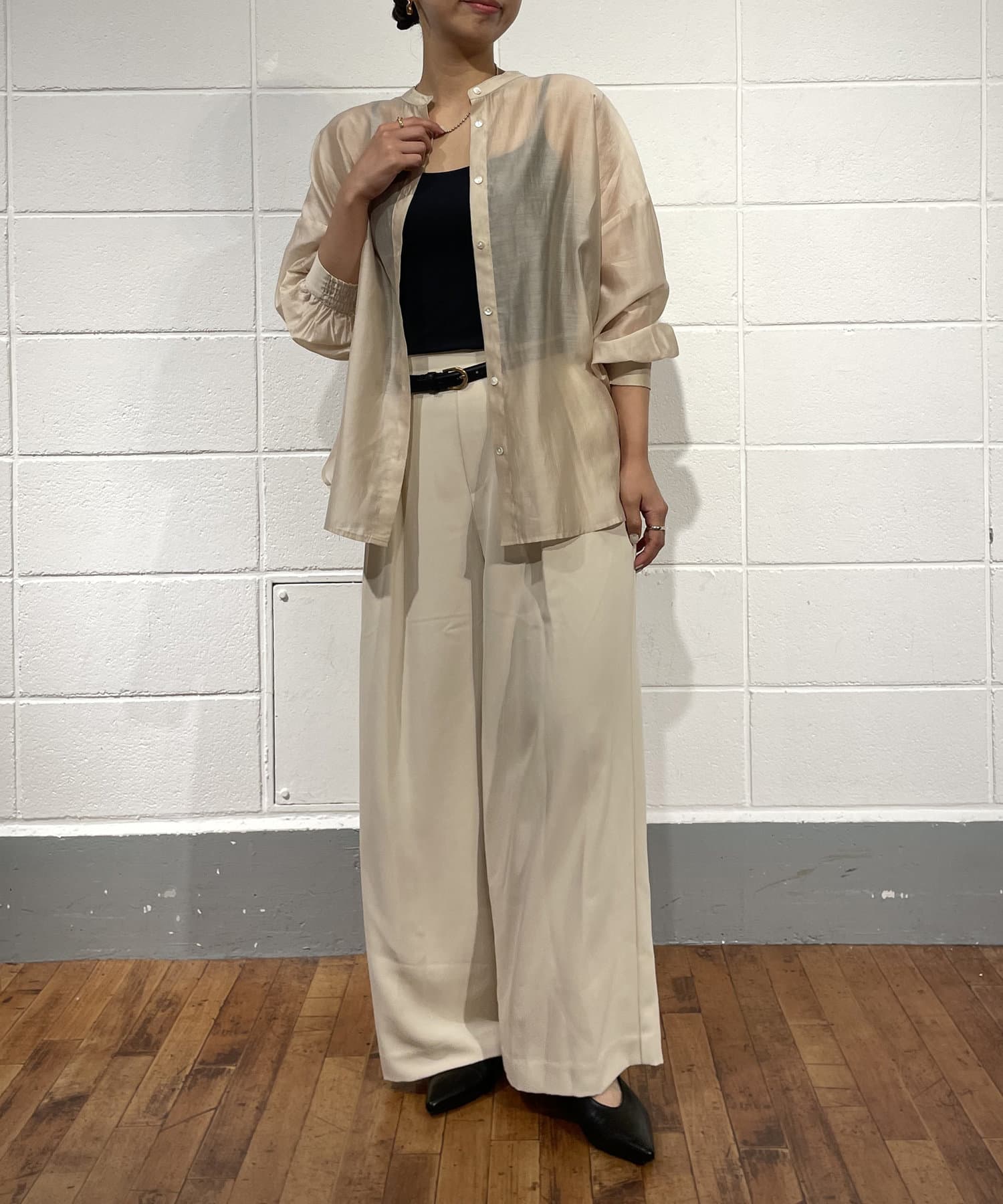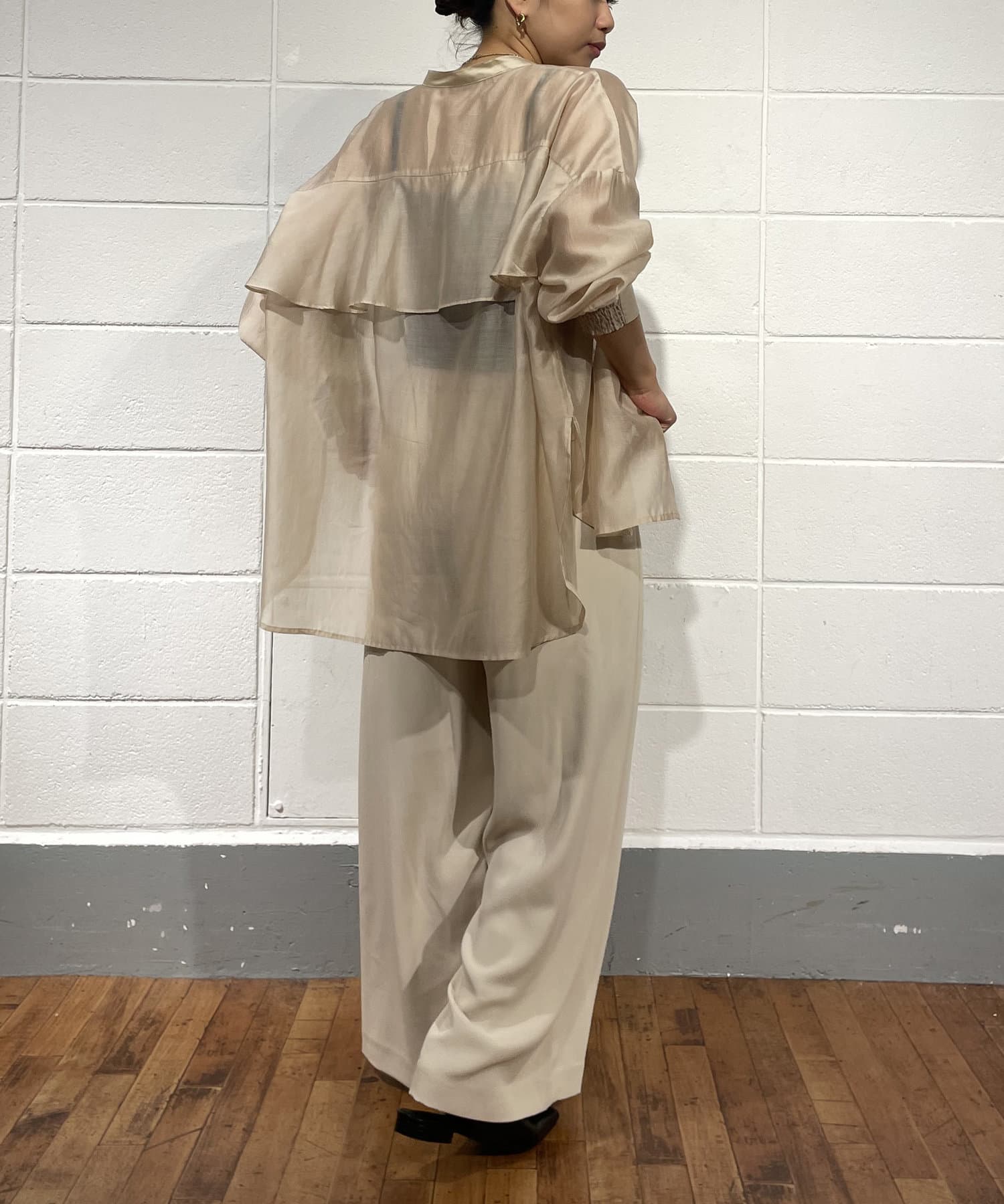 ・程よくとろみのある素材なので、一枚で着映えするアイテムです。