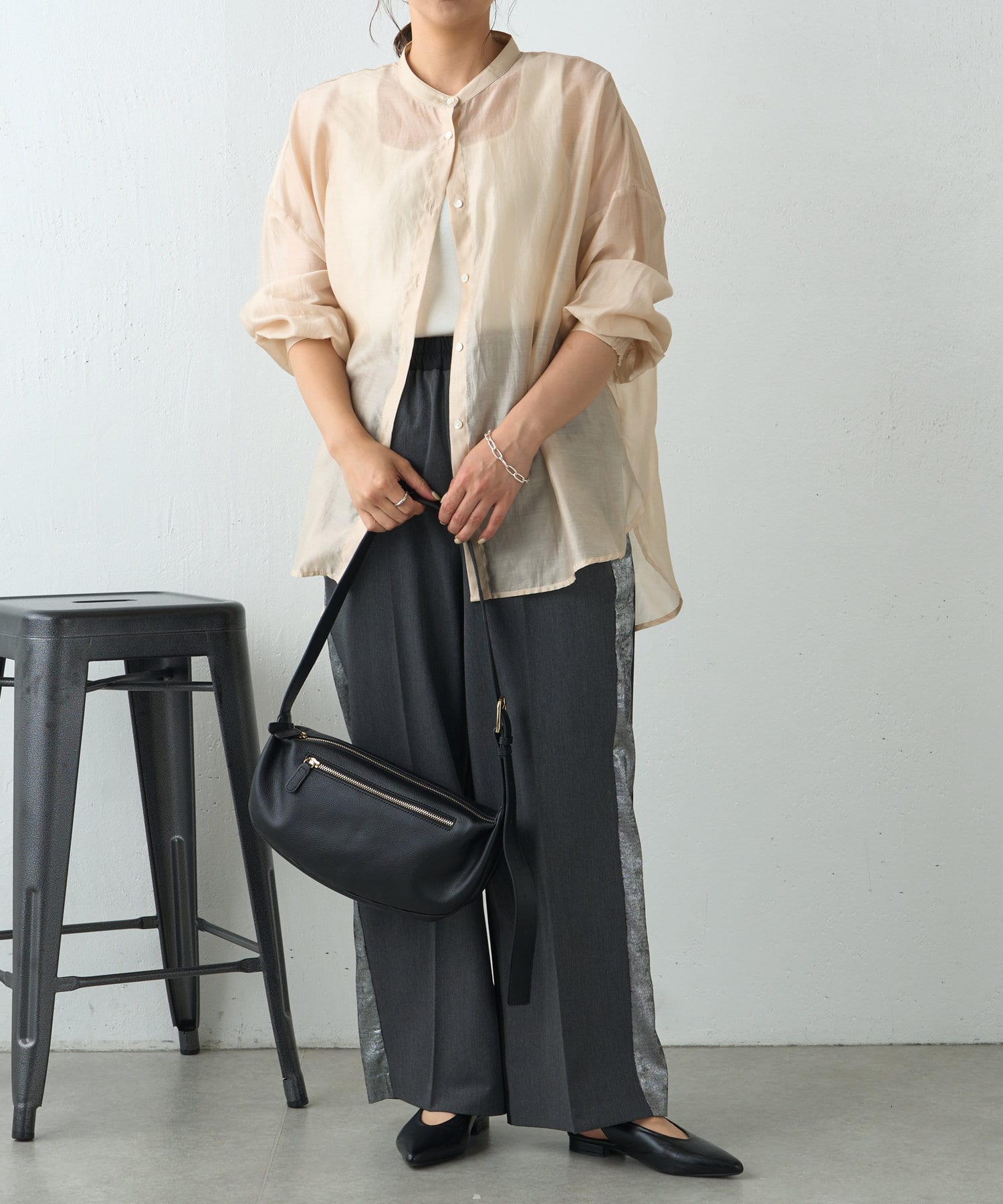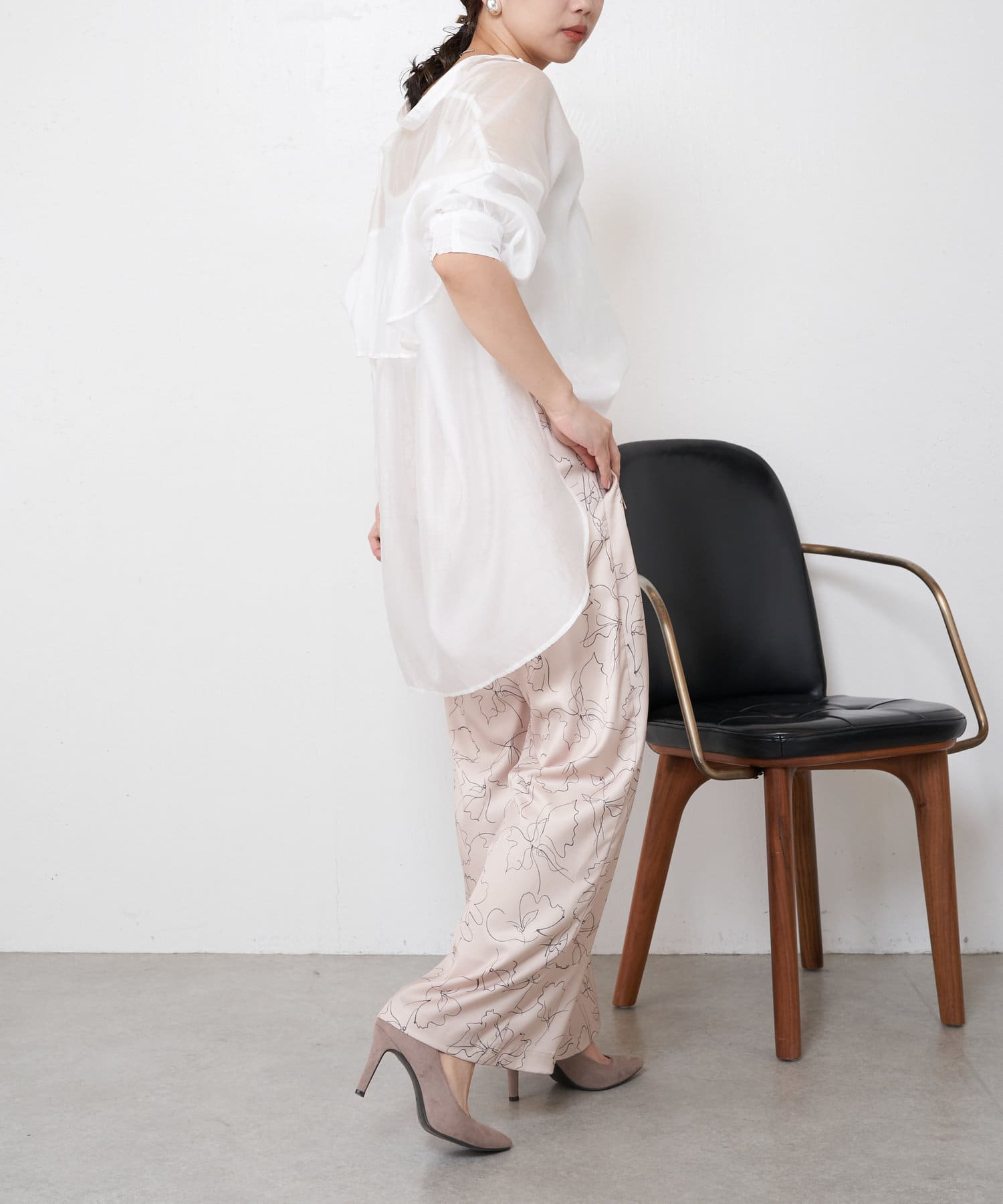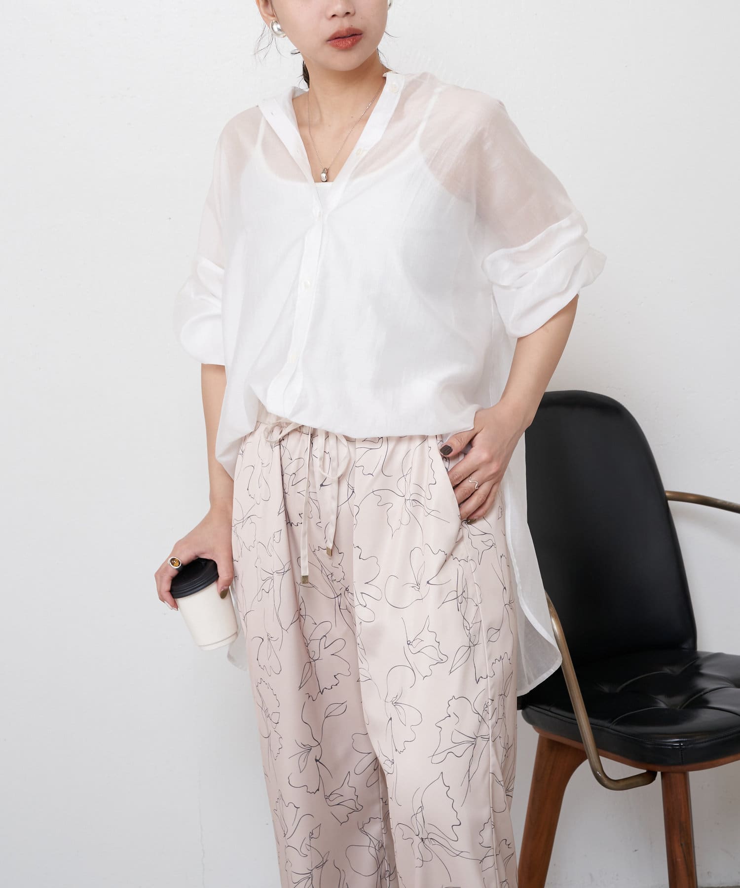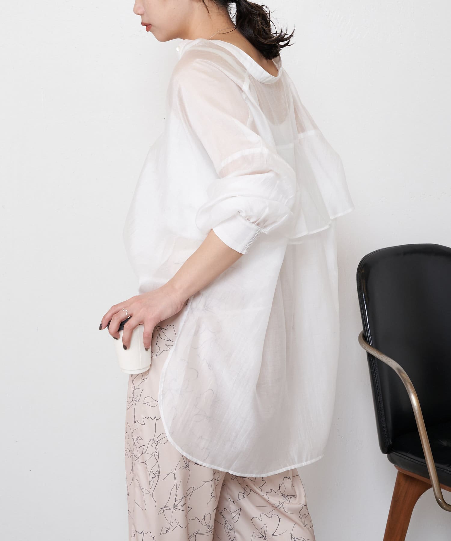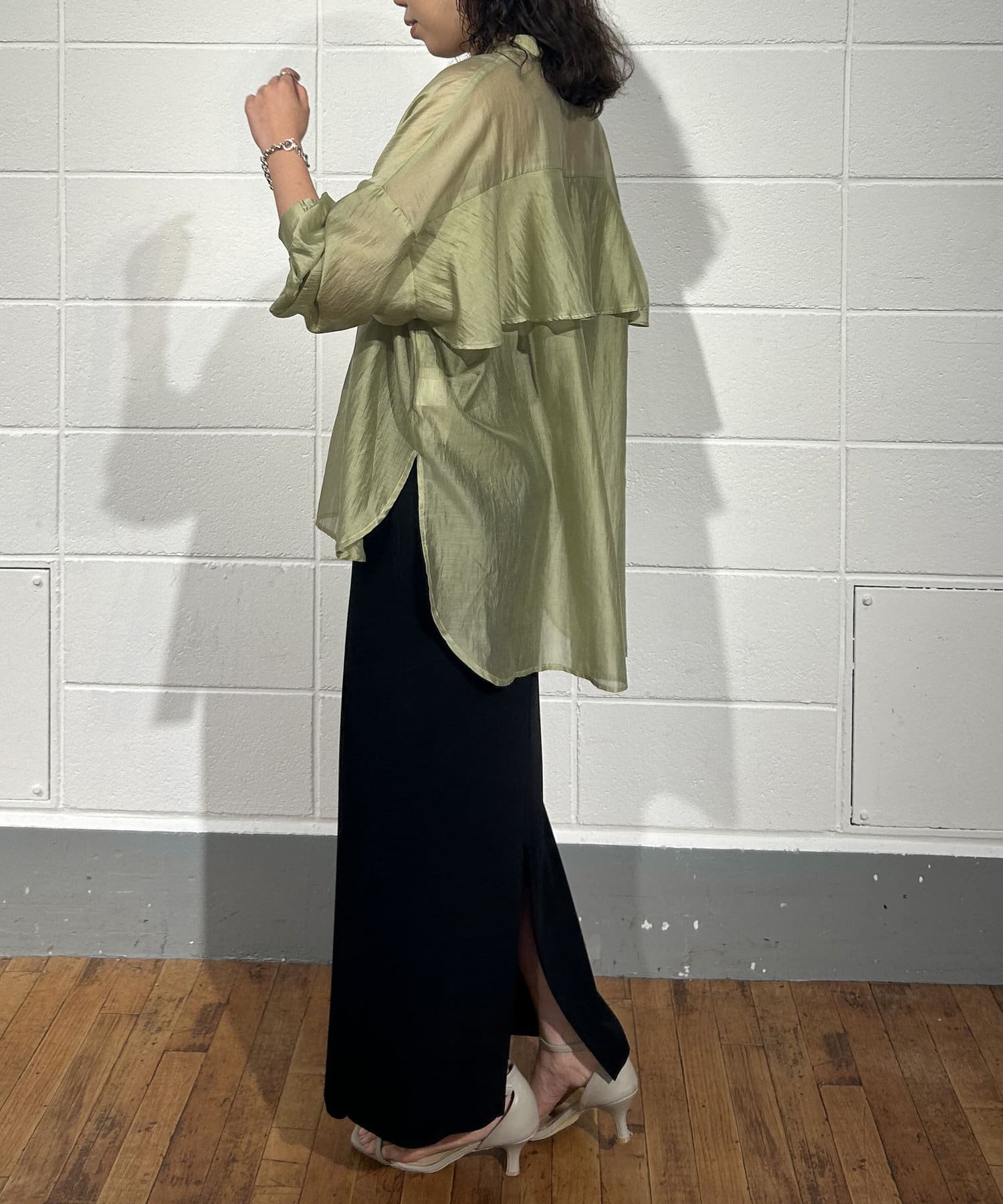 ・程よくとろみのある素材なので、一枚で着映えするアイテムです。