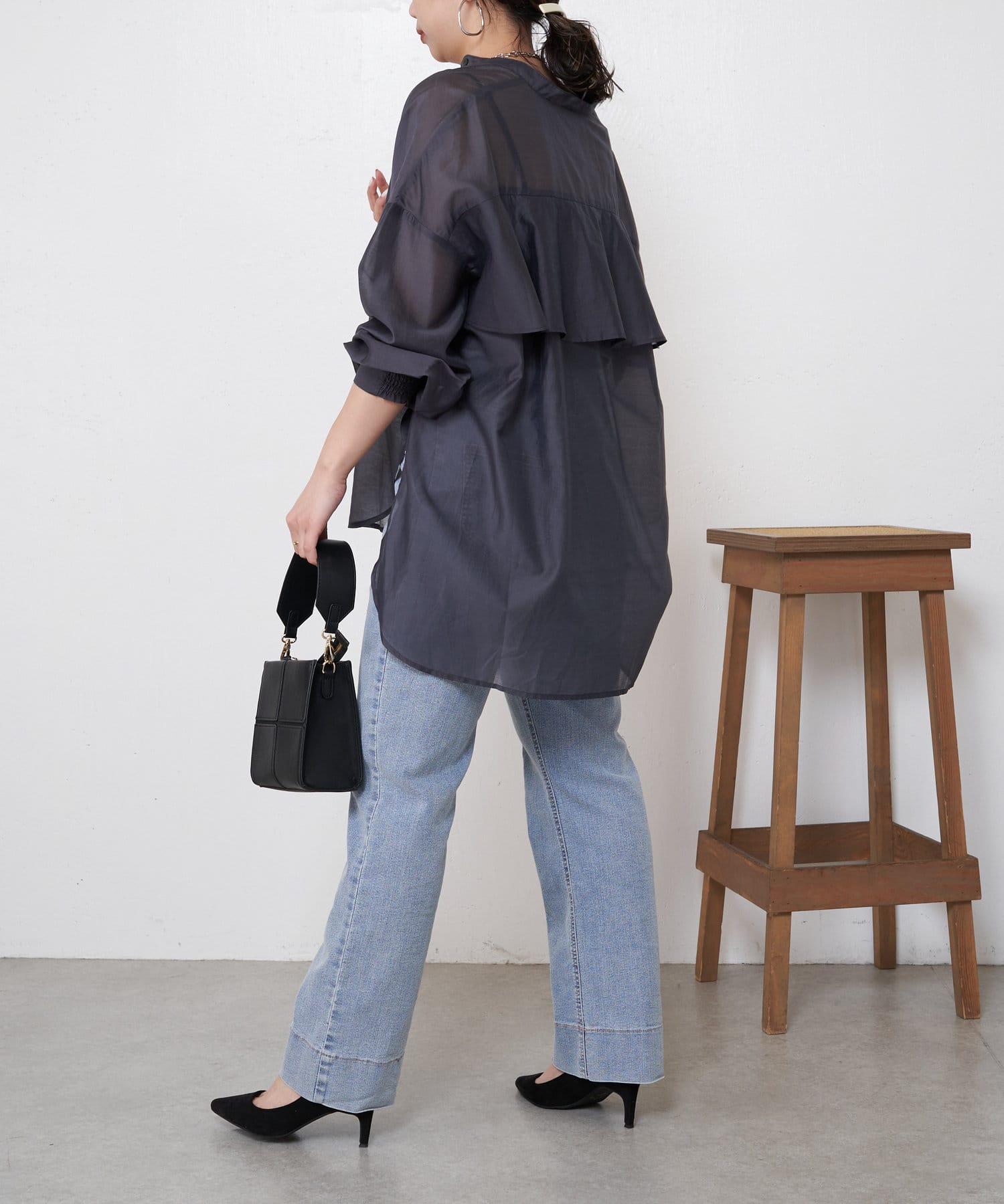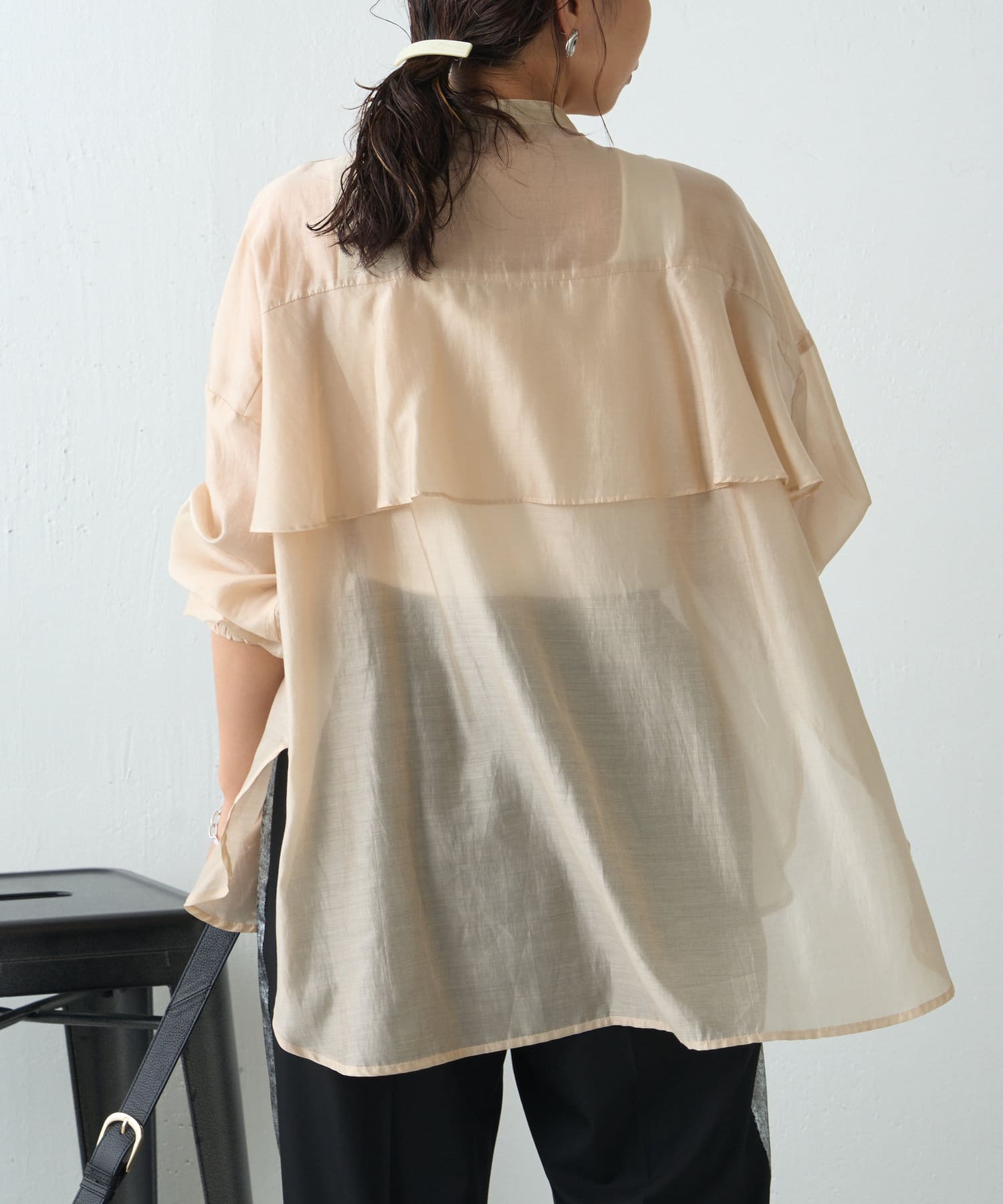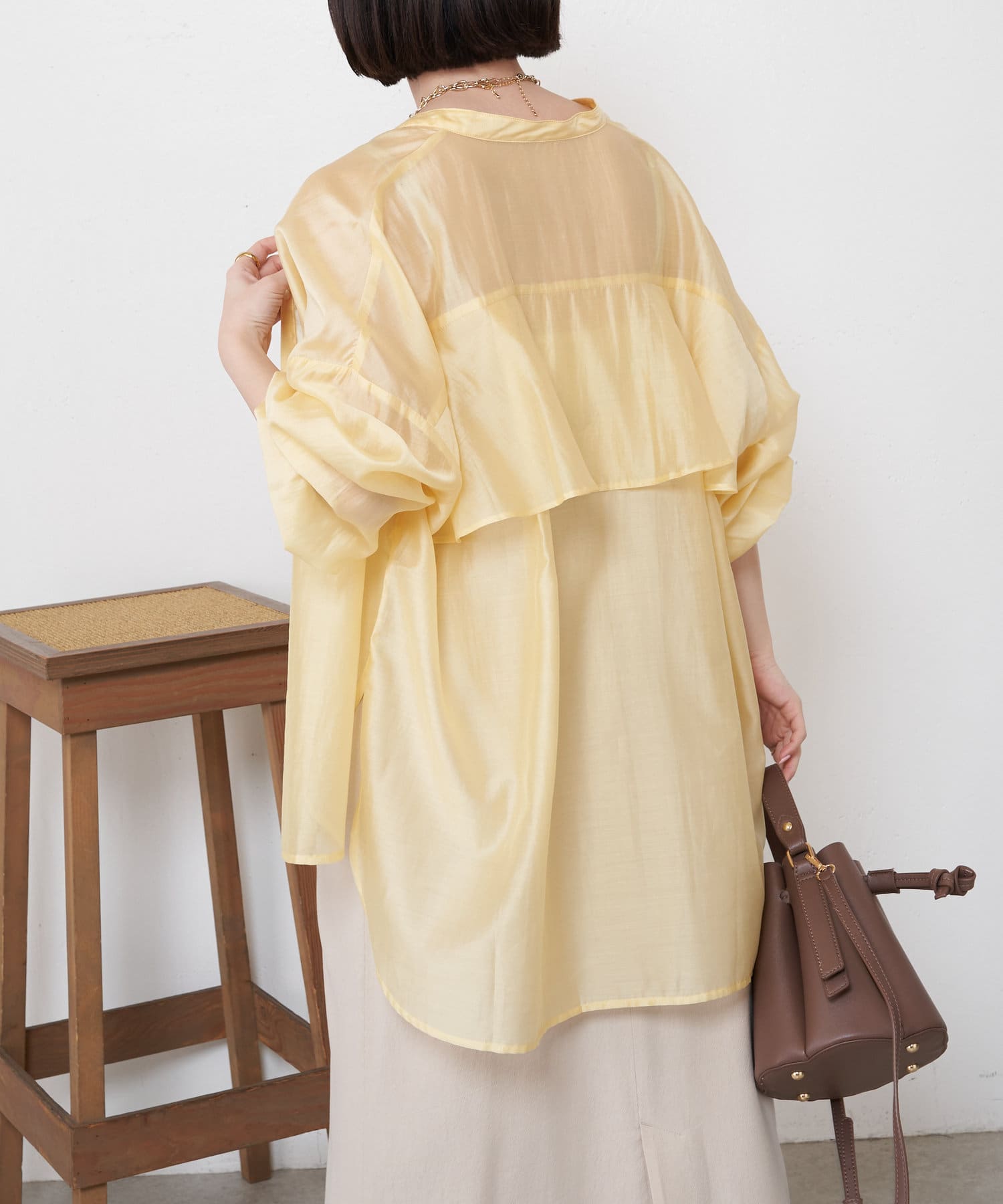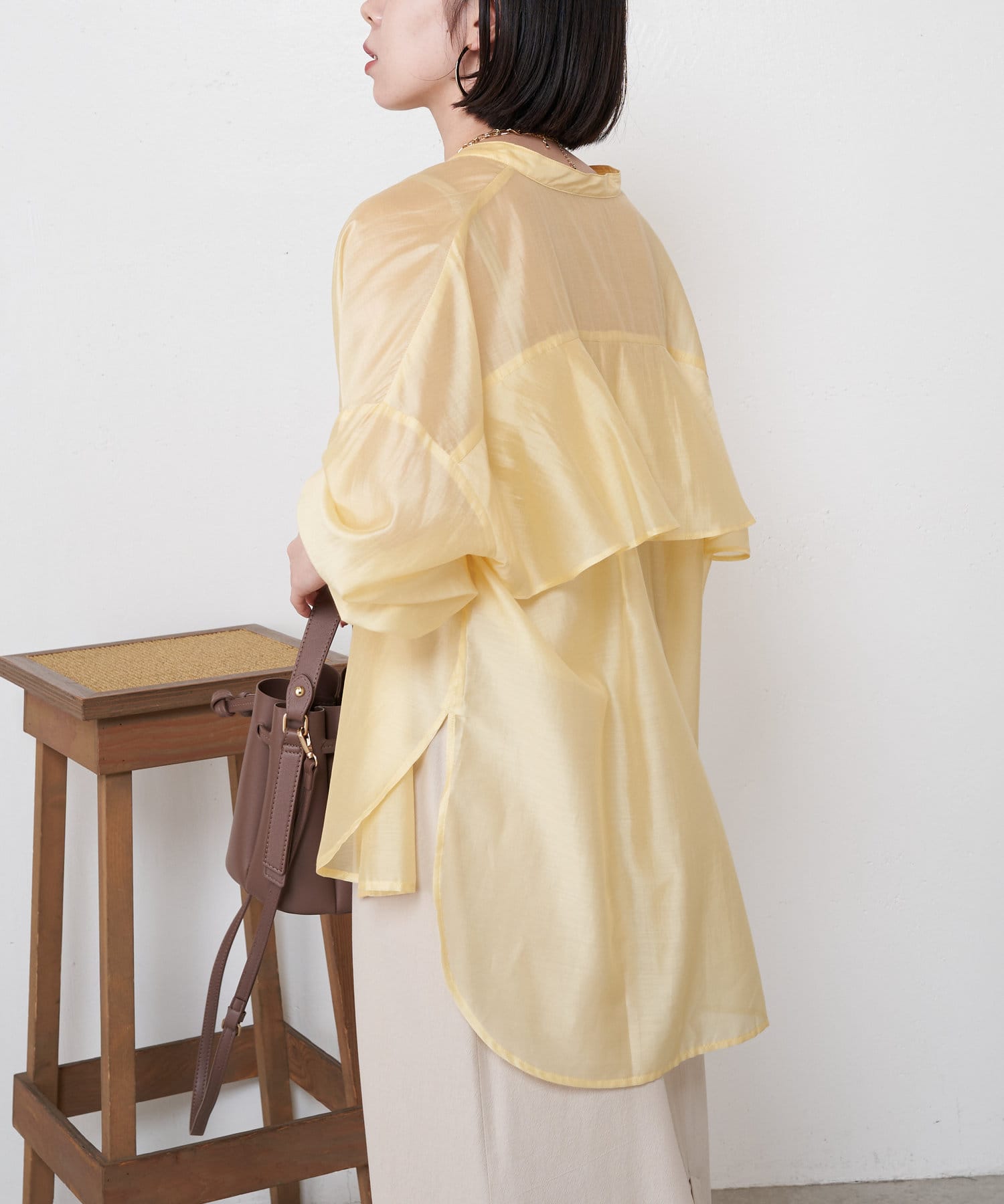 TOP > Jena espace merveilleux > レディース > トップス > シャツ/ブラウス(ボタン) > 【新色登場】【大人のデザインブラウス】後ろヨークラッフルシャツ