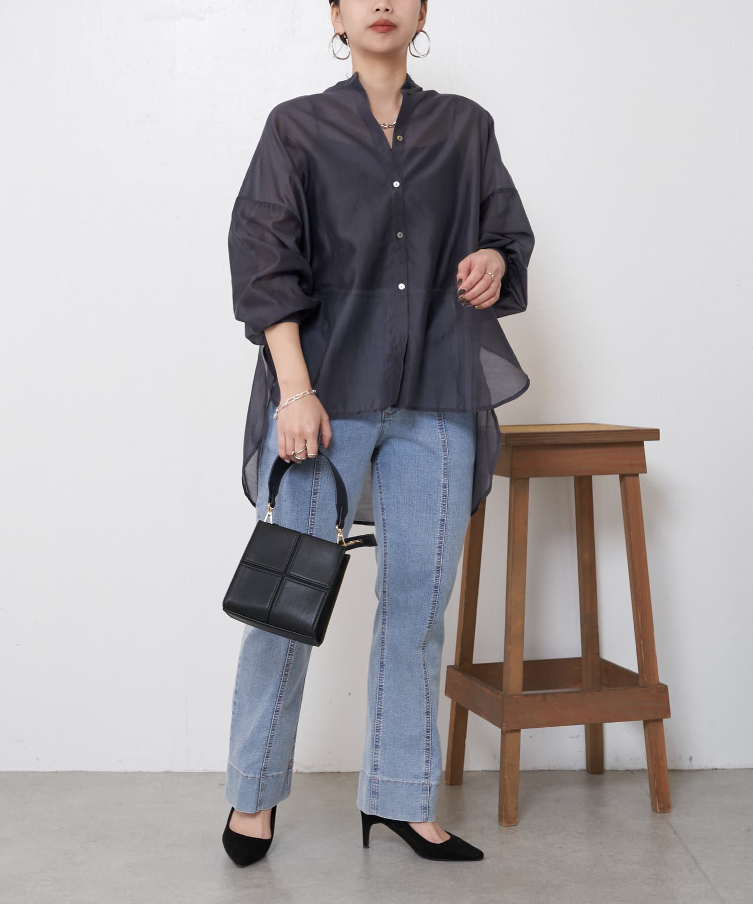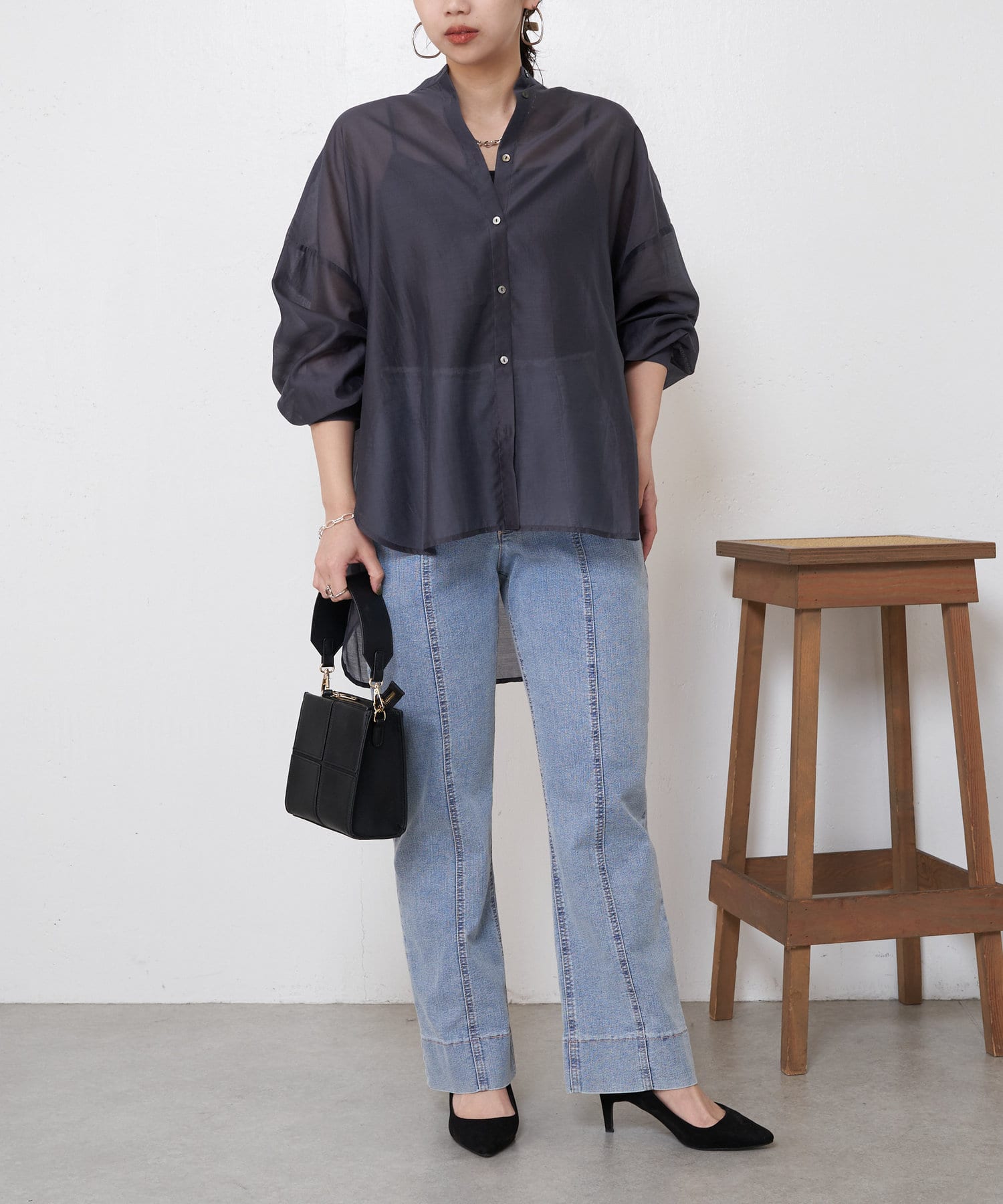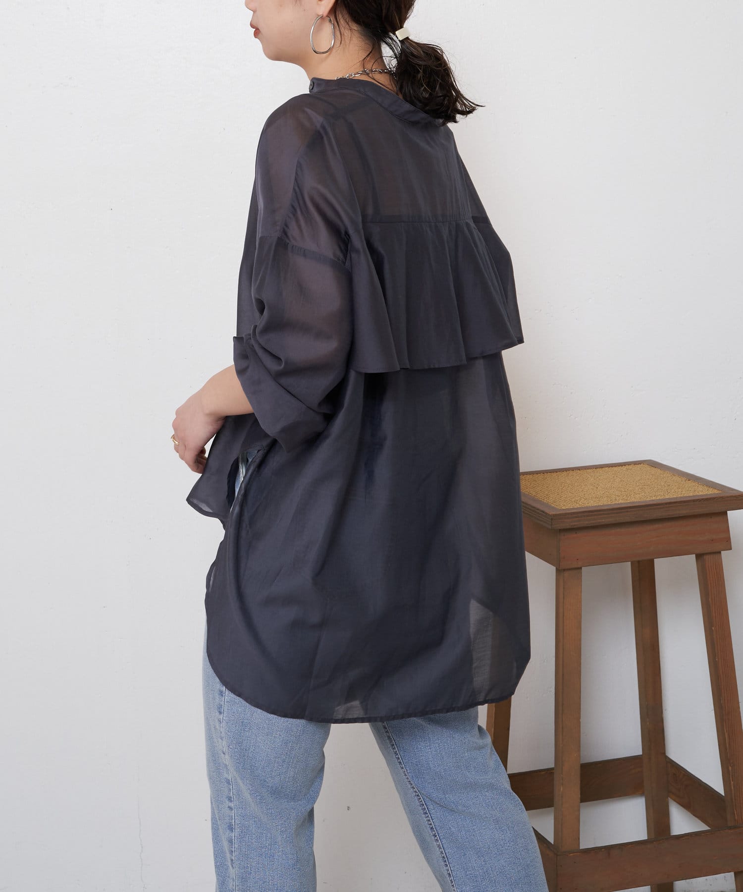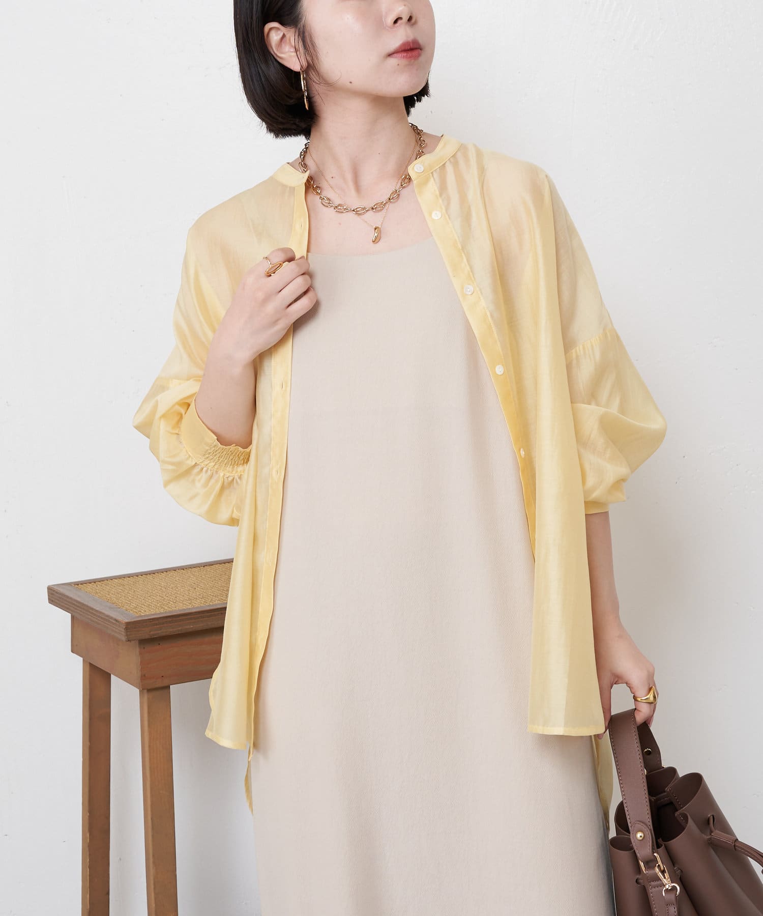 ブラウスとしてデニムに合わせたり、軽いアウターとしてワンピースに合わせたり。