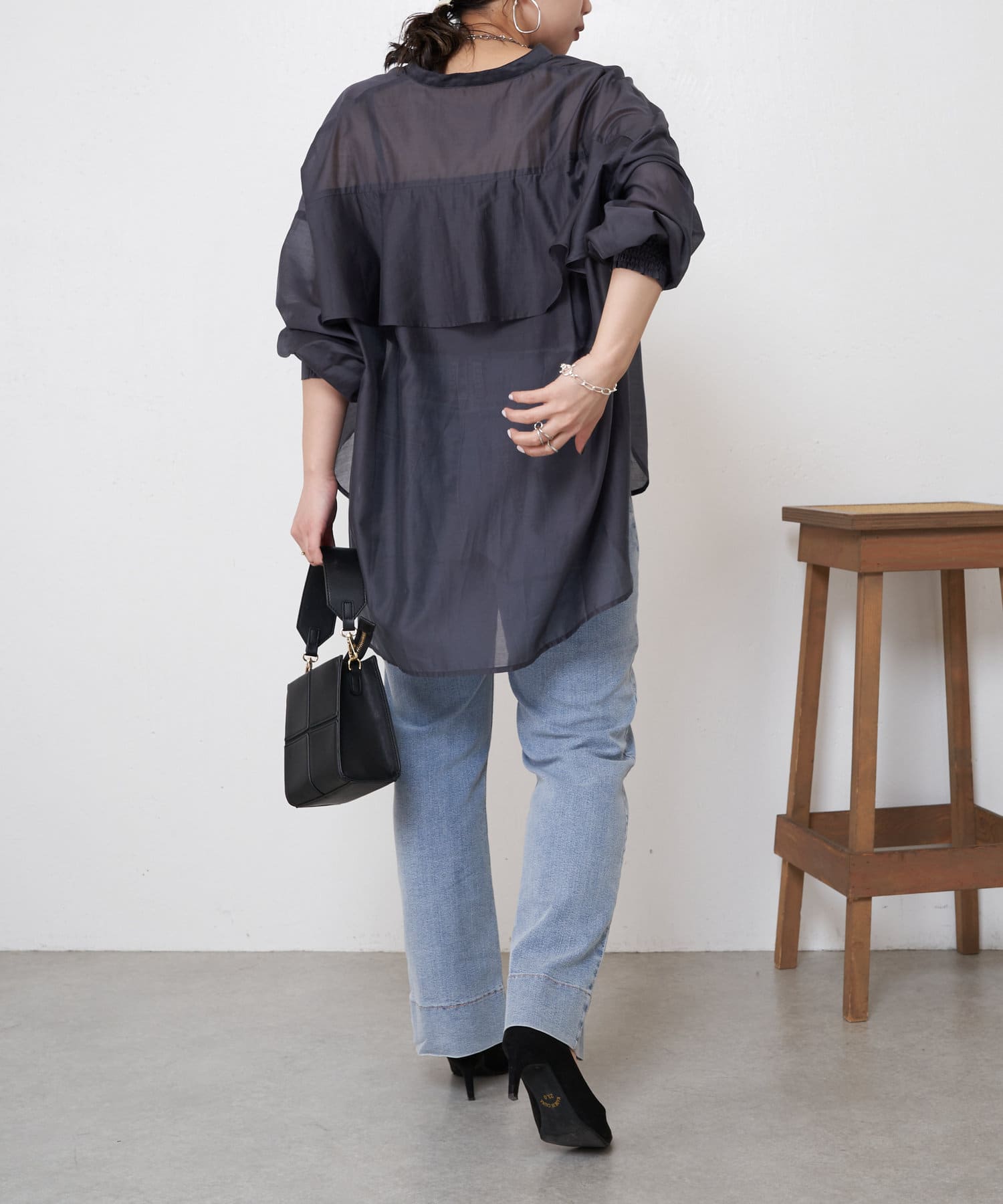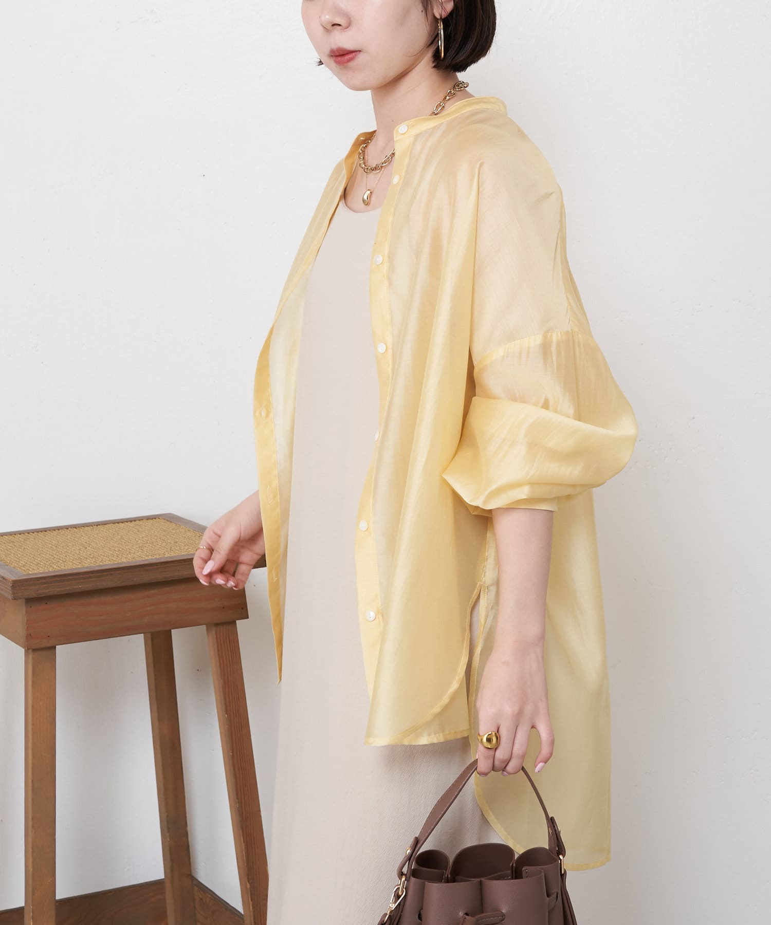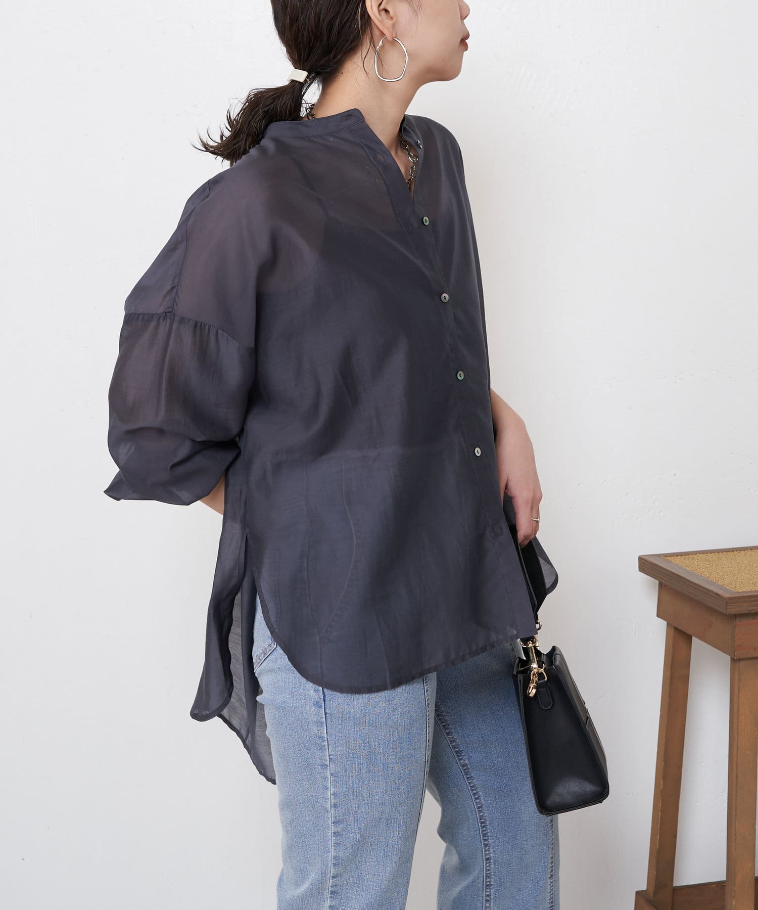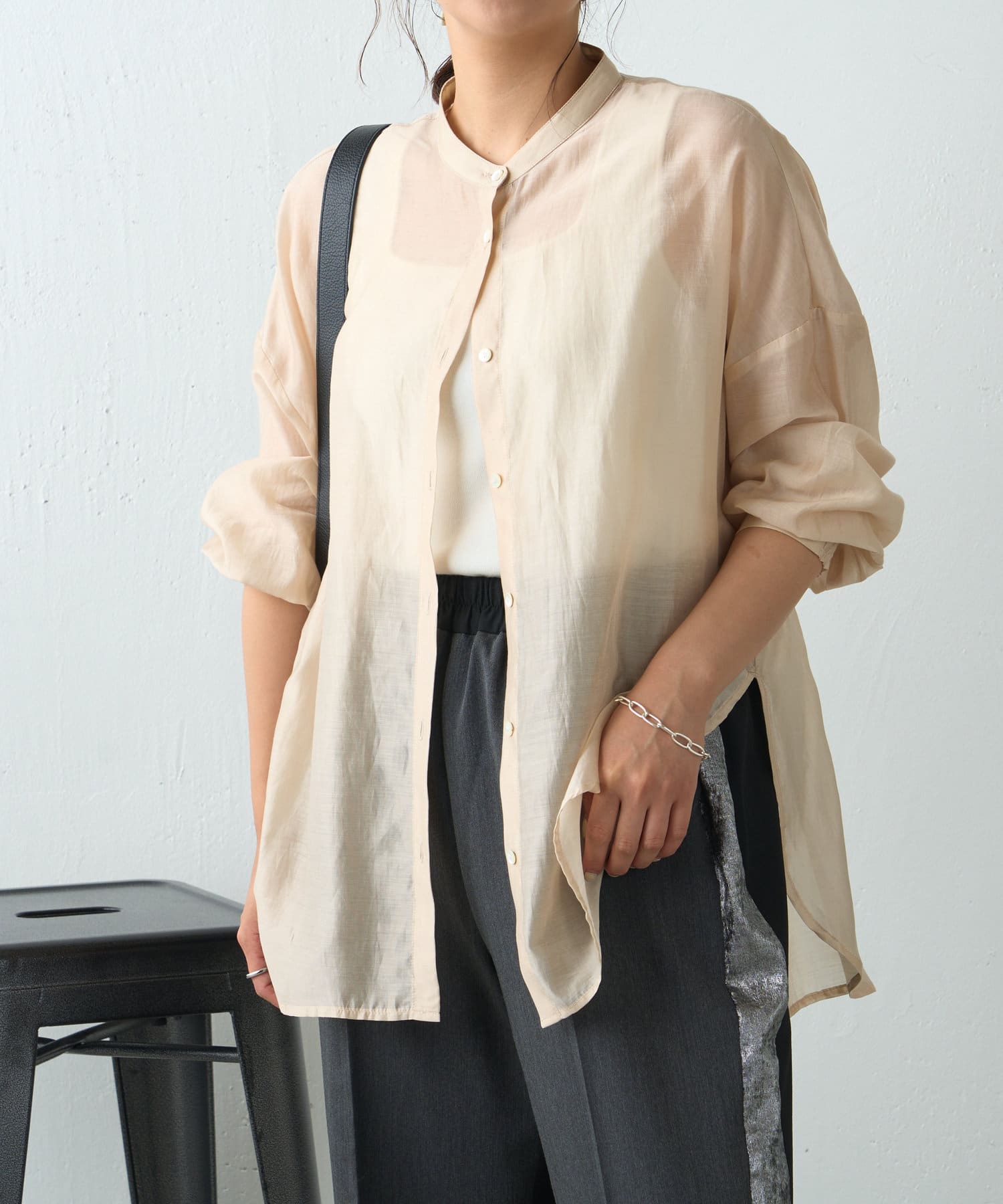 ブラウスとしてデニムに合わせたり、軽いアウターとしてワンピースに合わせたり。