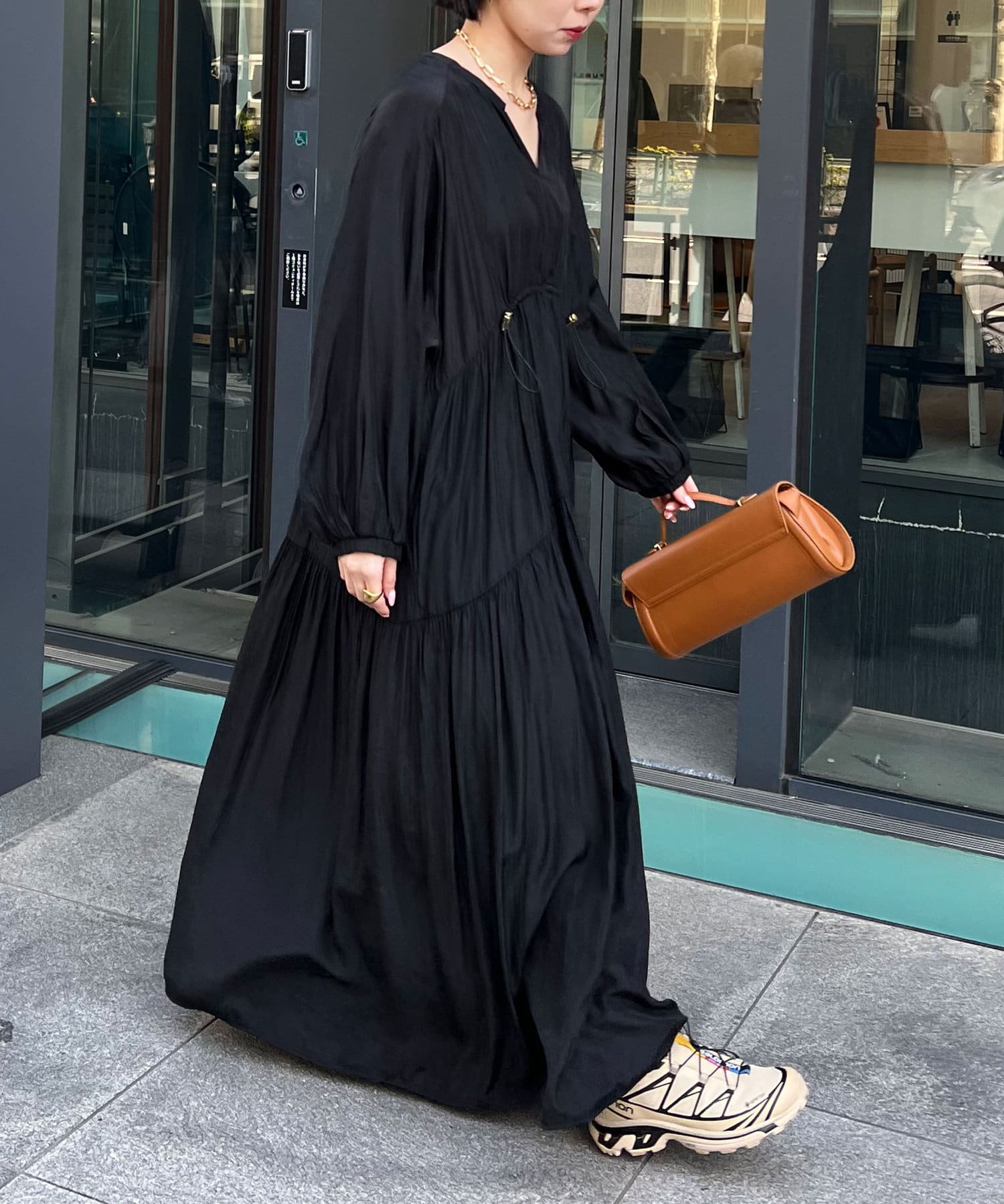 ・レイヤードしたようなデザインの一枚で着映えするオトナなワンピース。