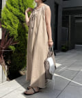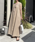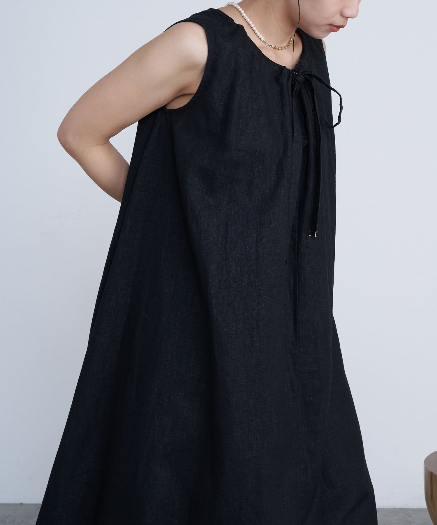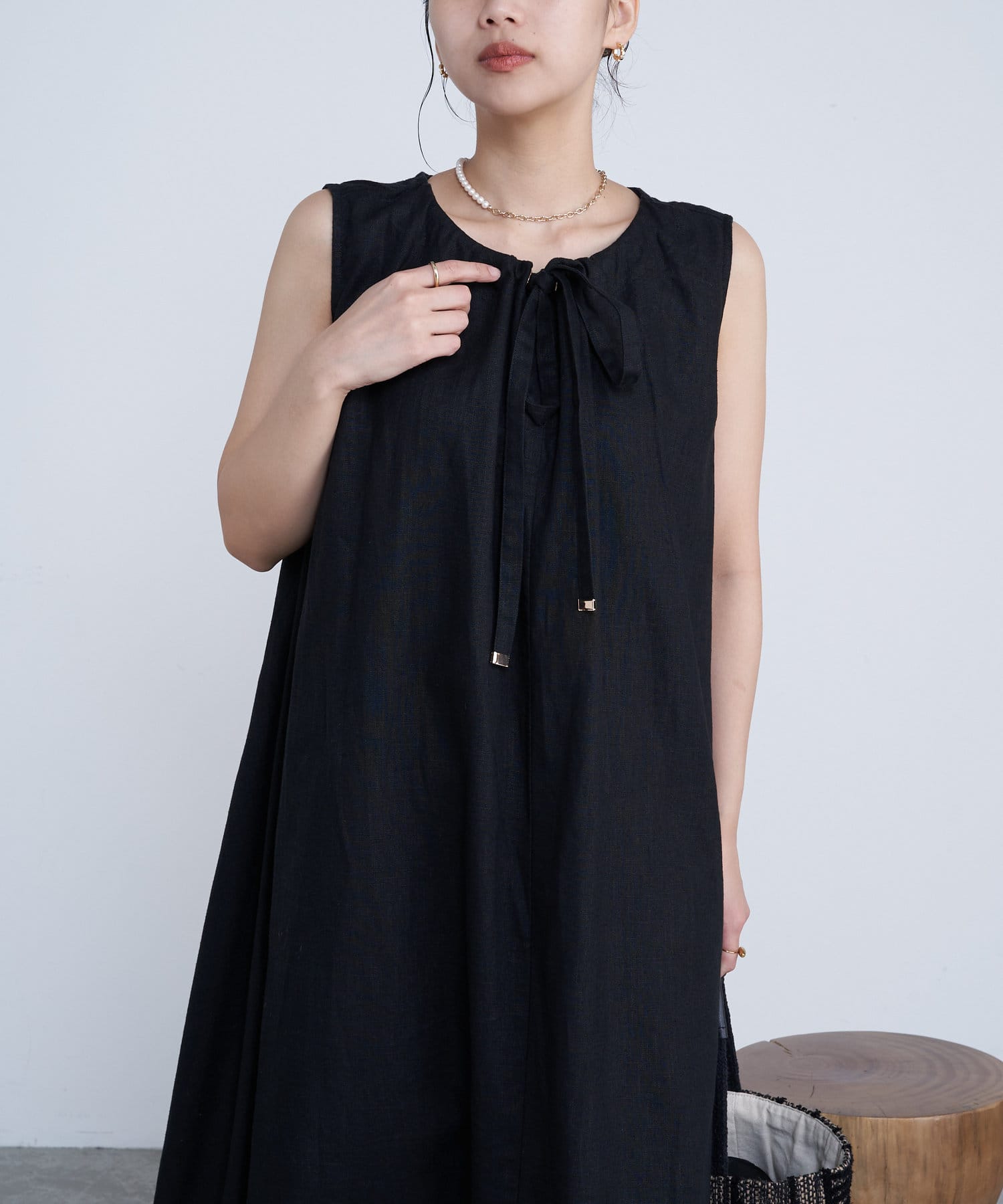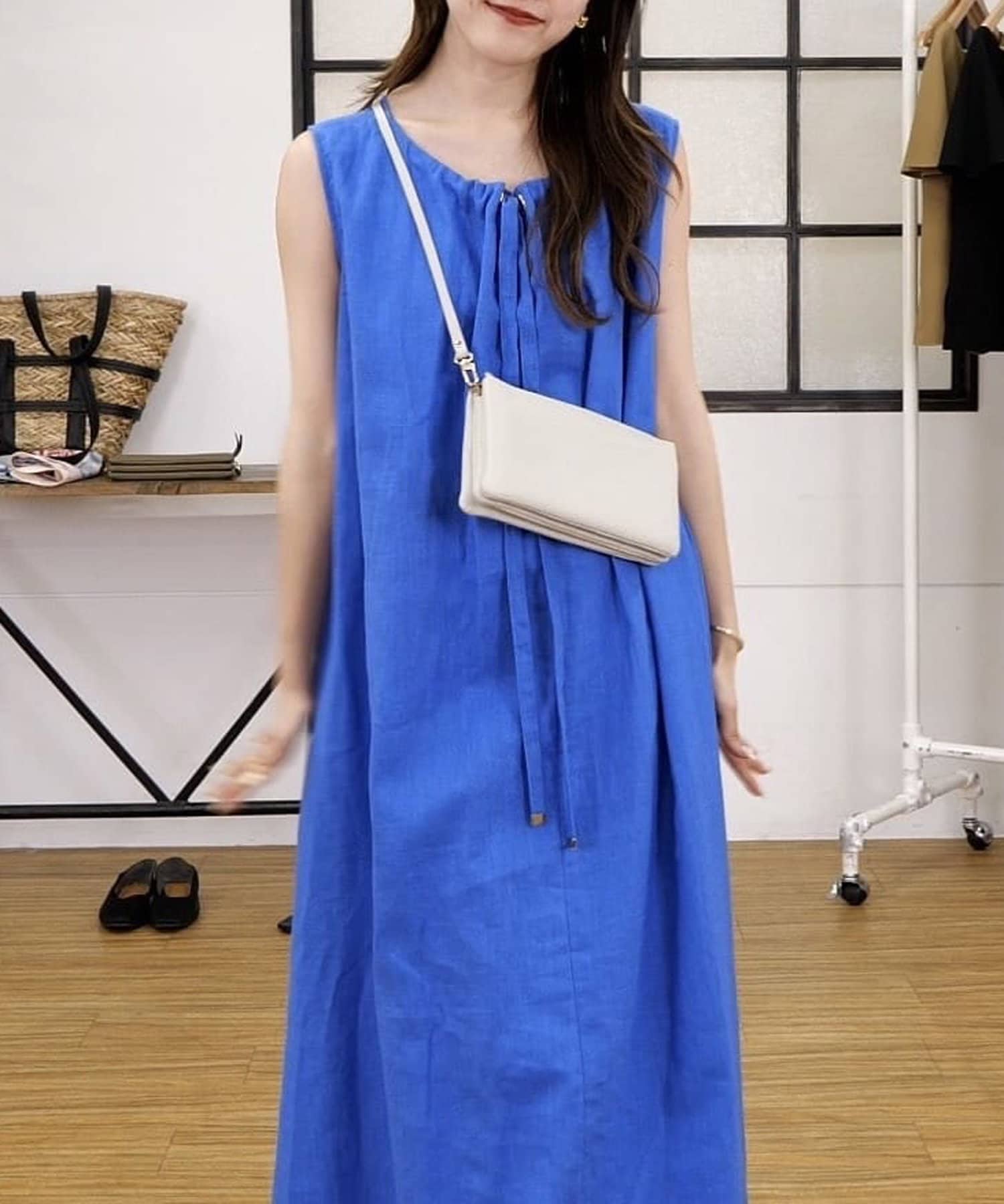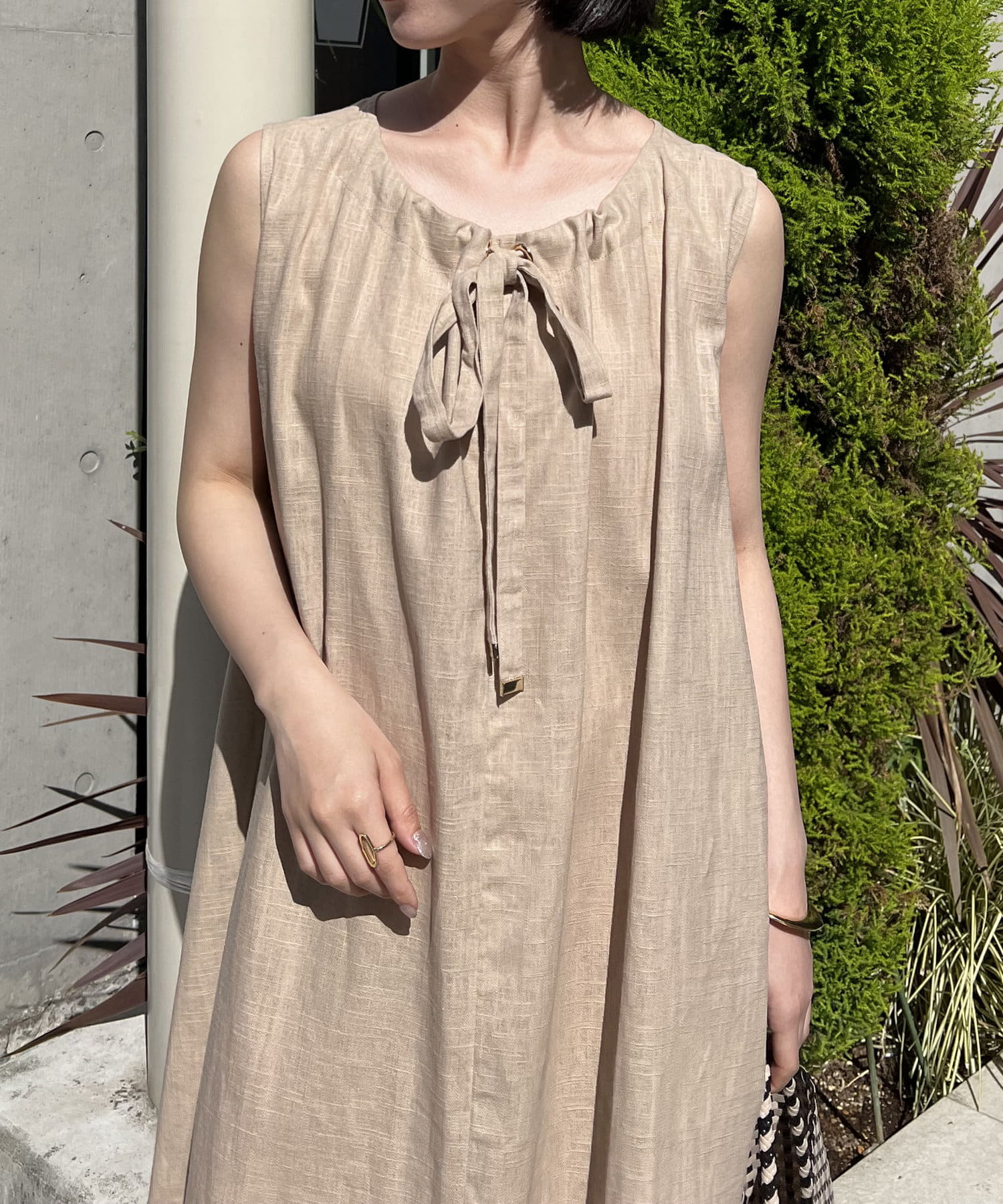・首元のギャザーも女性らしさを演出。リボンの締め具合で調節も可能です。