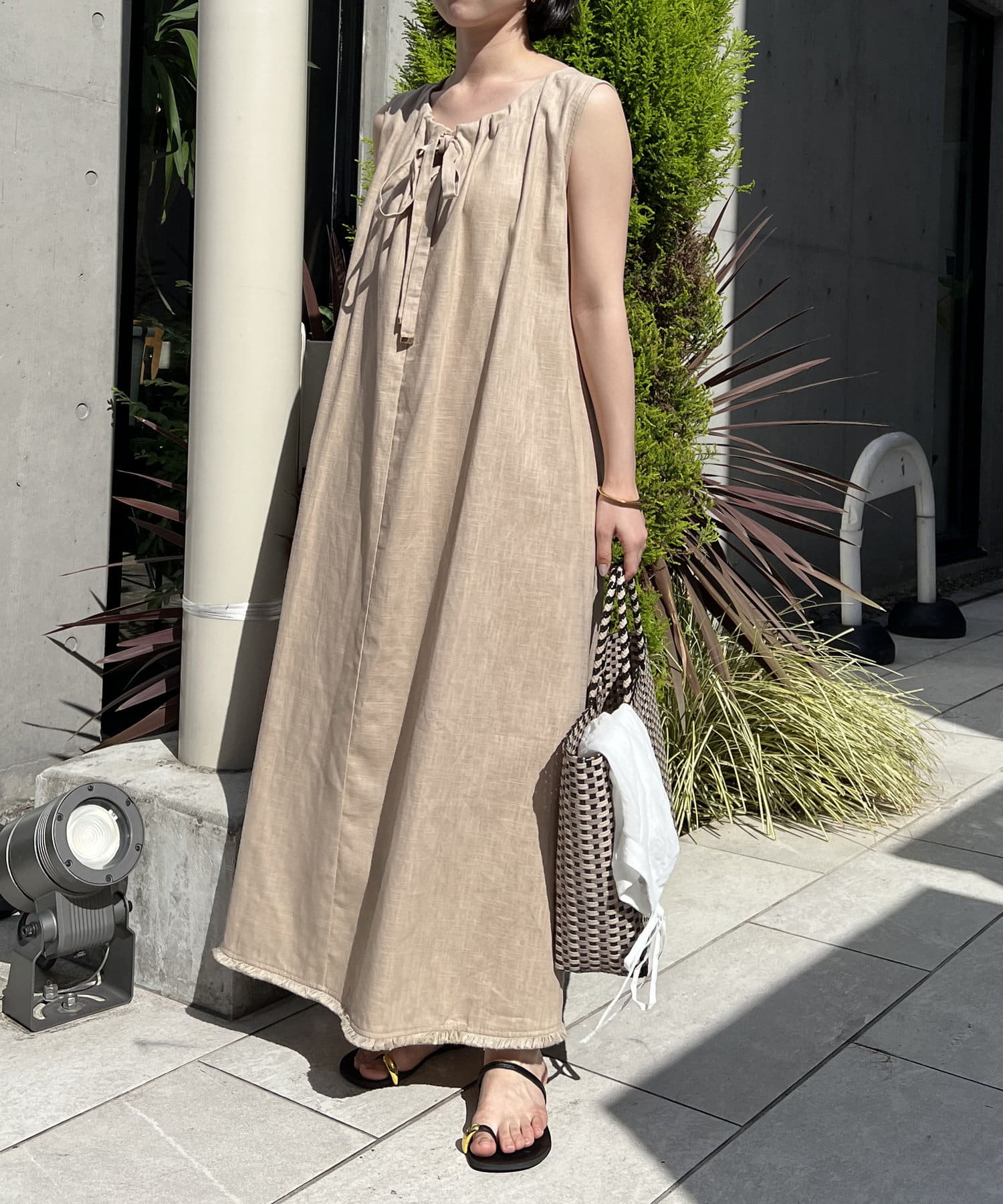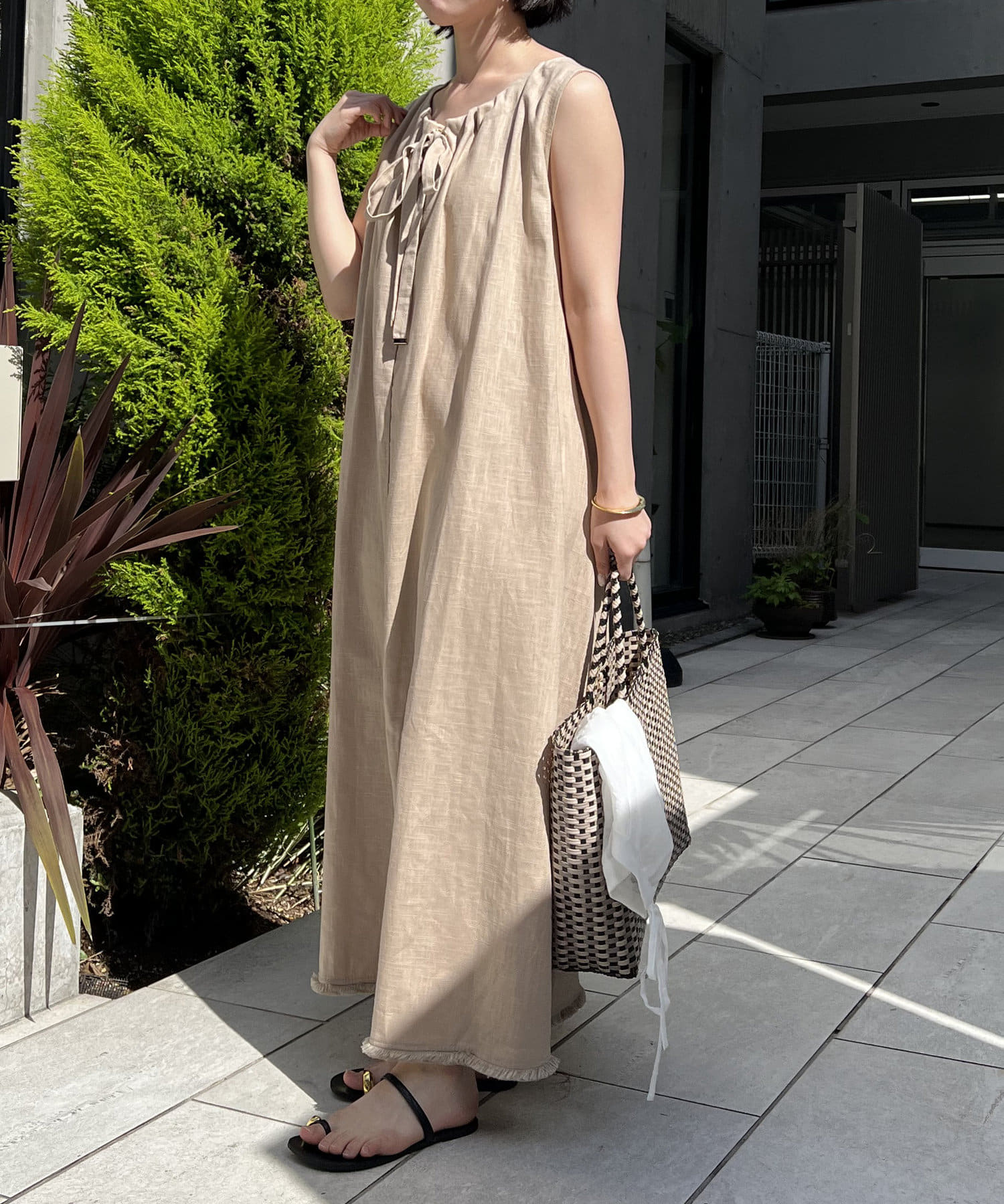 ・裾はフリンジデザインになっていて、甘すぎずカジュアルな雰囲気も楽しめます。