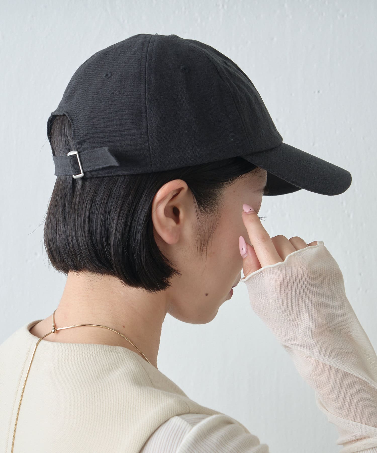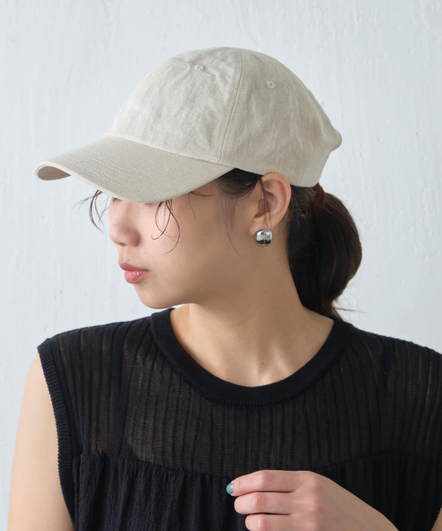 ・サラッとした綿麻素材のキャップ。