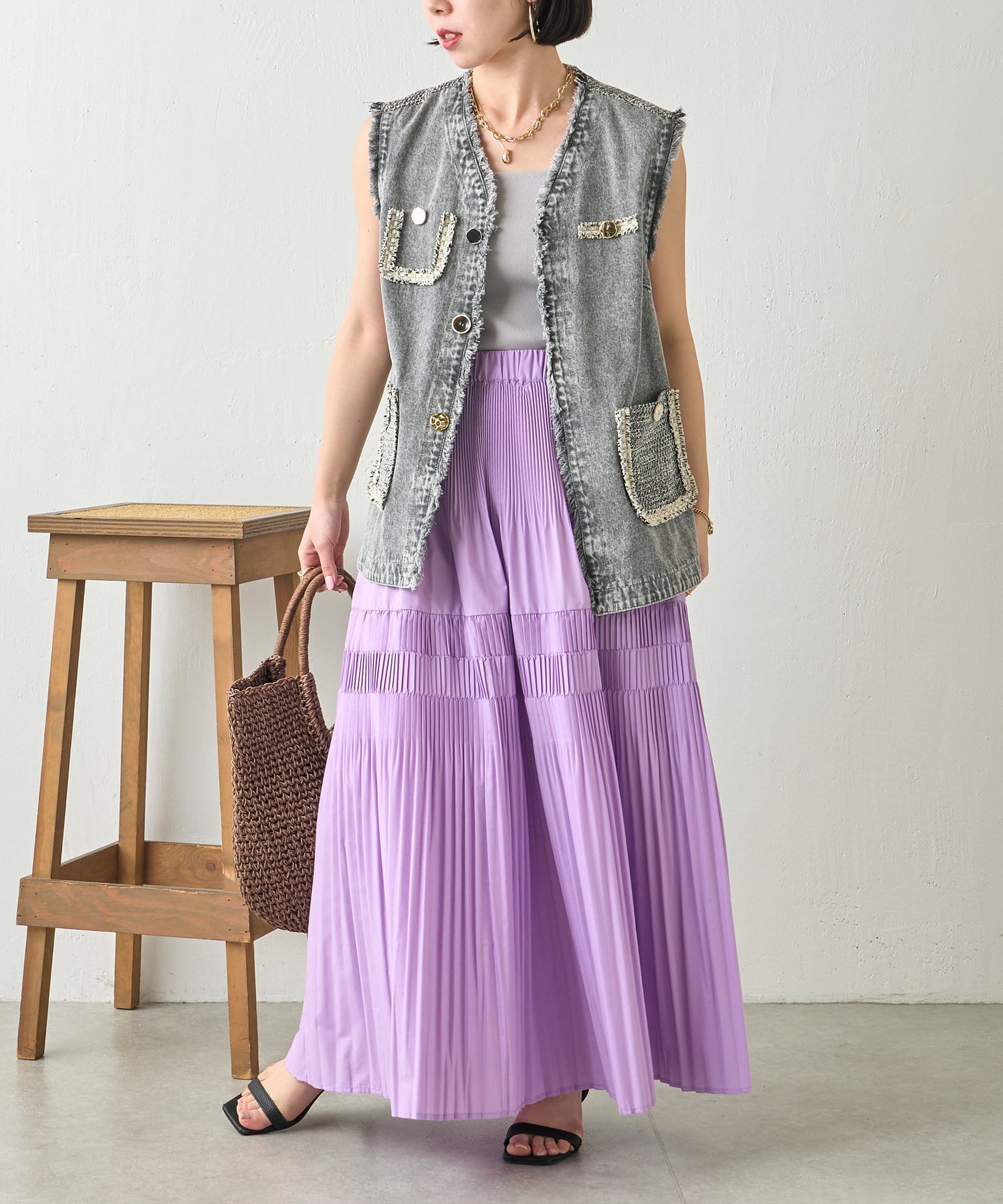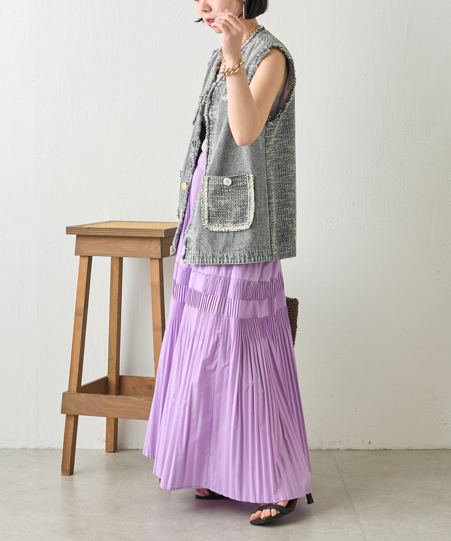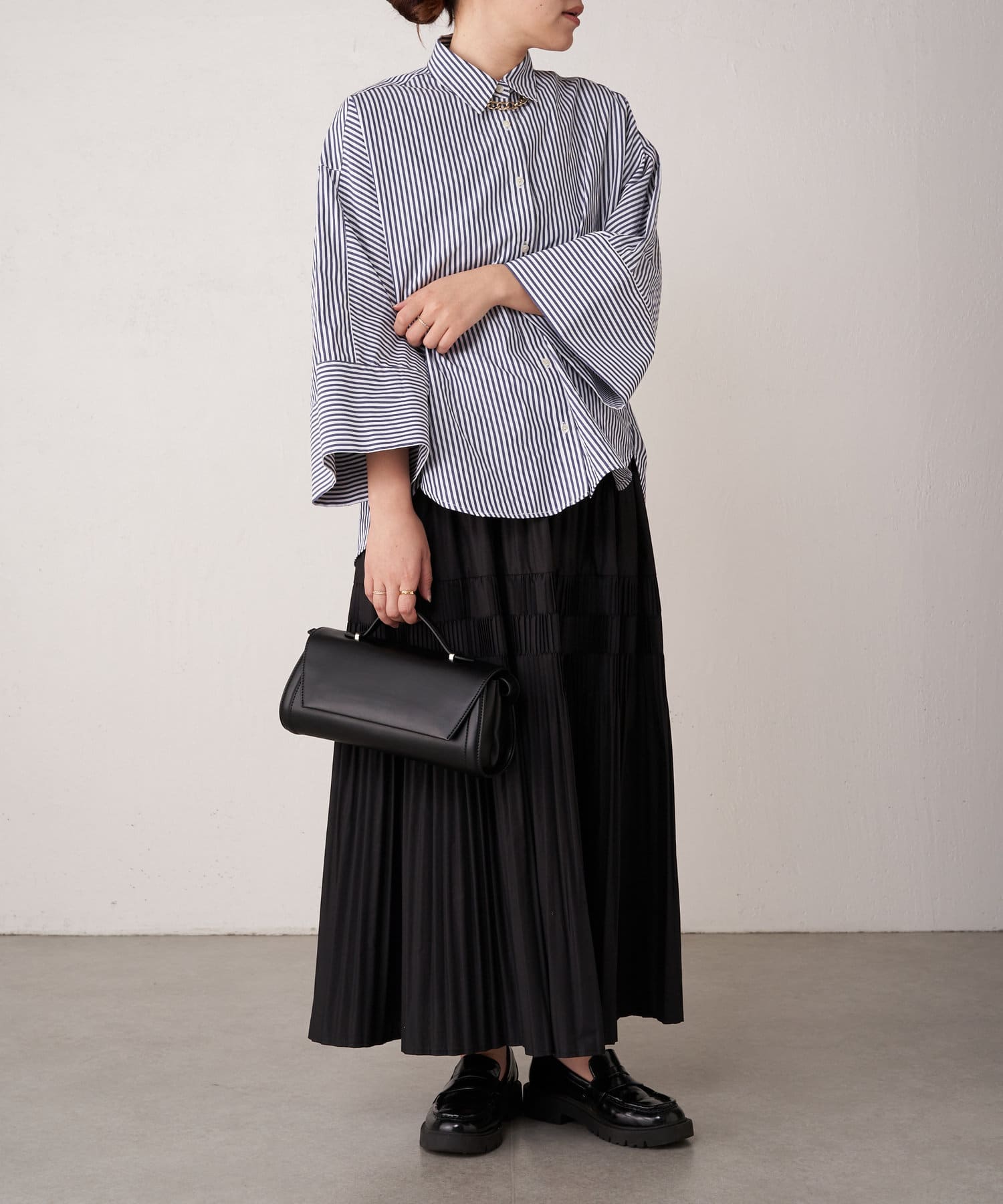 ・前回大人気だった、ランダムプリーツが目を惹く一枚で着映えするスカート。