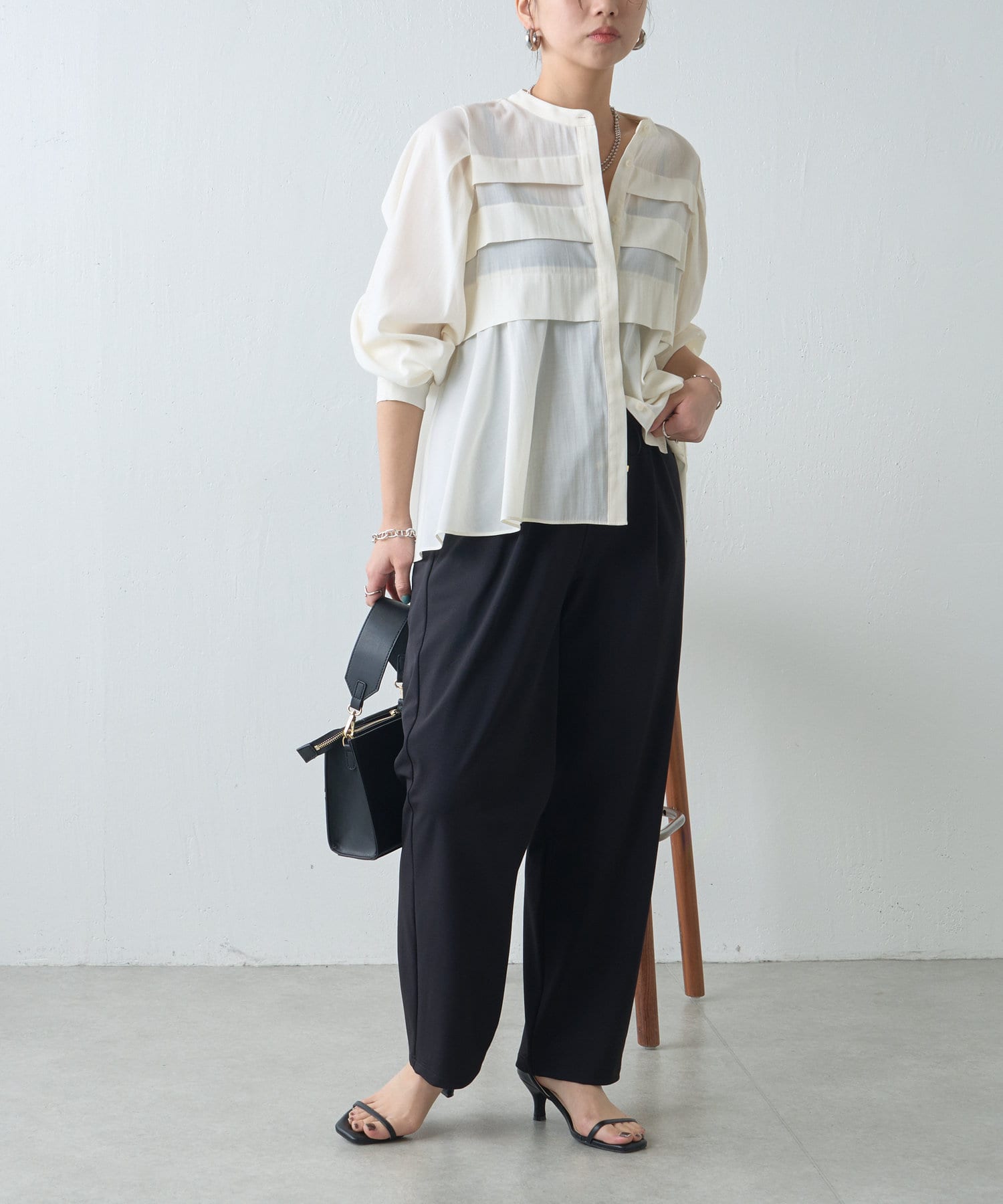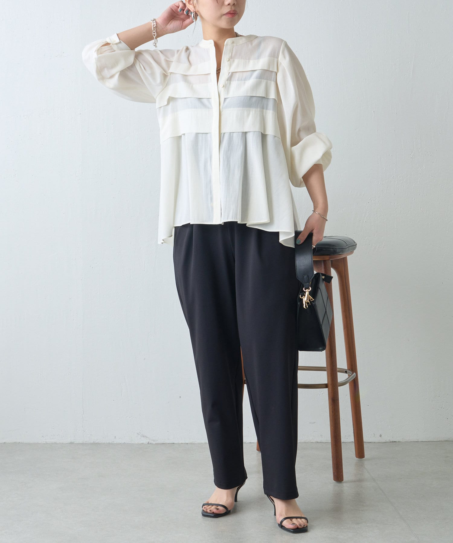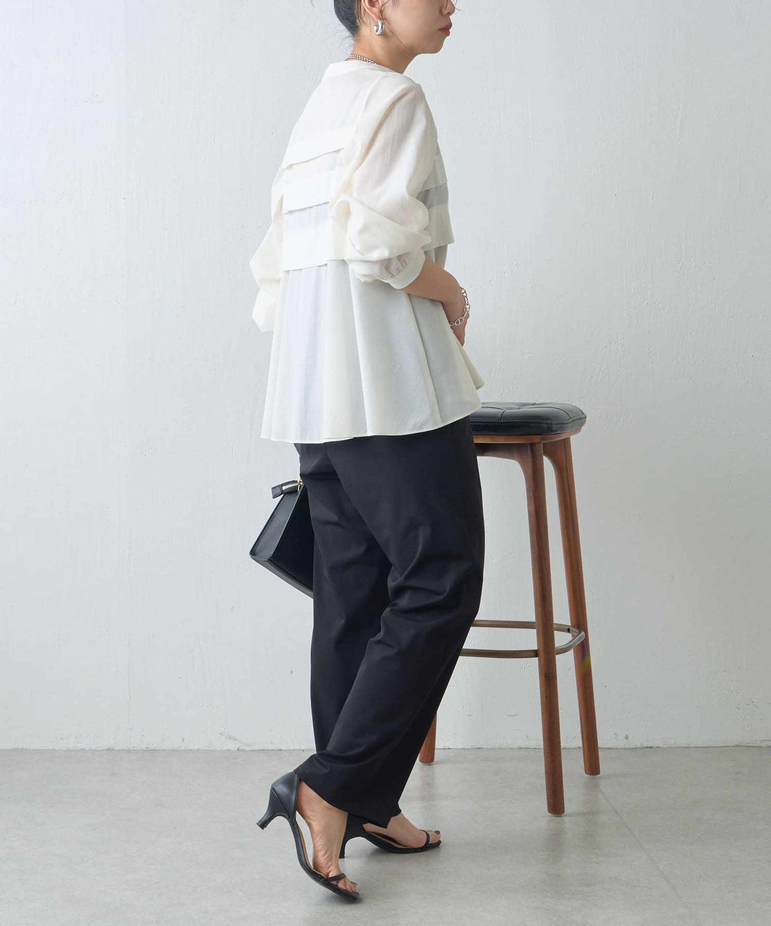 ・ストレッチ性の高い、スッキリとしたシンプルなテーパードパンツ。