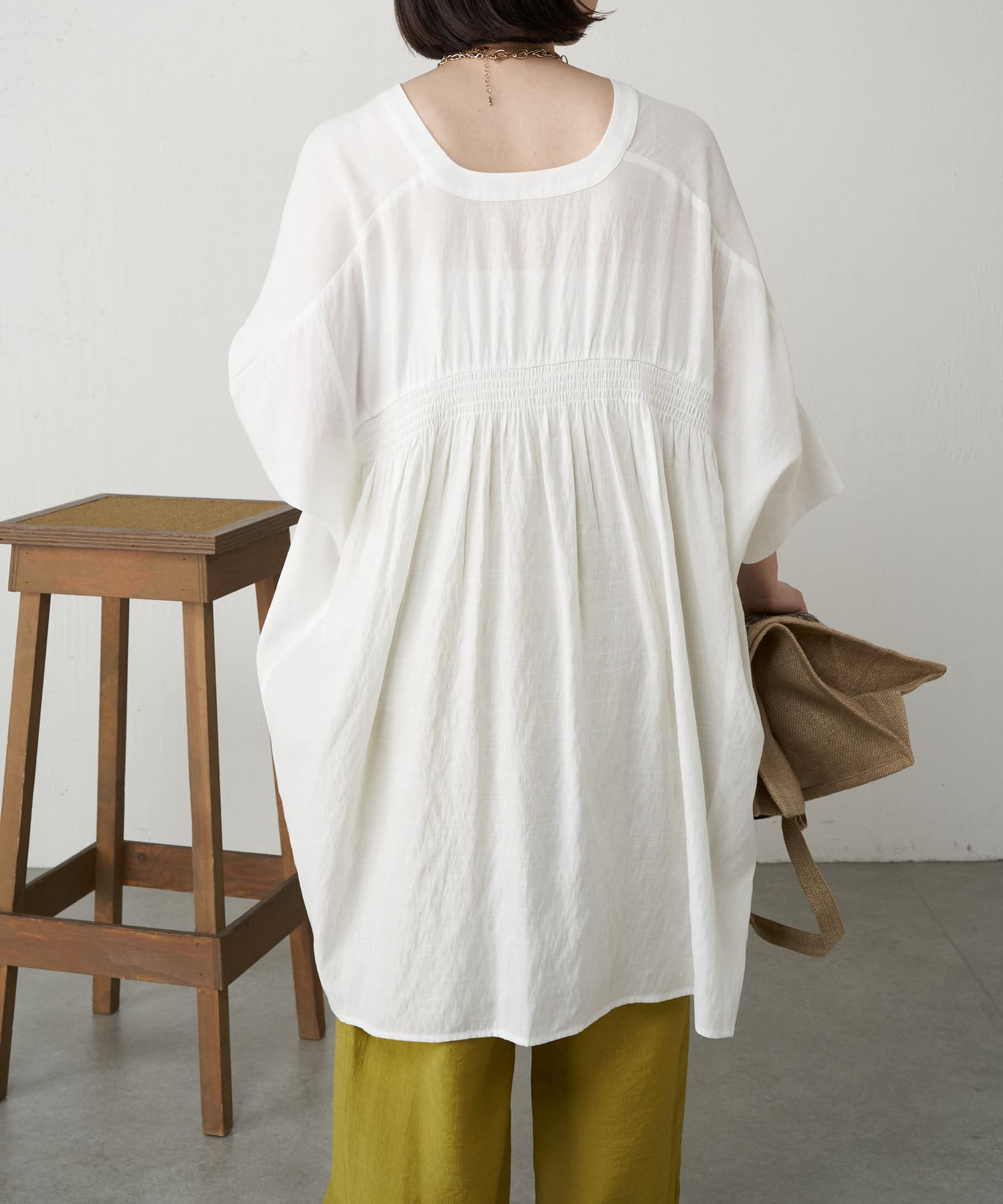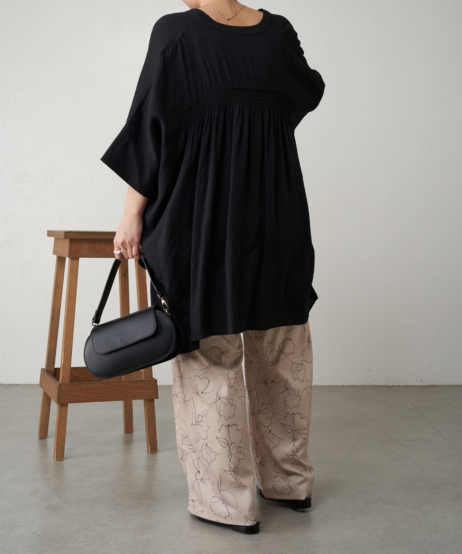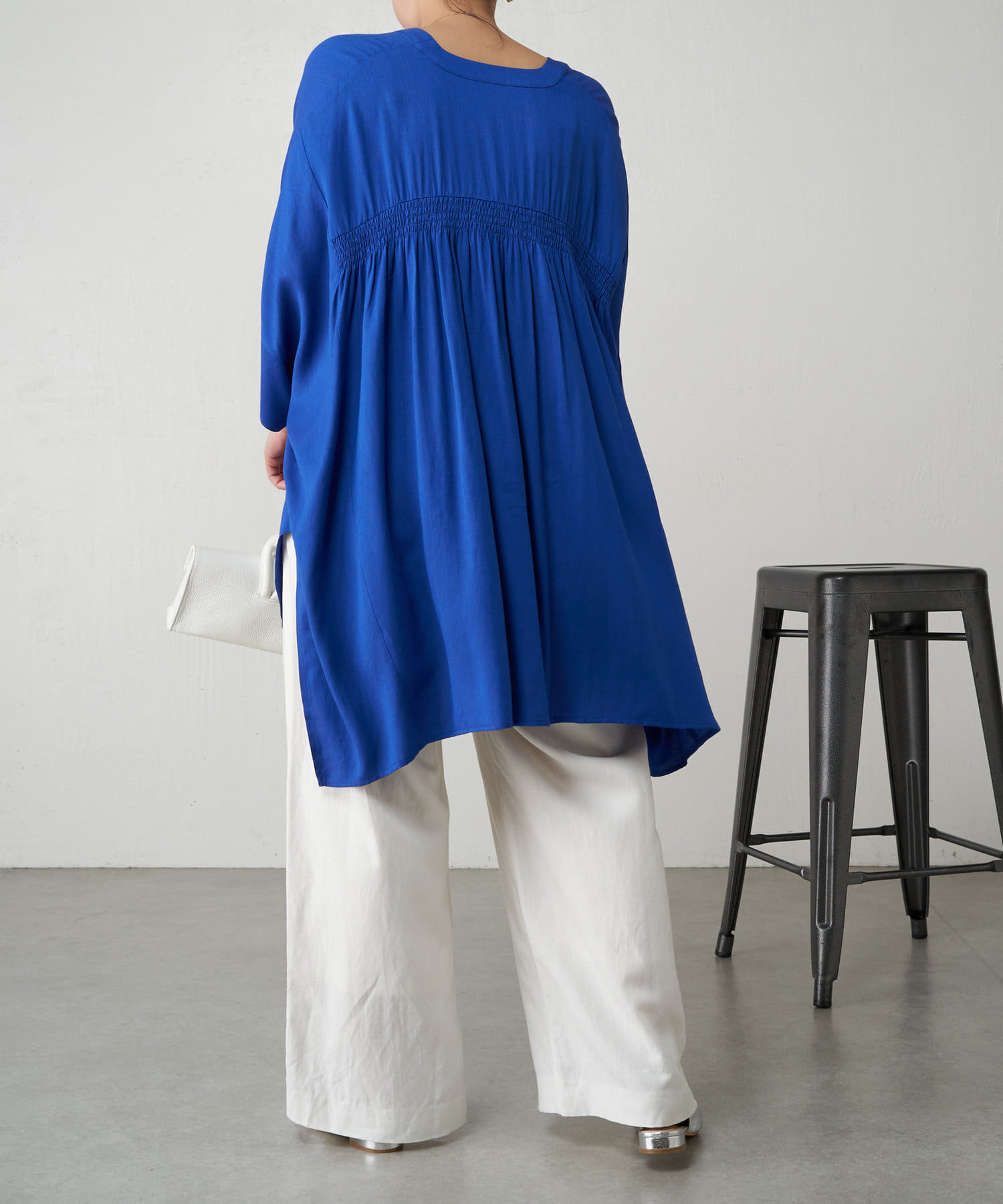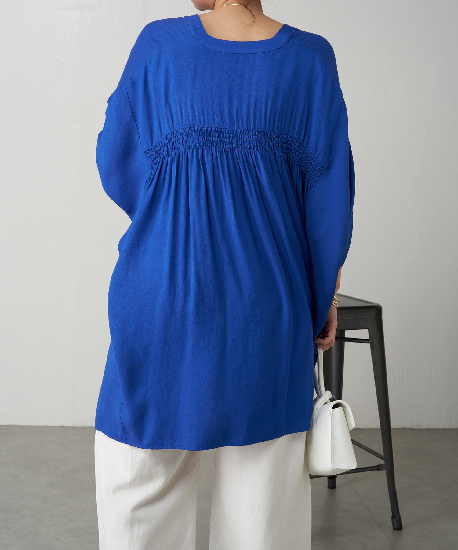 ・シンプルながらもシャーリングデザインがポイントに女性らしい印象でお召いただけます。
