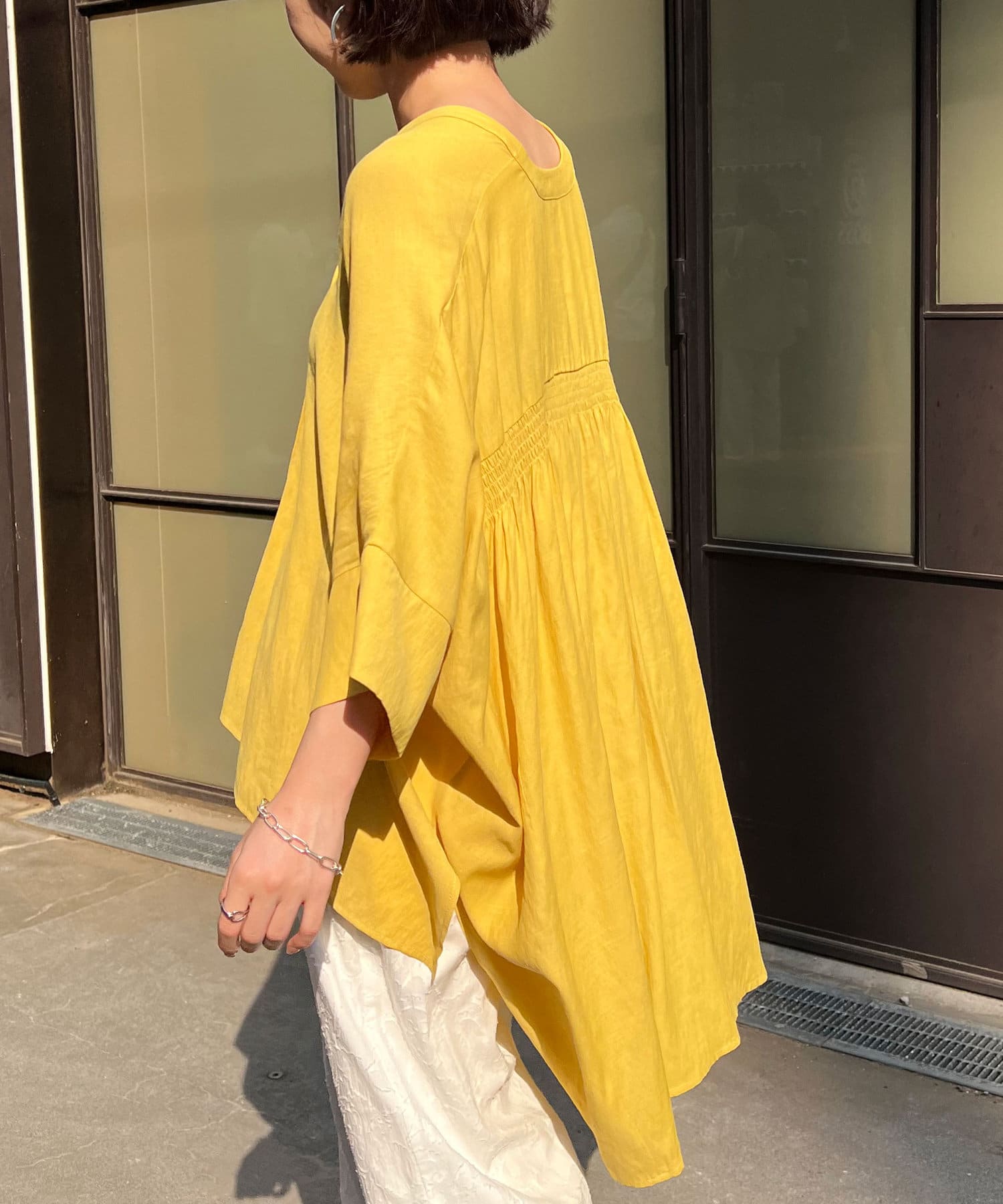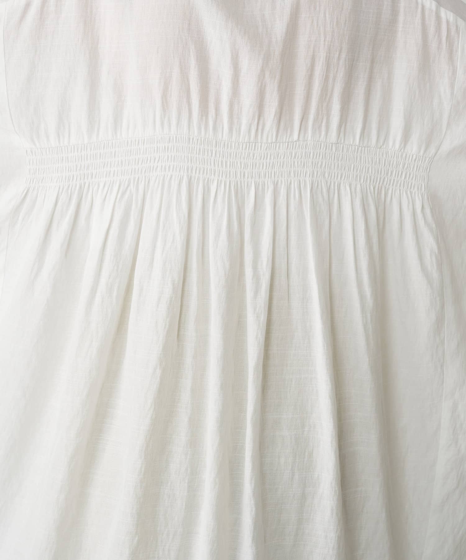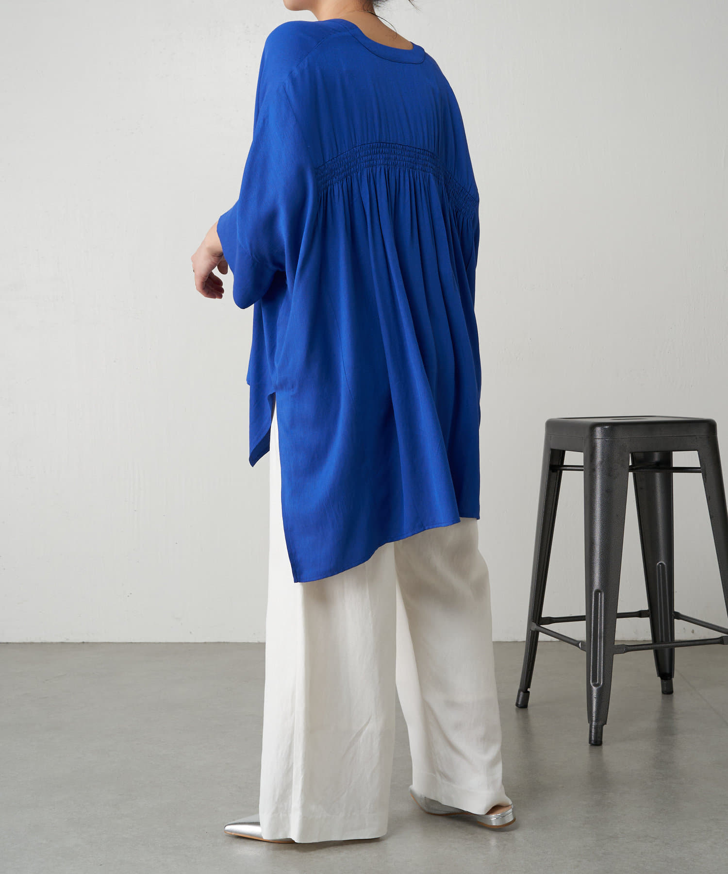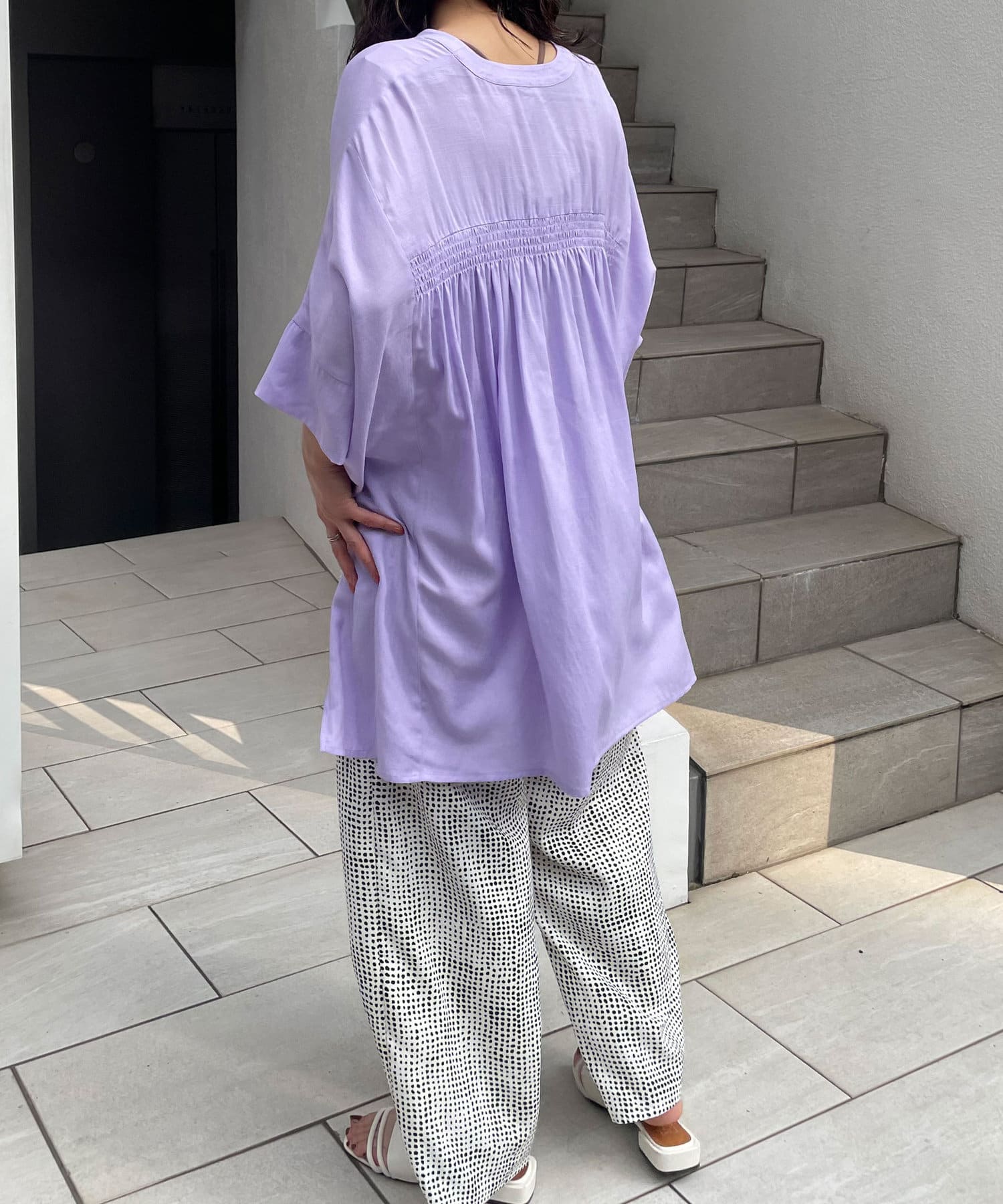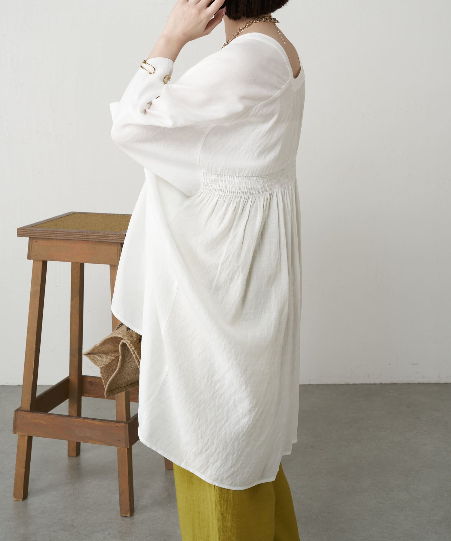 ・シンプルながらもシャーリングデザインがポイントに女性らしい印象でお召いただけます。