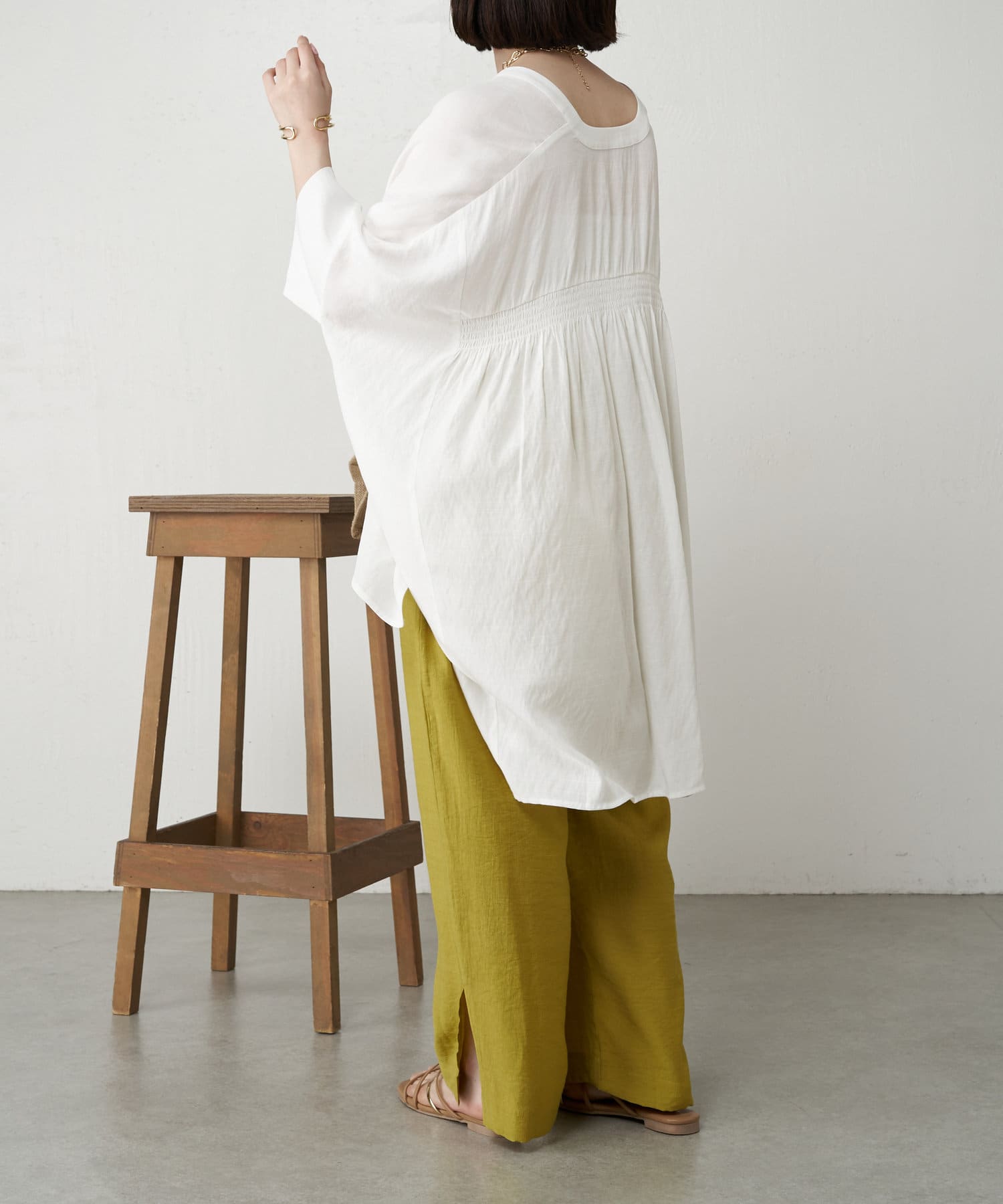 ・落ち感のある素材感で女性らしいシルエットでお召いただけます。