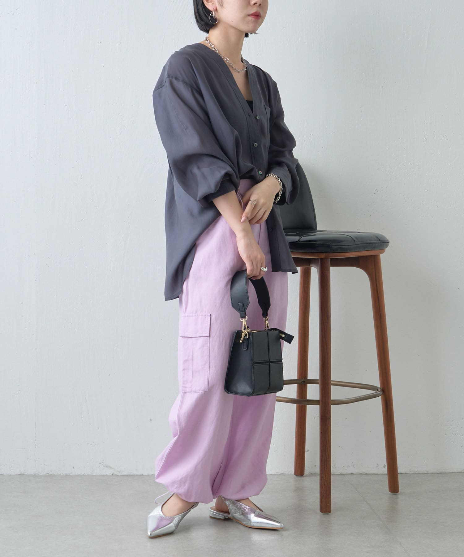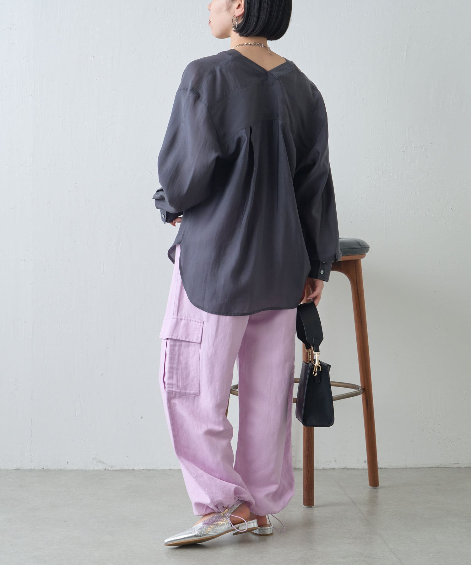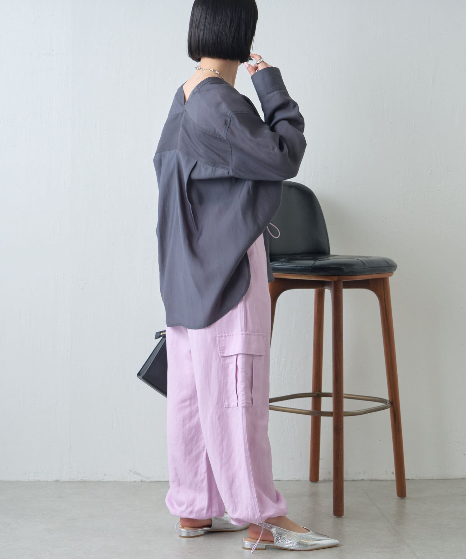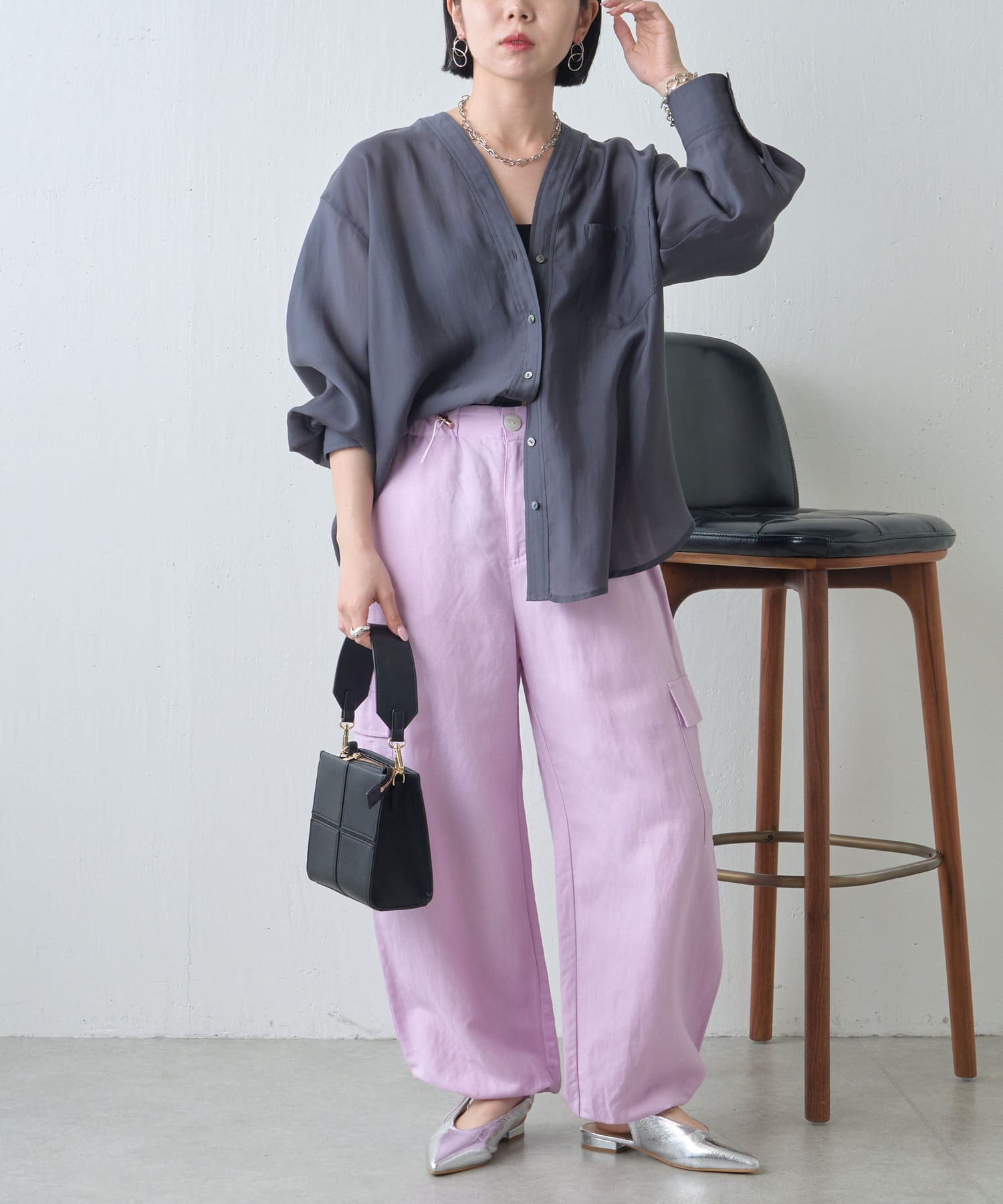 ・ルーズ感のあるシルエットで動きやすく、ハリ感のある肌触りが上品さも演出してくれます。