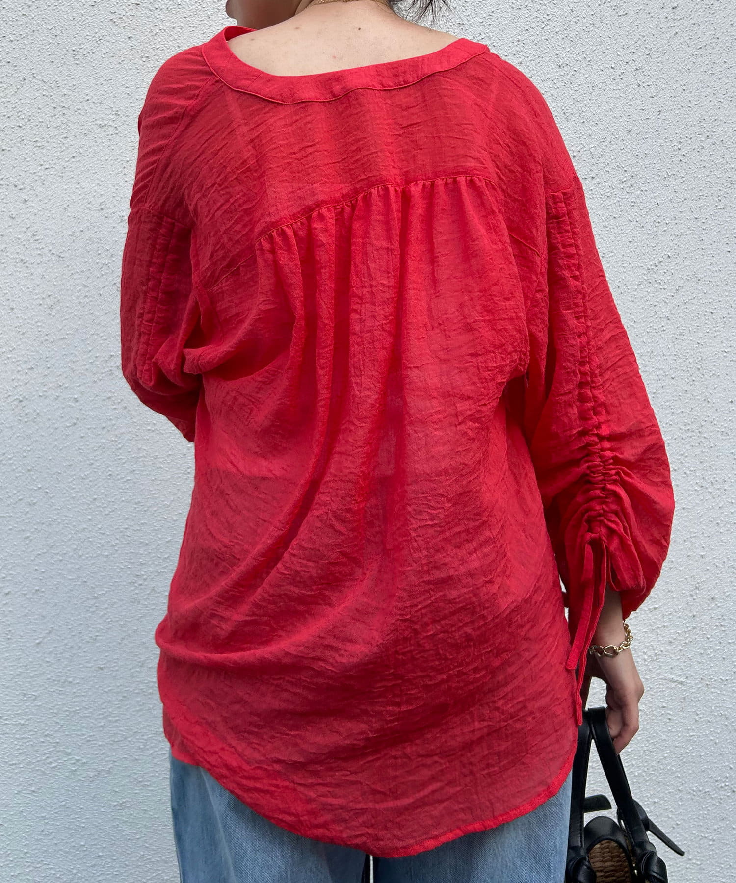 透け感あって袖のシャーリングもとっても気に入りました。絞り方によって長さも調整したりして来てます。
