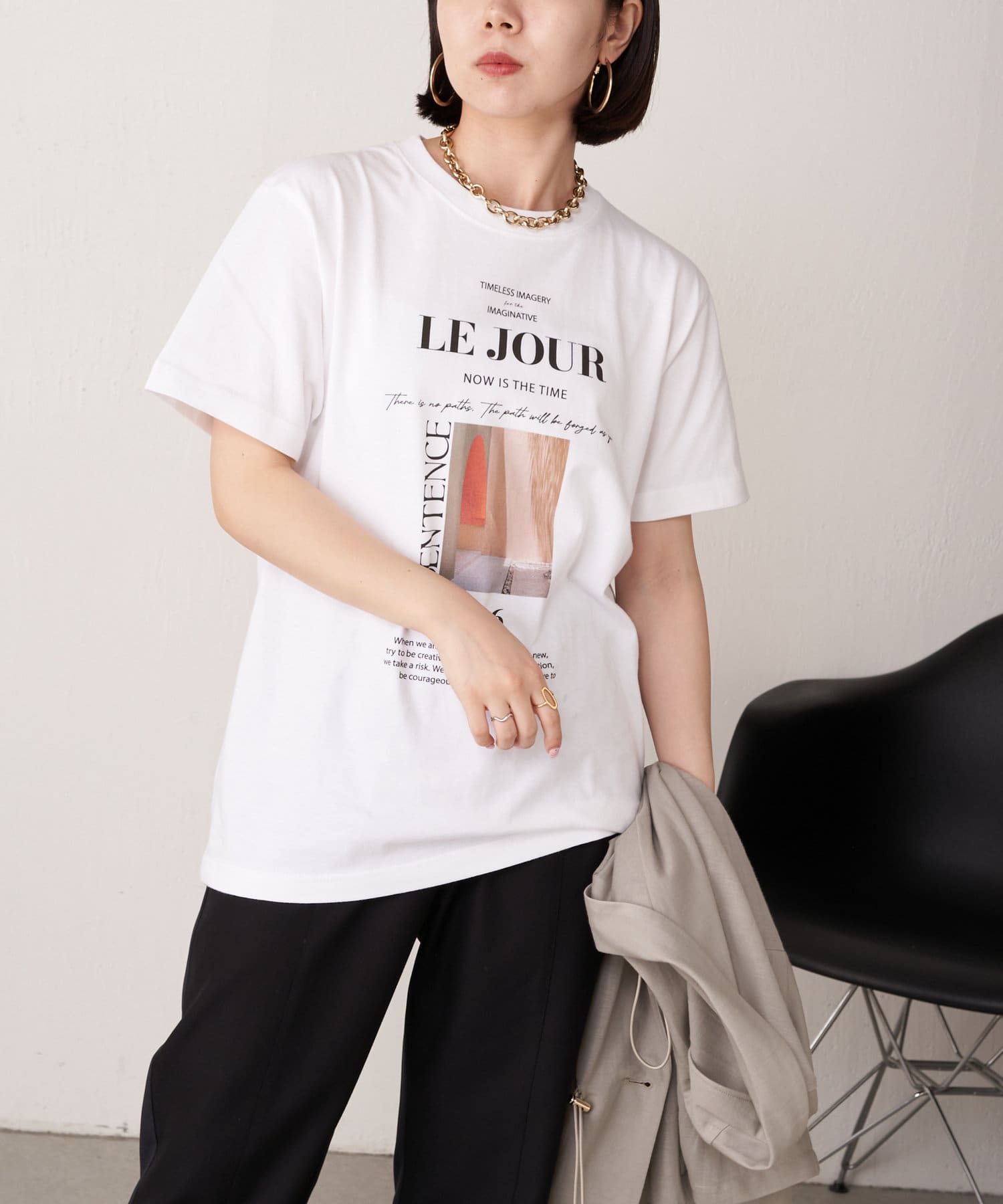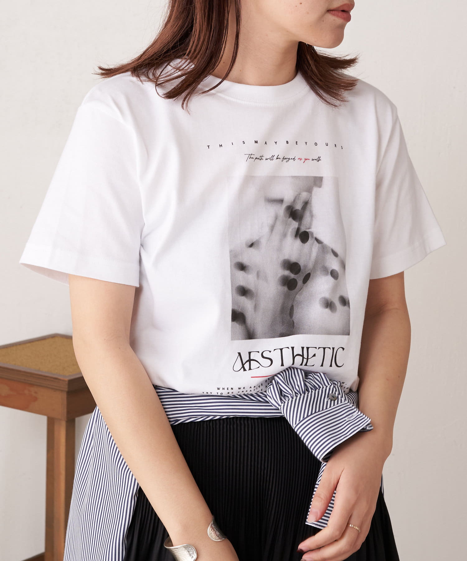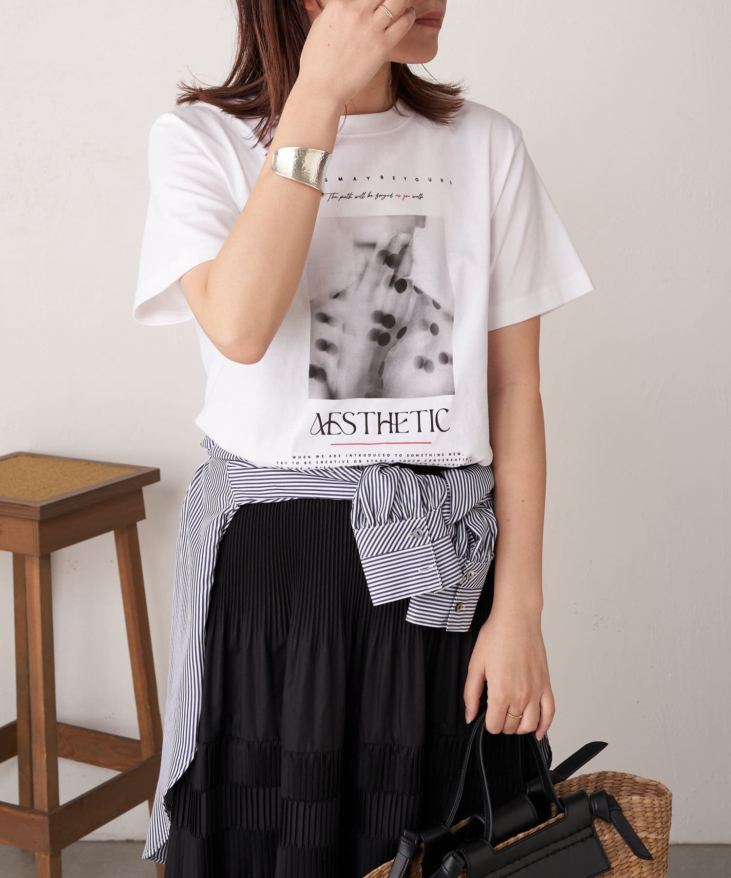・モノクロのフォトプリントがモード感が溢れる一枚です。